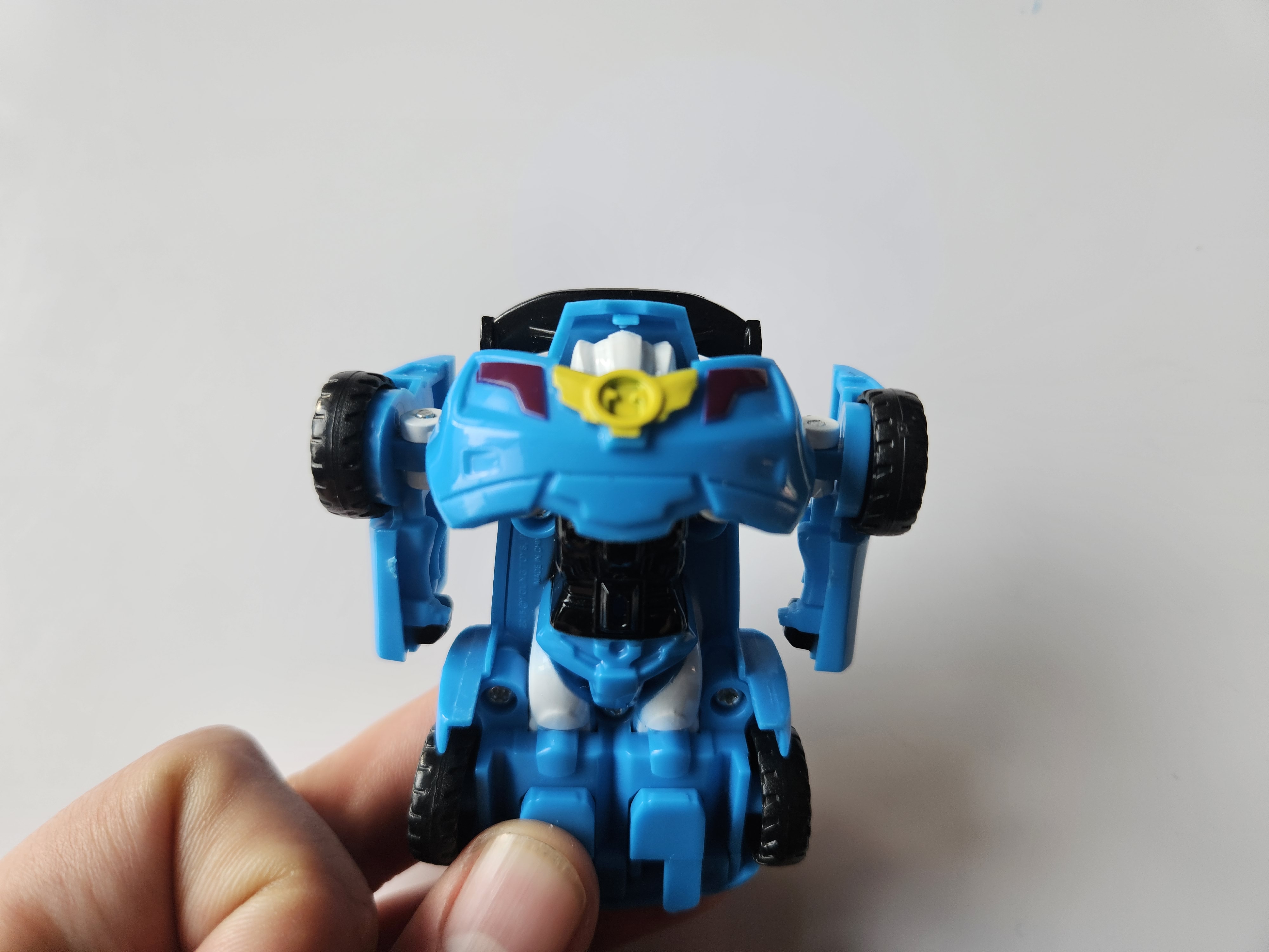 ▼자동차 보닛을 내려주면 조그마한 얼굴이 나오면서 상체는 변신 완료!
