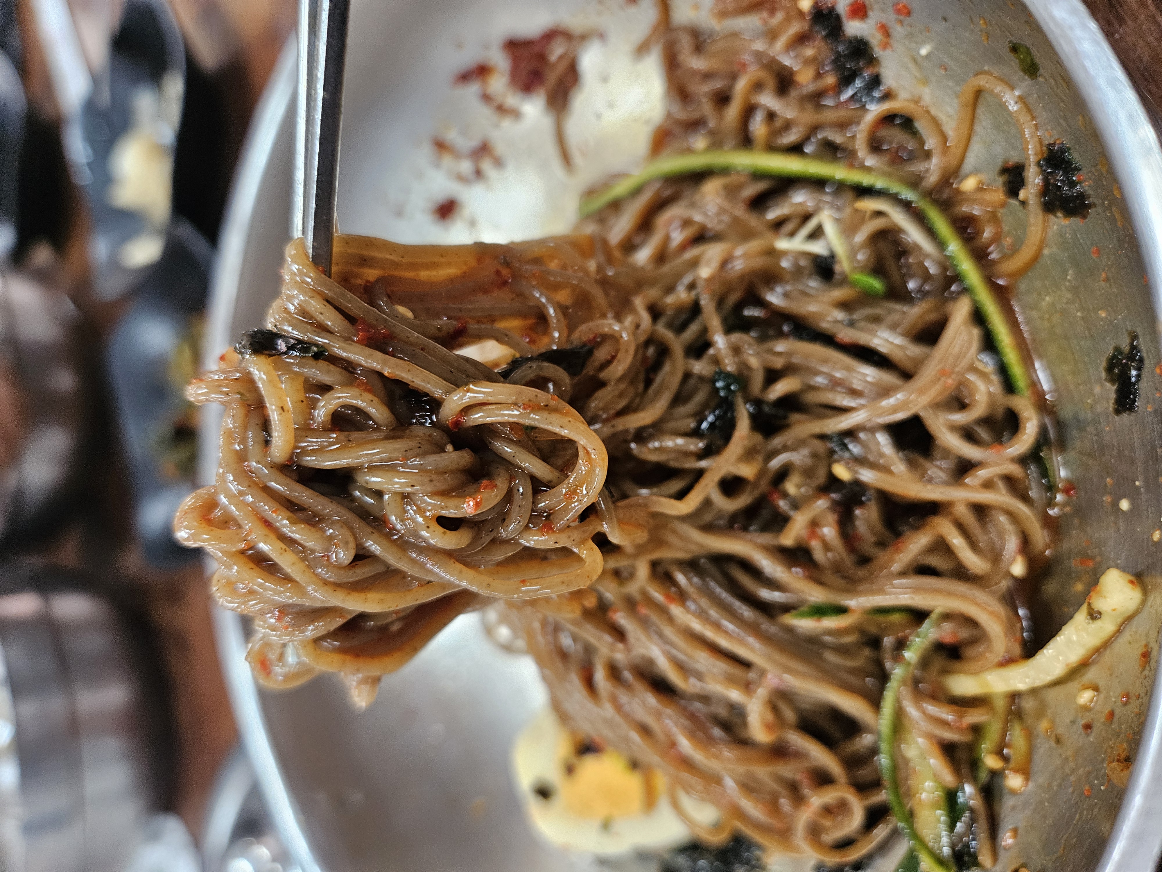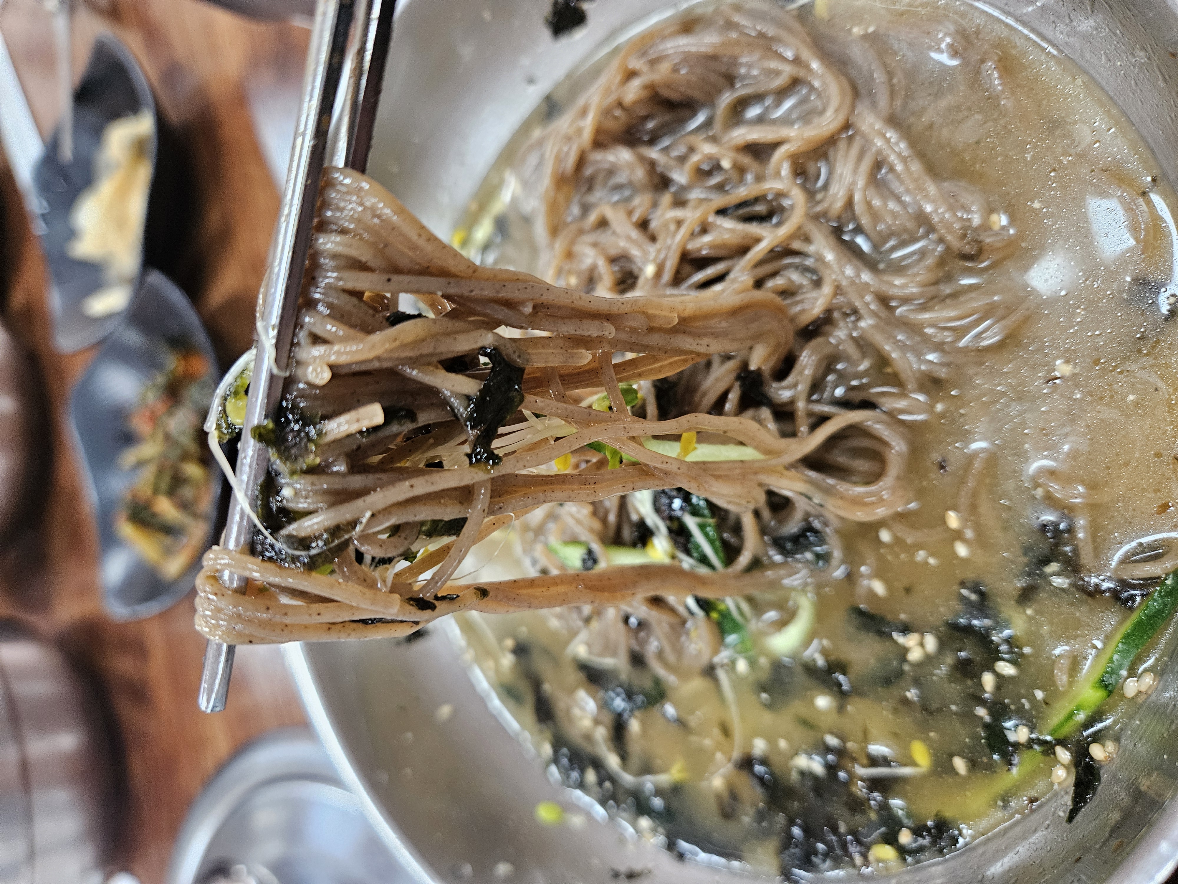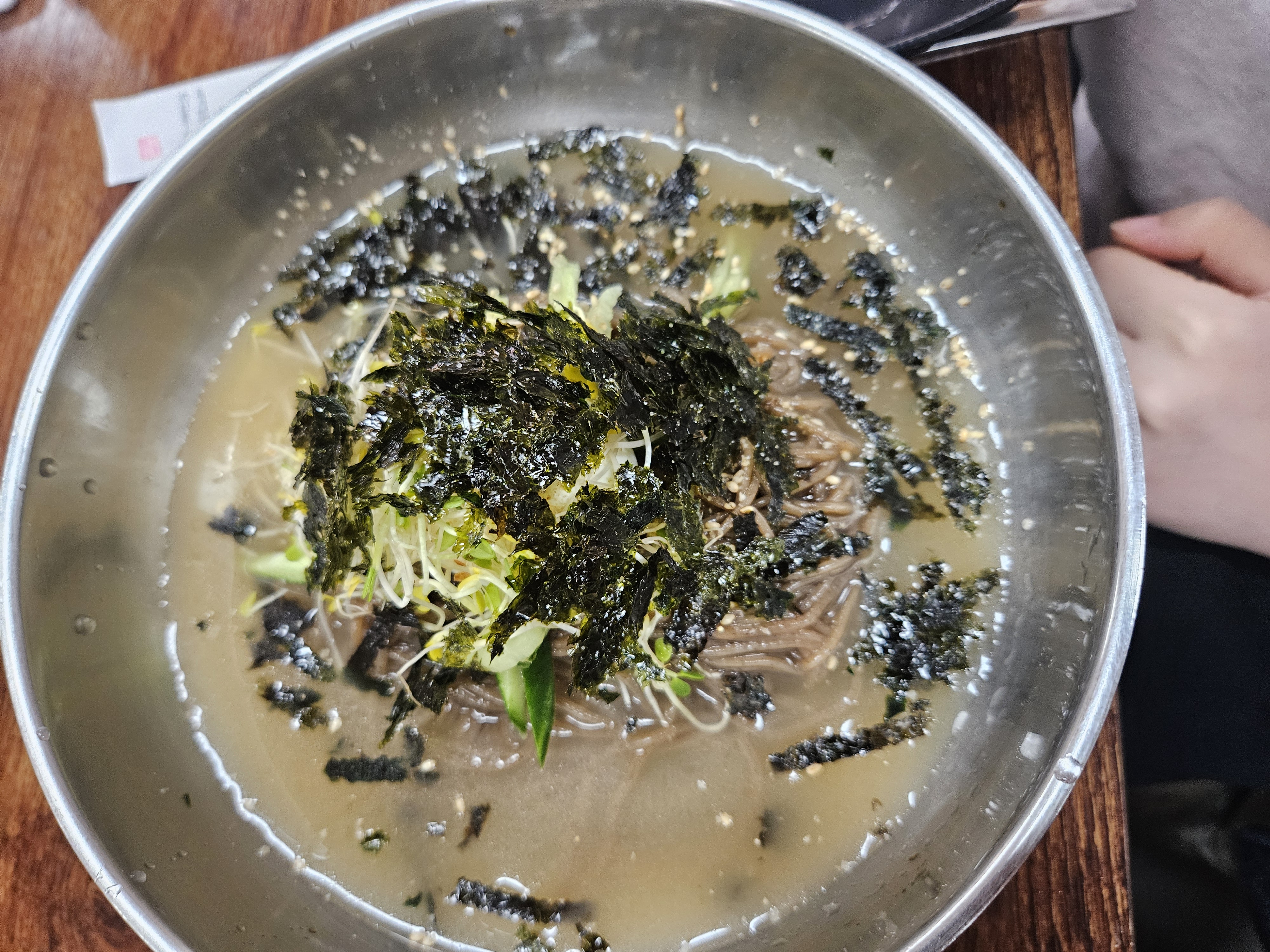 처음 내부를 보고 맛있을까? 의심 들었지만 자극적이지 않고 너무 맛있었는데요. 그냥 곱빼기로 시킬걸 후회가 되었답니다. 진짜 강원도 막국수가 왜 맛있는지 알 것 같더라고요. 면이 진짜 탄력 있는데 부드럽고 입안에 메밀향이 잊지 못할 맛이었답니다. 직접 뽑은 면이라서 그런지 정말 맛있더라고요~ 막국수는 강원도에서 먹어야 한다는 말이 왜 생겼는지 알 것 같았습니다! 정말 꼭 방문해 보세요~