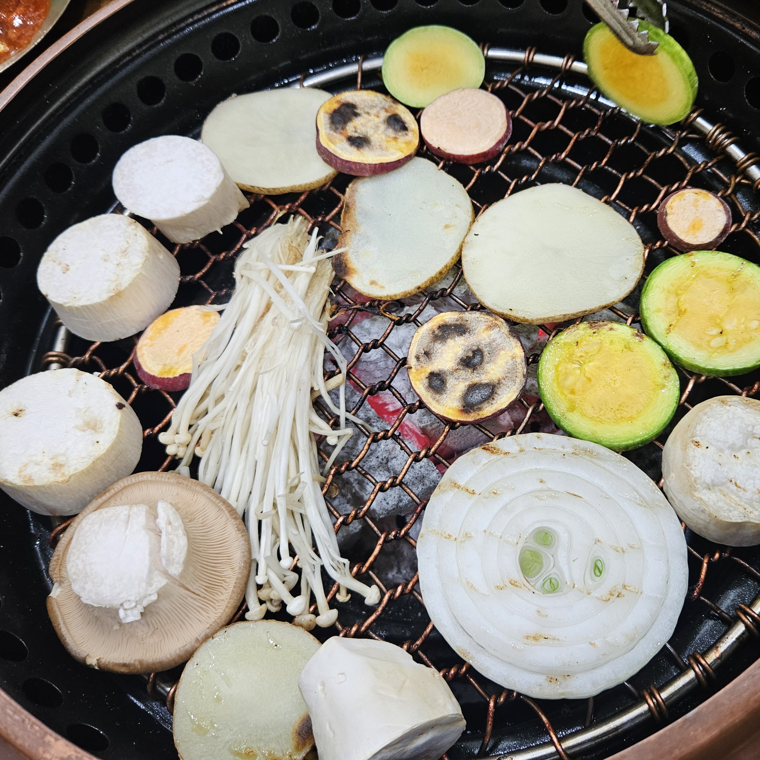 거기에 채소도 같이 구워서 먹었는데 육즙이 얼마나 터지던지 비싼 값을 하는구나 싶었습니다.