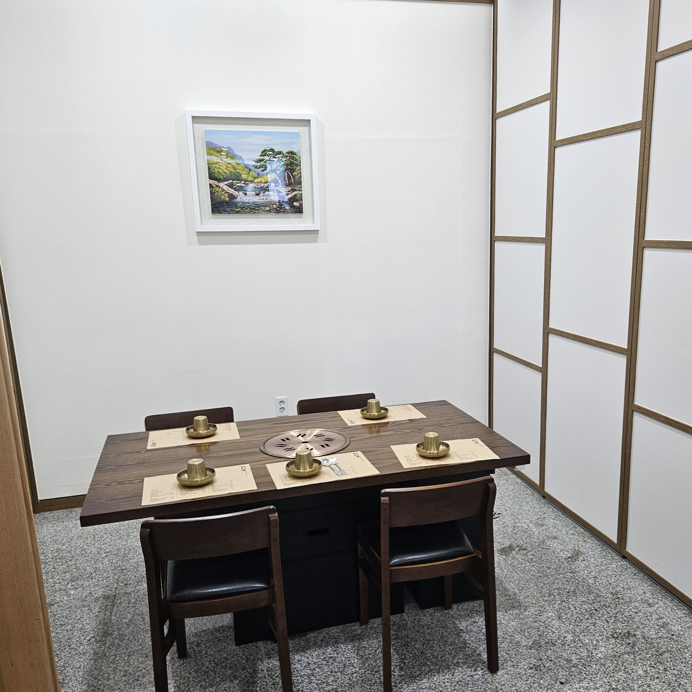 그렇게 먹고 싶은 고기 종류와 채소를 선구매하고 테이블 쪽으로 들어갔는데요. 가운데에는 일반 테이블이 있고 사이드에는 룸으로 되어있는 자리가 있더라고요.