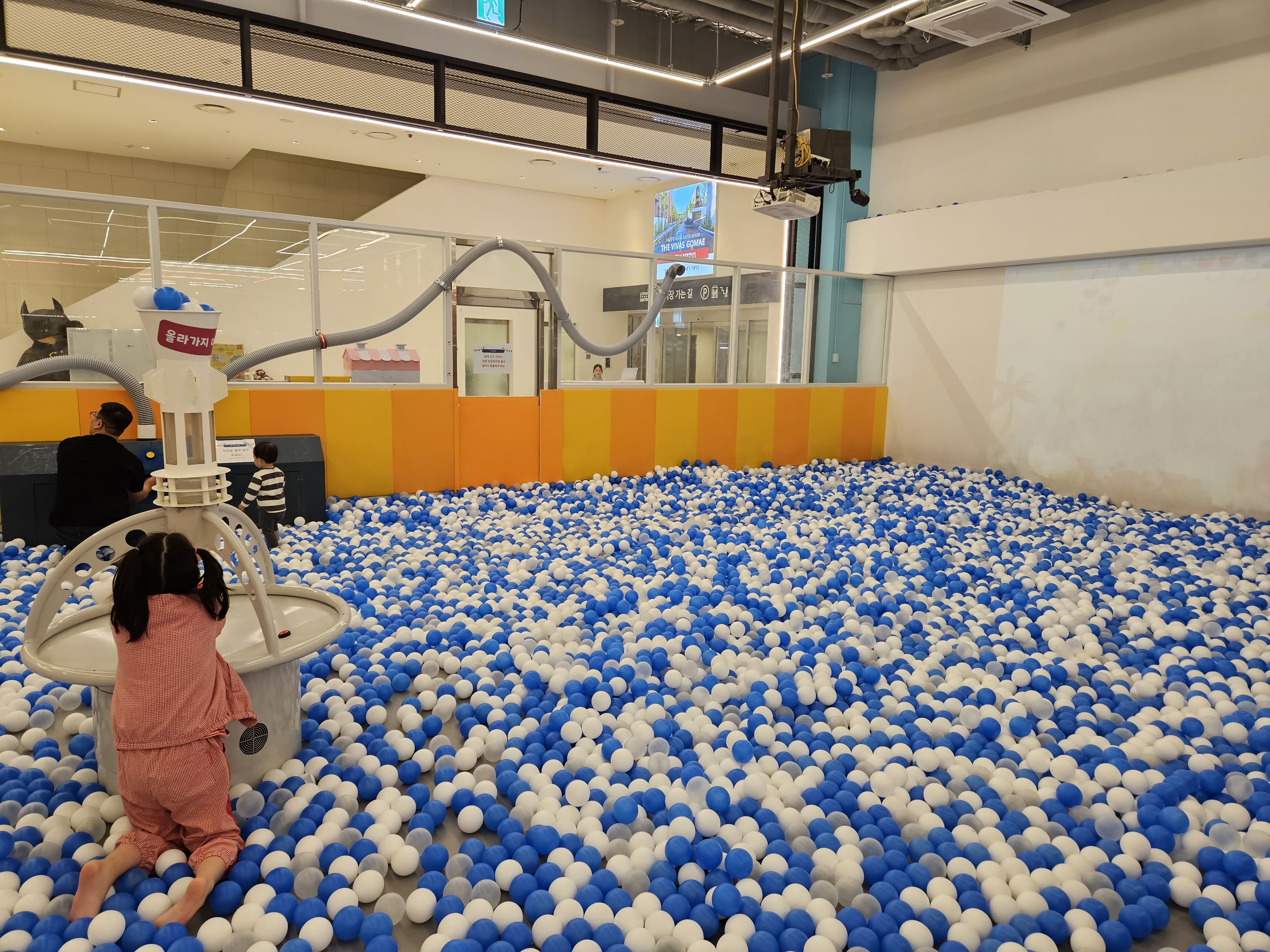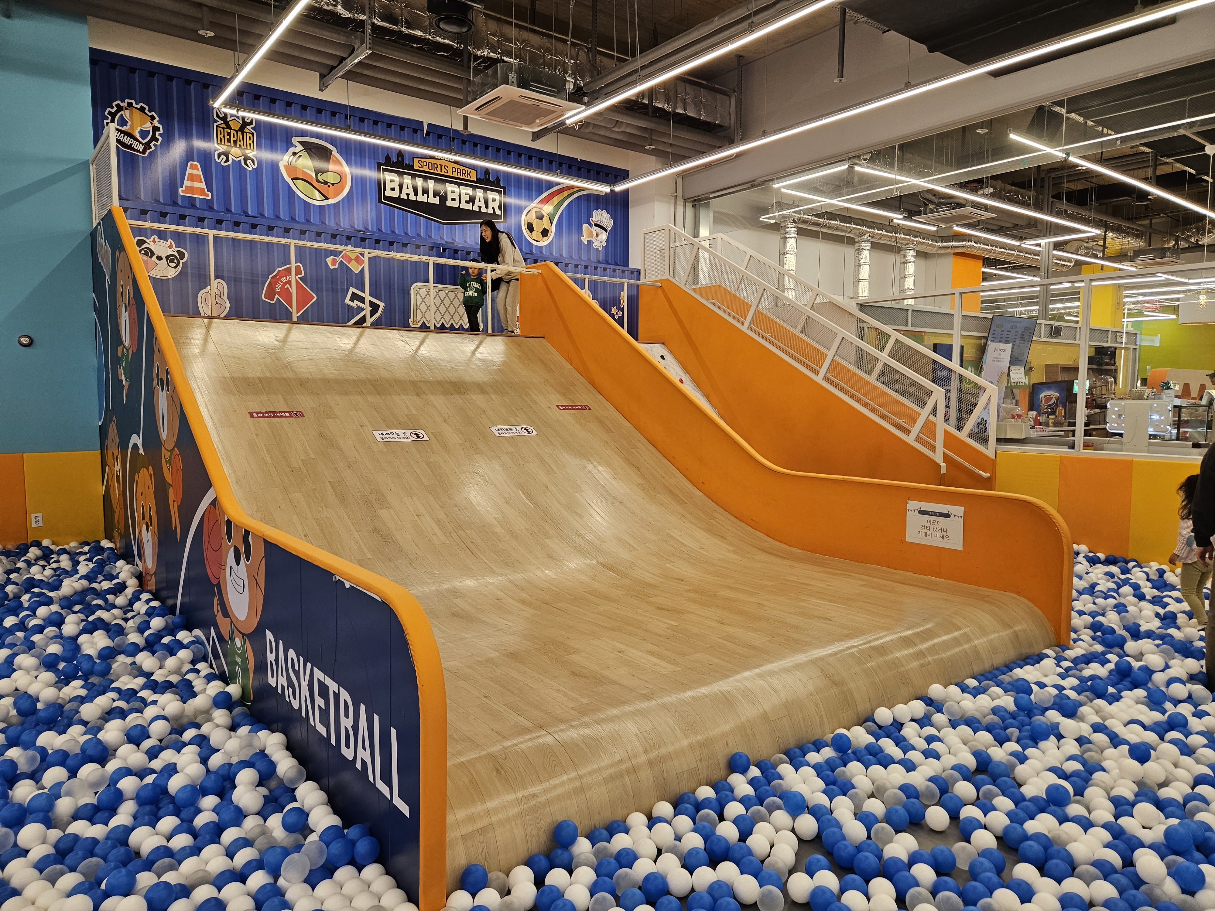 미니 축구장 다음으로 제일 재미있게 놀았던 곳이 바로 공풀장인데요. 여기는 클라이밍이나 계단을 통해 위로 올라가 엄청 넓은 미끄럼틀을 타고 놀 수도 있고