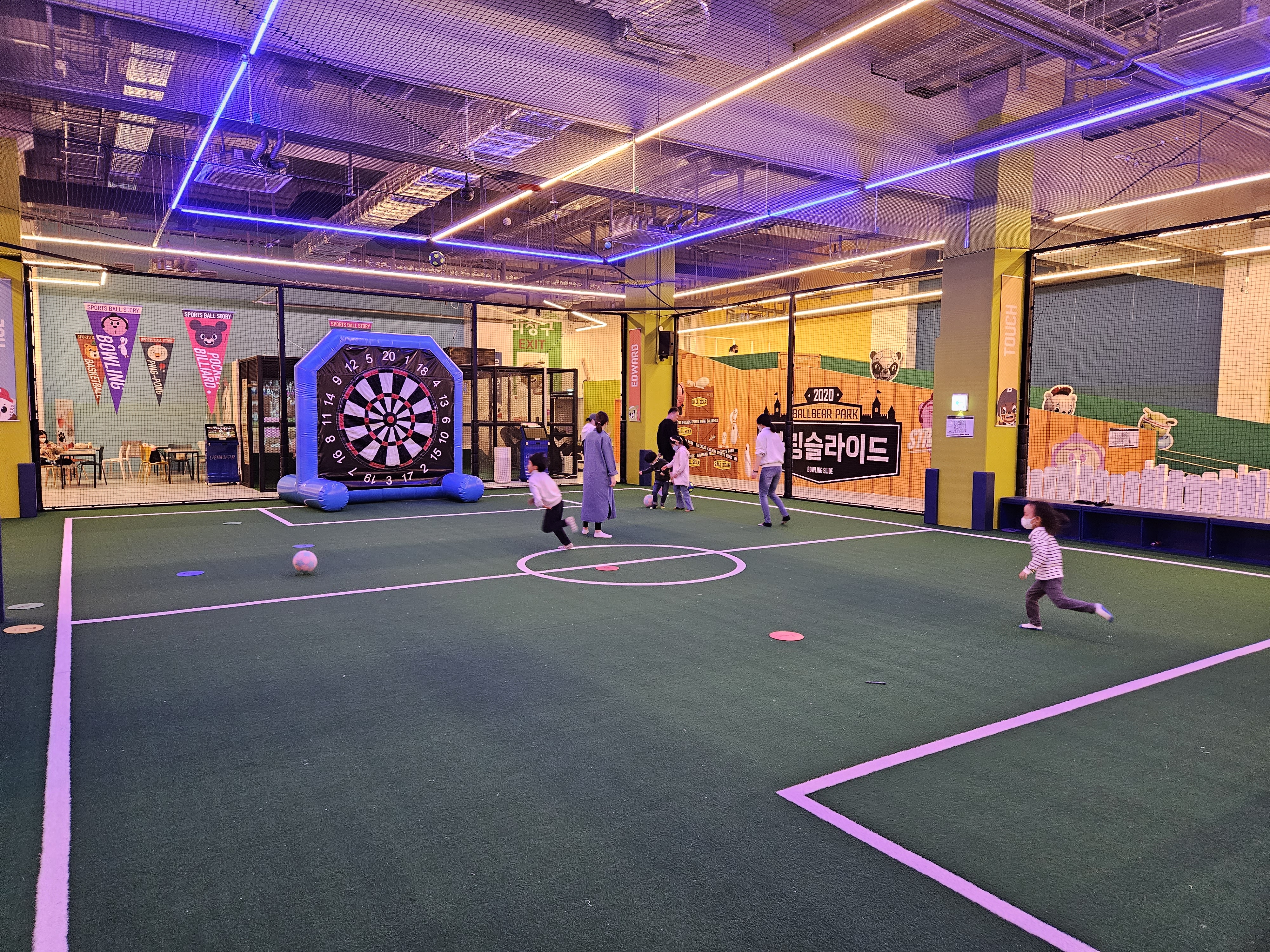권투 스파링장을 지나 35개월 아들이 먼저 뛰어놀았던 장소가 바로 미니 축구장인데요. 축구공도 많고 애들이 많더라고요. 그리고 축구를 잘하는 어른들도 있어 아들이랑 놀아줄 때 제가 강아지 발이라 조금 창피했습니다. 그래도 아들이 뛰어노는 모습에 같이 기분 좋게 놀았답니다.