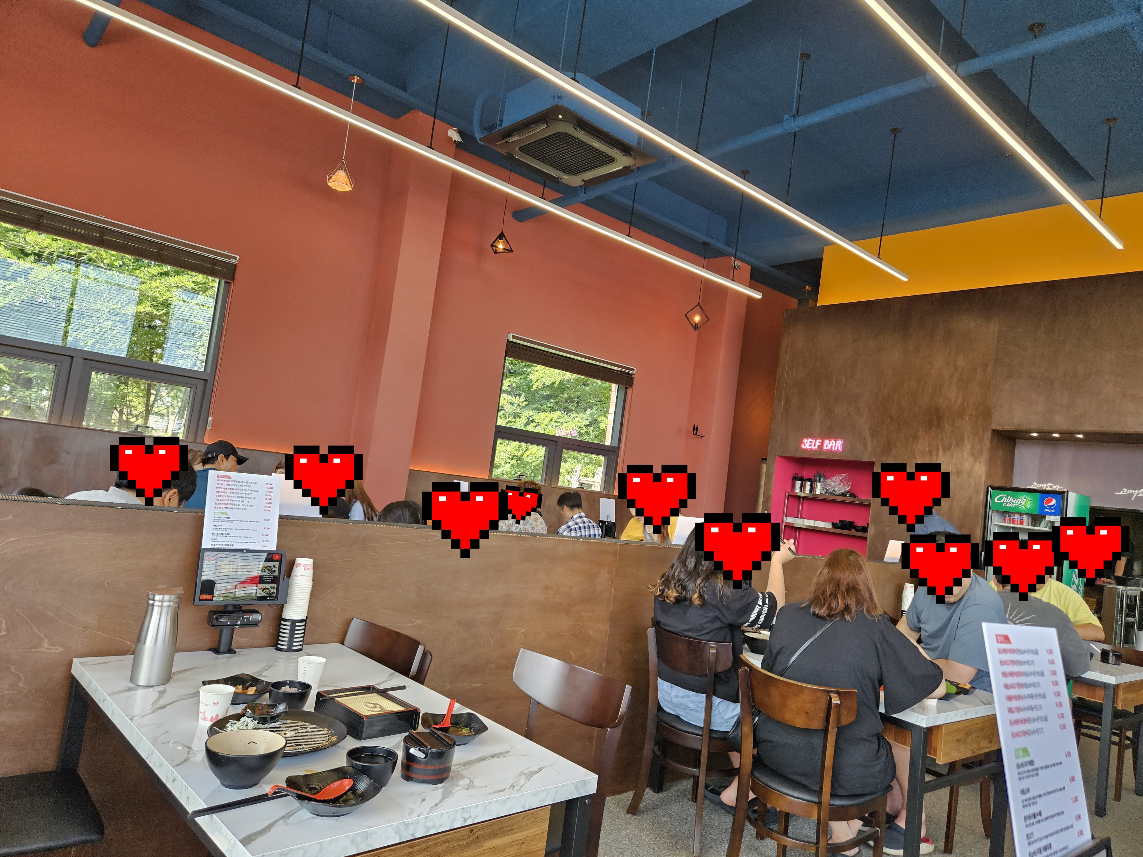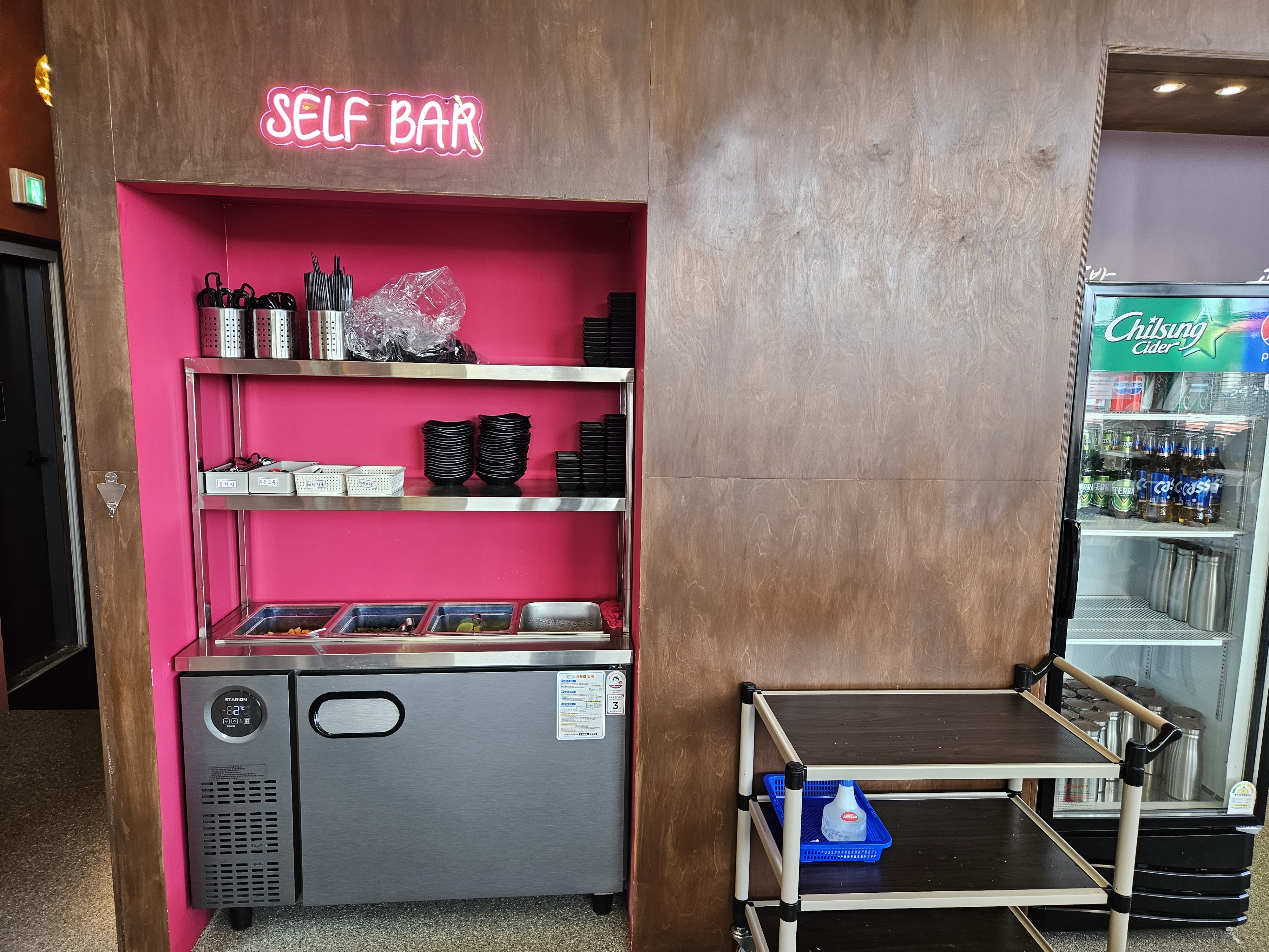 필요한 식기랑 간단한 반찬은 셀프바를 이용해야 한다는 점 참고하시길 바랍니다.