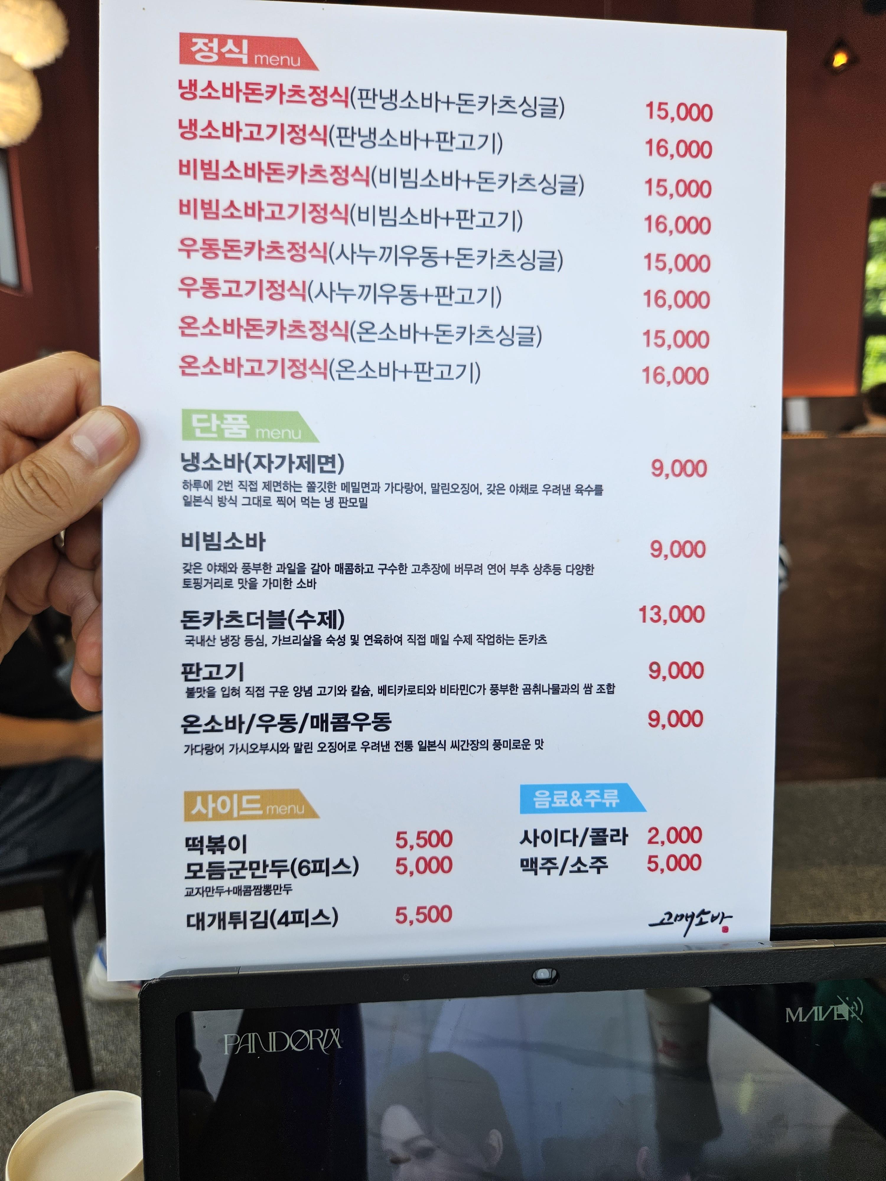 고매소바 메뉴판