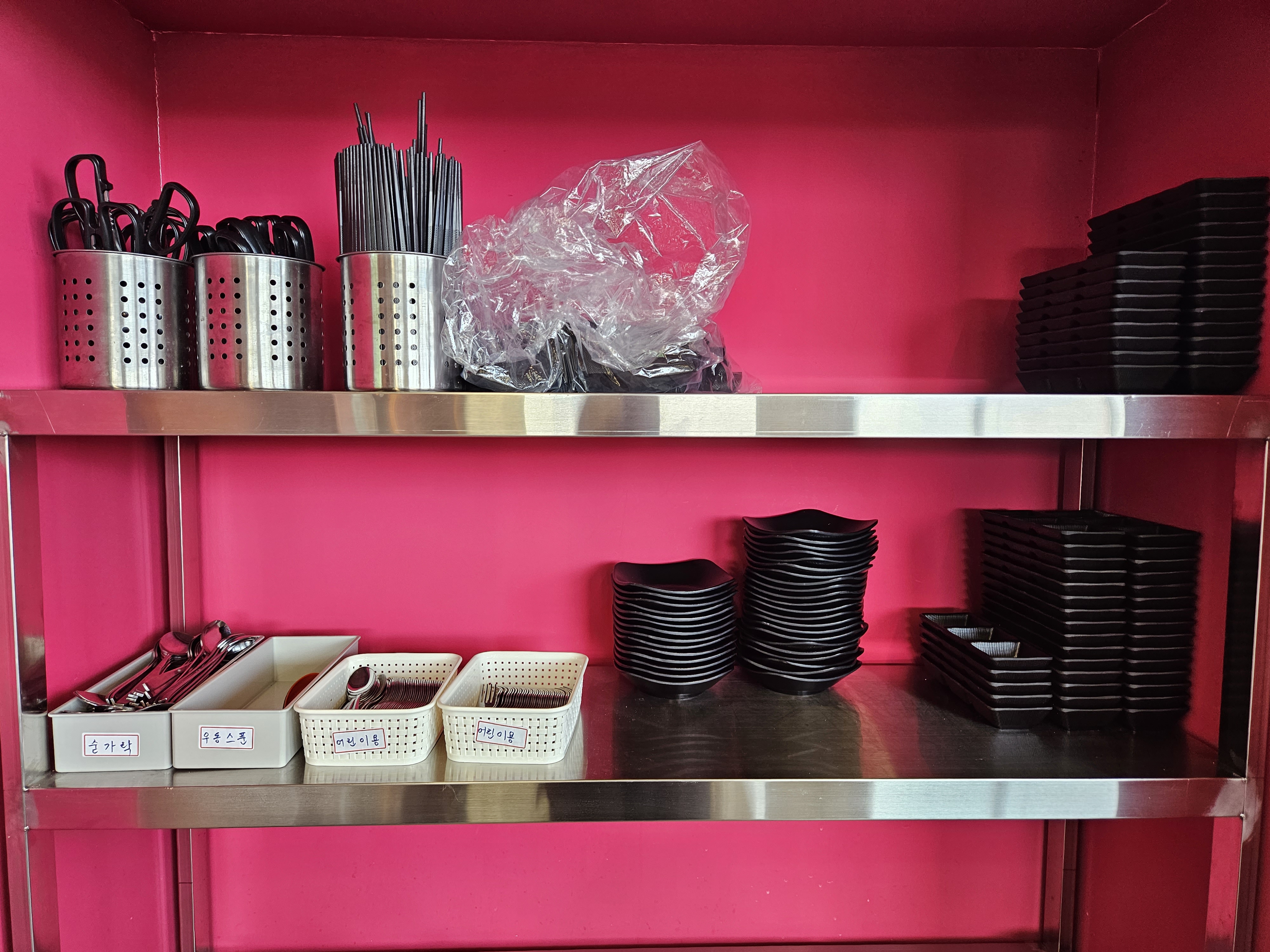 필요한 식기랑 간단한 반찬은 셀프바를 이용해야 한다는 점 참고하시길 바랍니다.