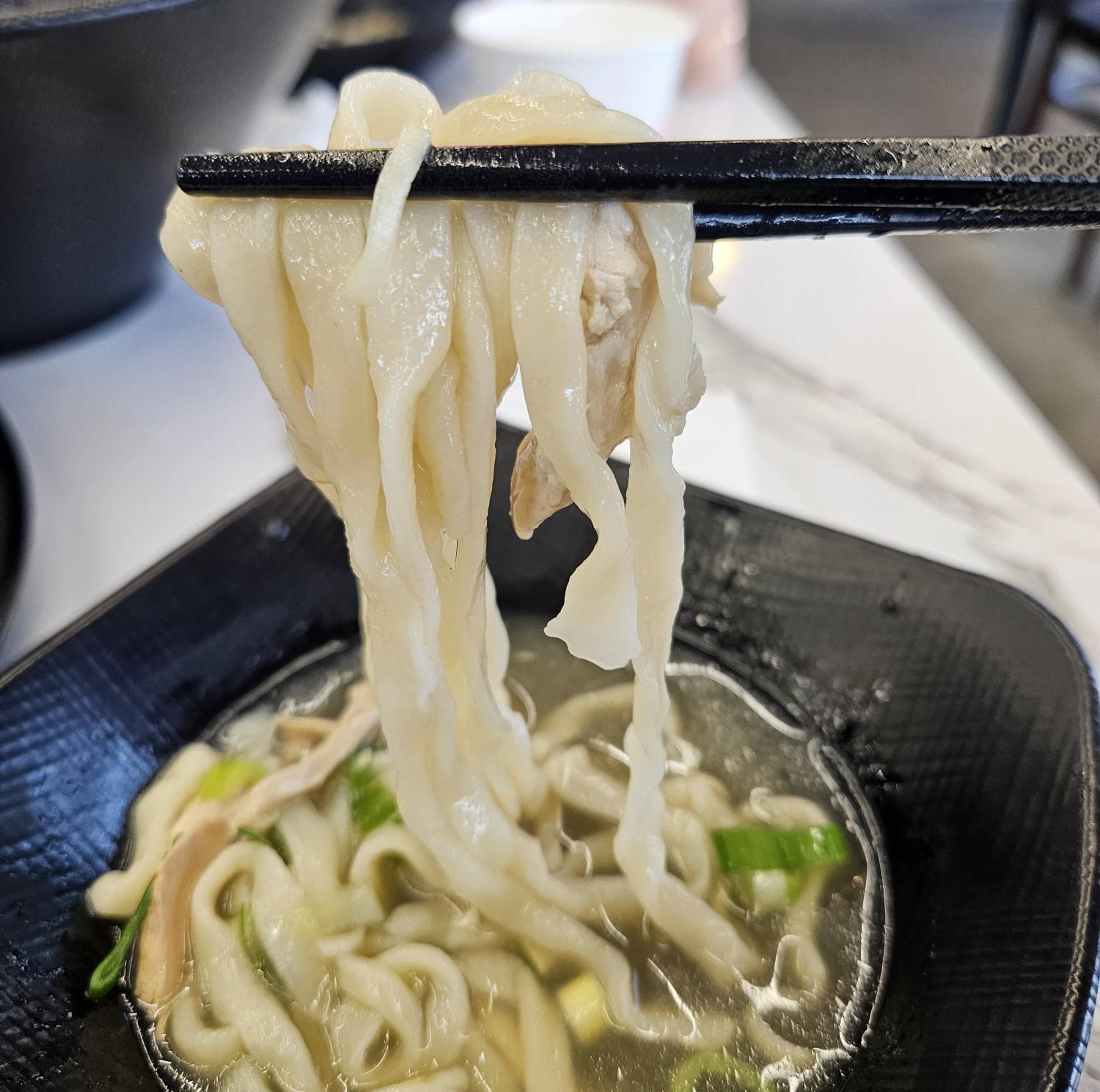 ▲ 우선 새로운 메뉴인 닭칼국수를 먹어보았는데요. 기대했던 것보다는 별로였습니다. 국물은 닭육수라서 담백하고 깔끔하긴 했지만 저희 입맛에는 간이 좀 세게 느껴지더라고요. 그래서 면 위주로 먹고 국물은 거의 안 먹은 것 같습니다.