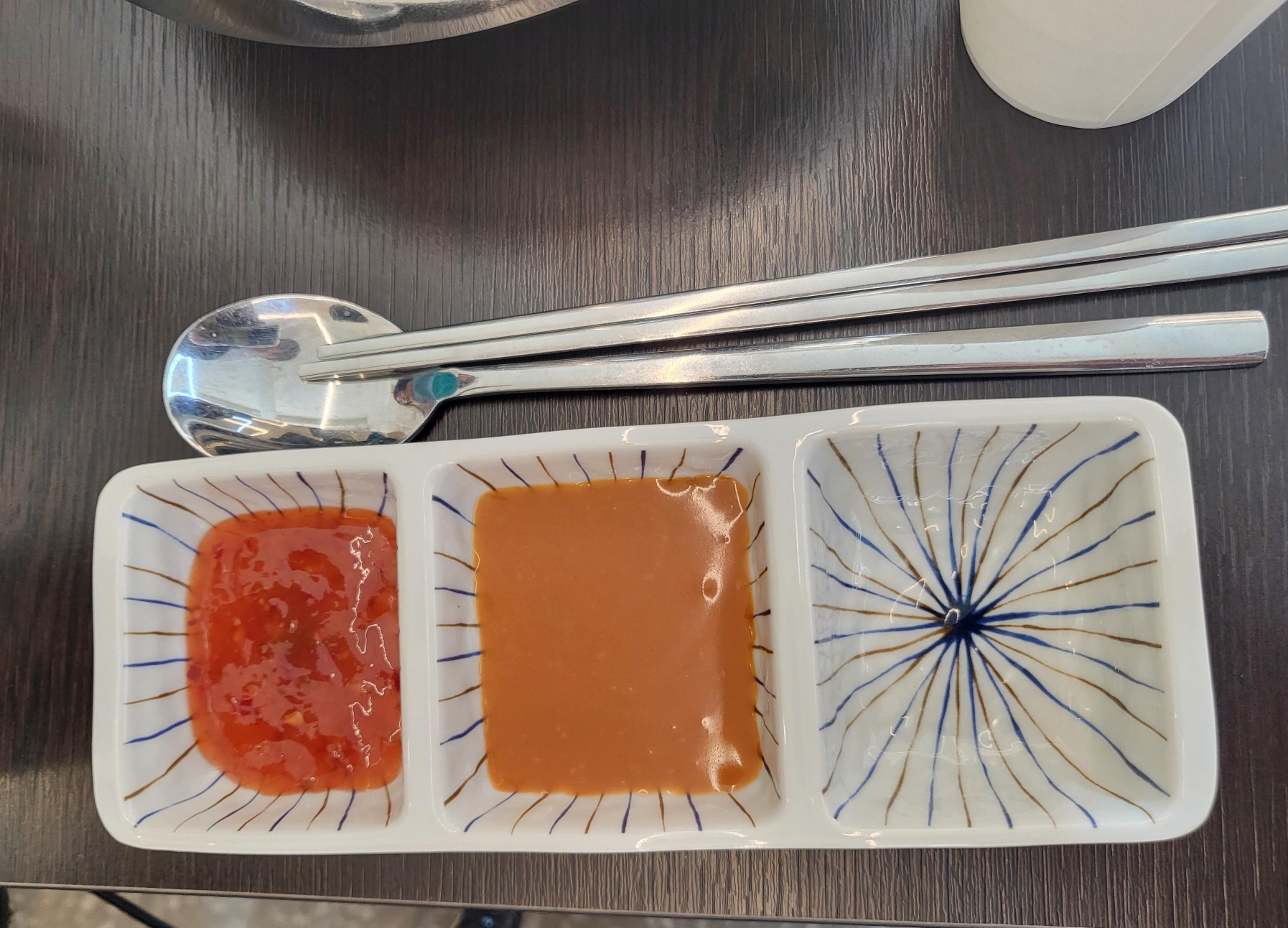 그 외 각종 소스 라이스페이퍼 수저 뜨거운 물과 고기는 각 사이드에 배치되어 있는데 다 셀프며 무제한이라는 점. 그리고 고기 크기는 두 가지로 나눠져 있으니 참고하시길 바랍니다.
