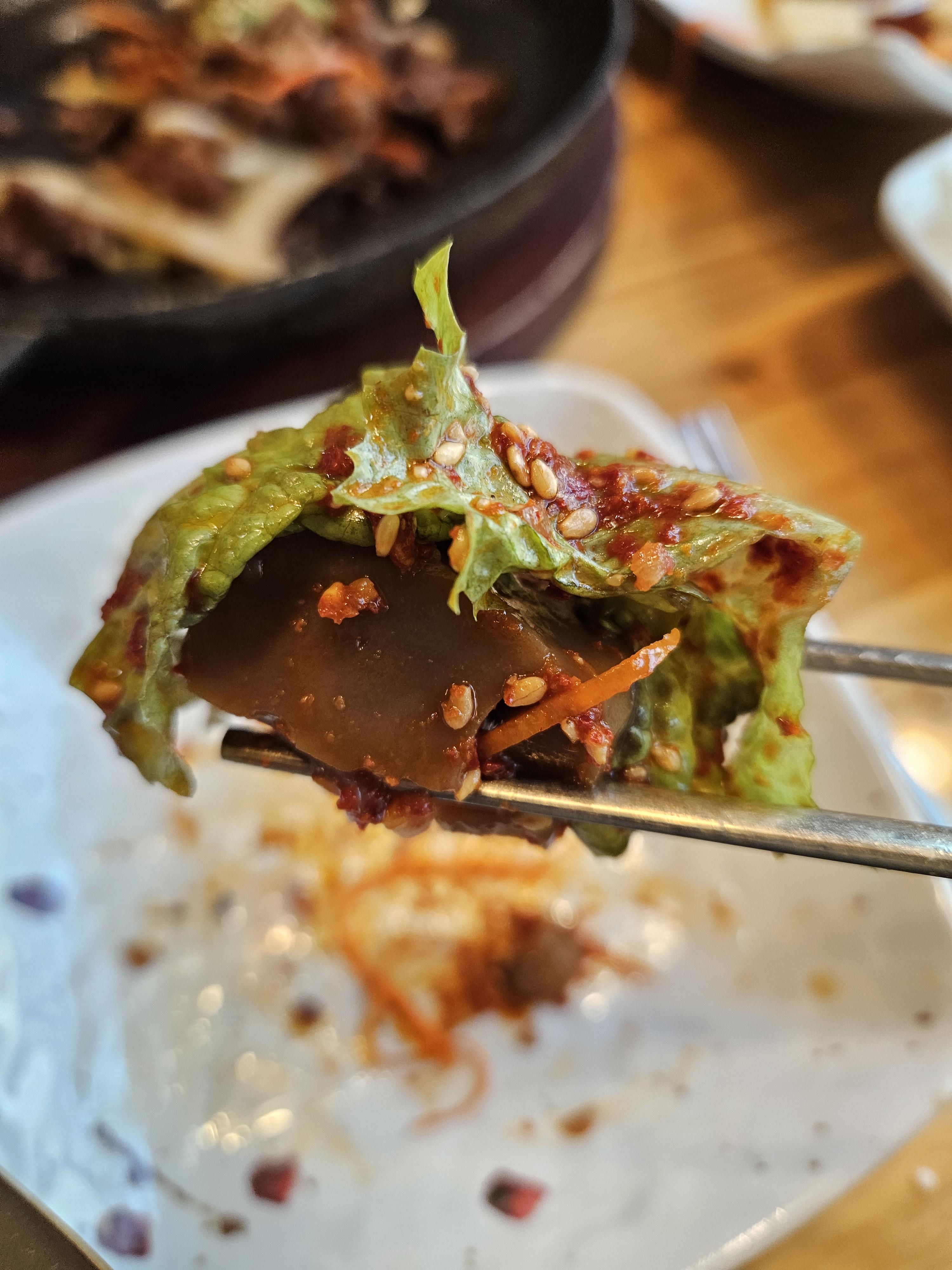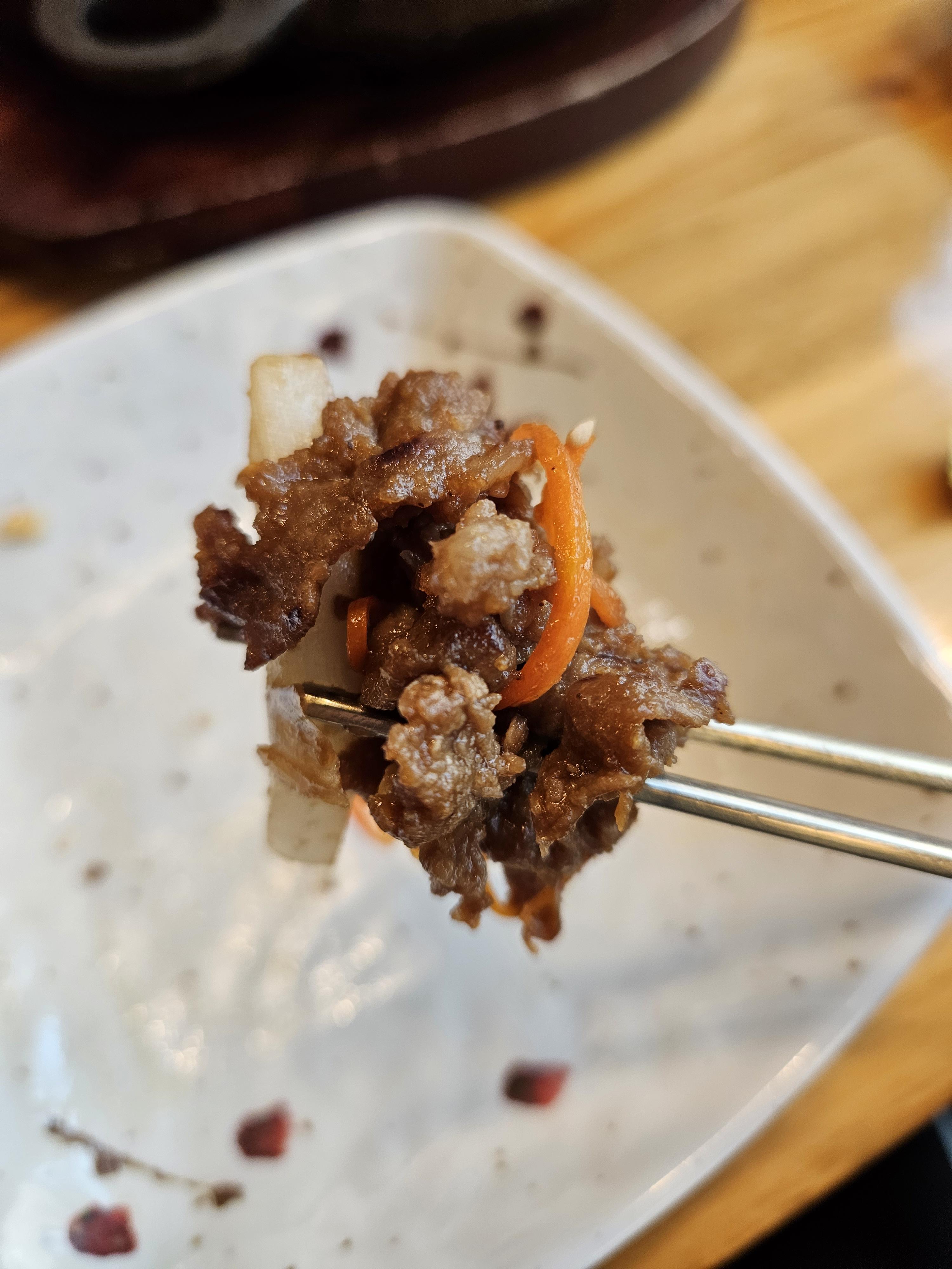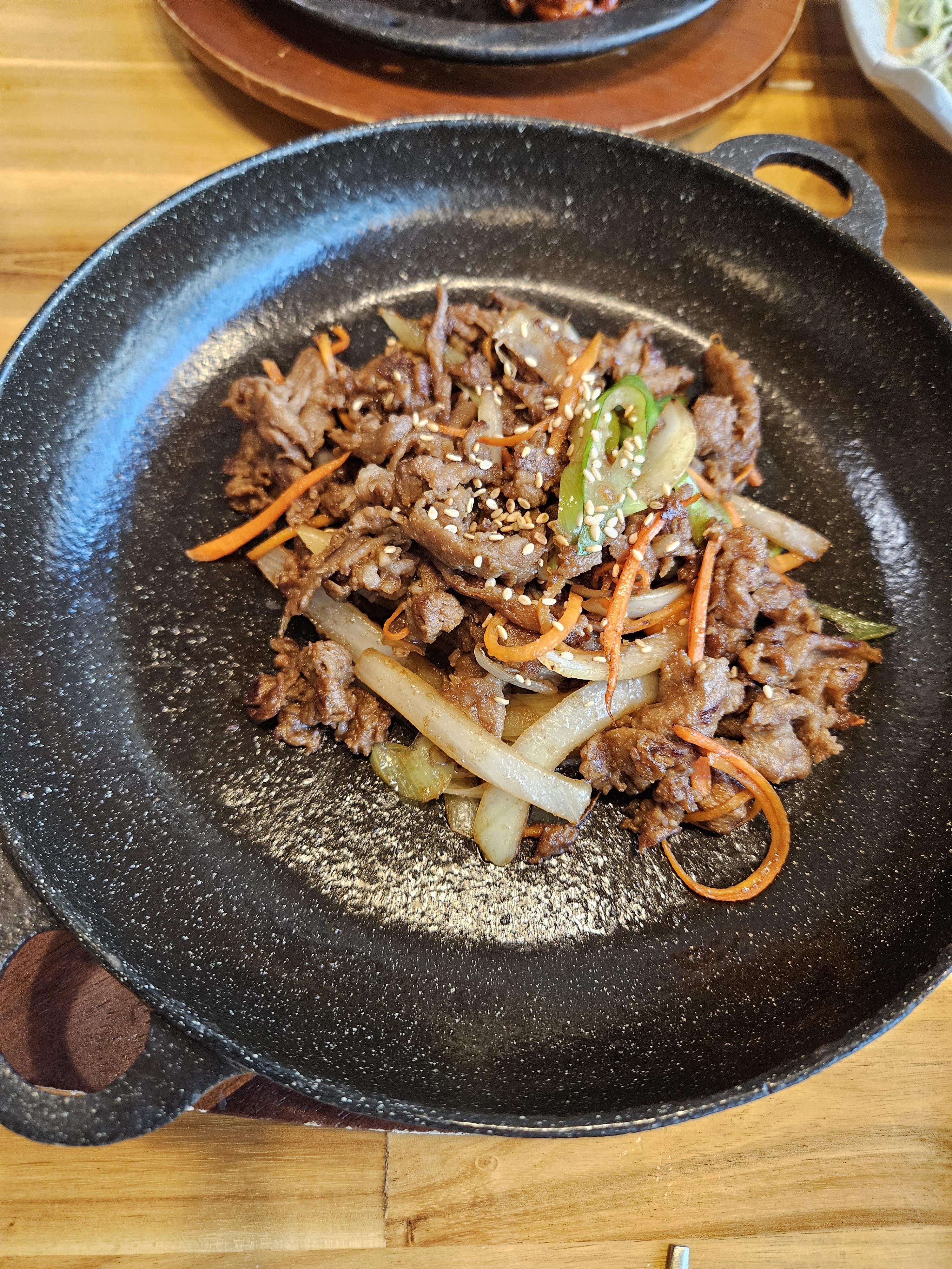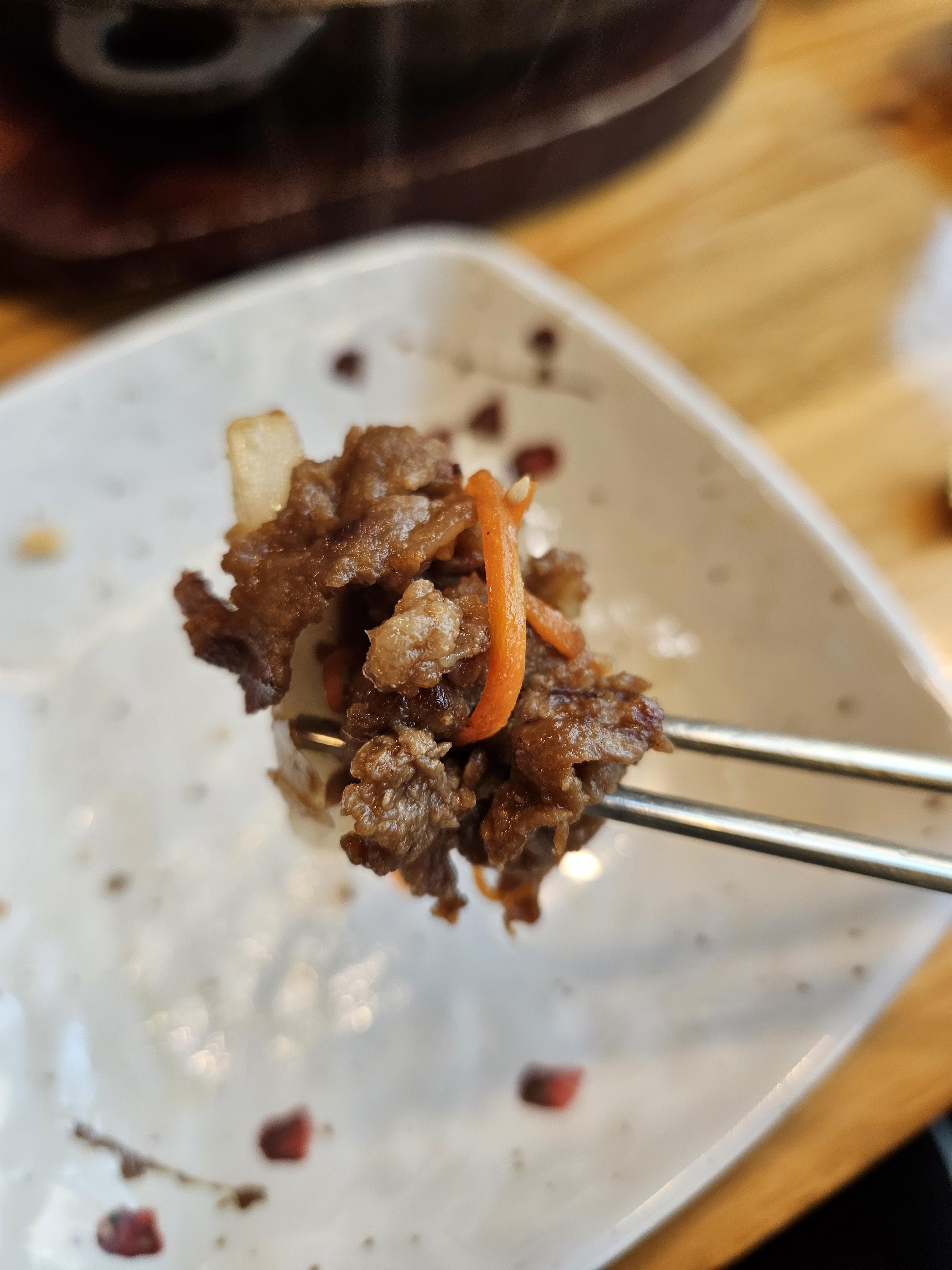 위에 나온 4가지 반찬을 먹다 보면 소불고기가 나오고