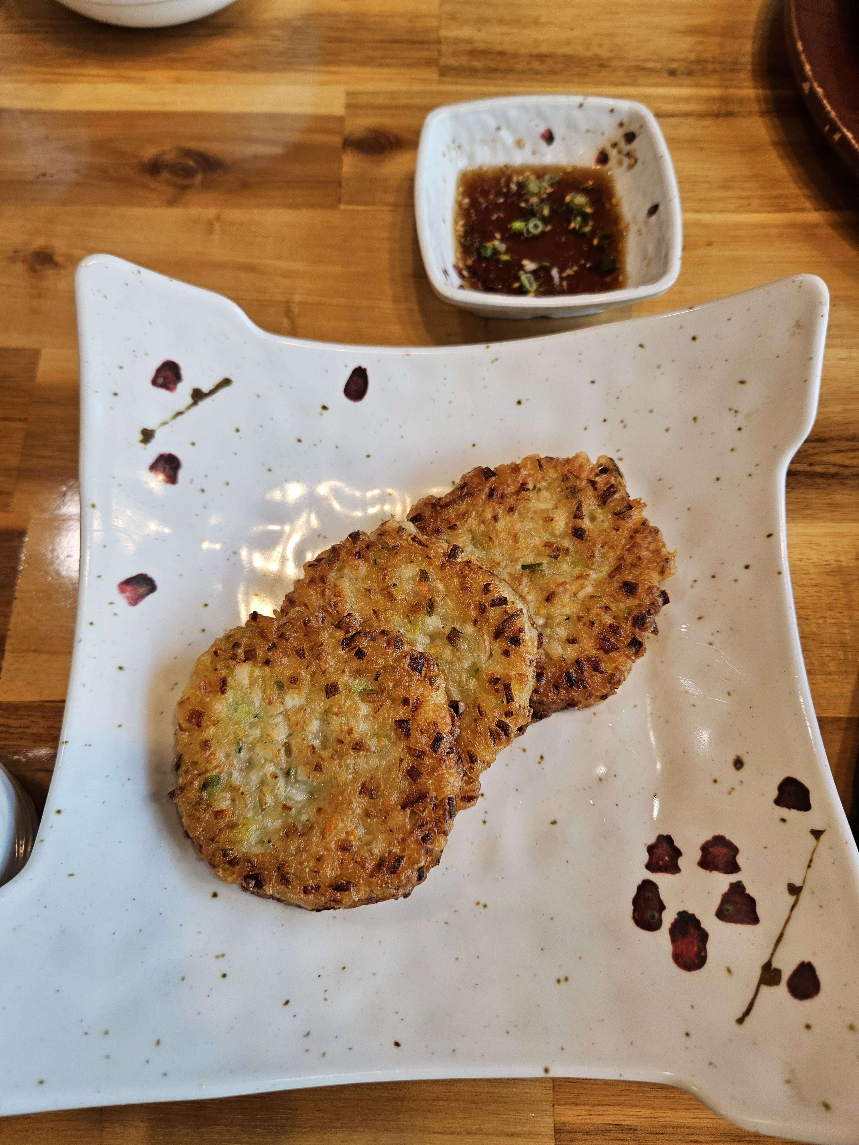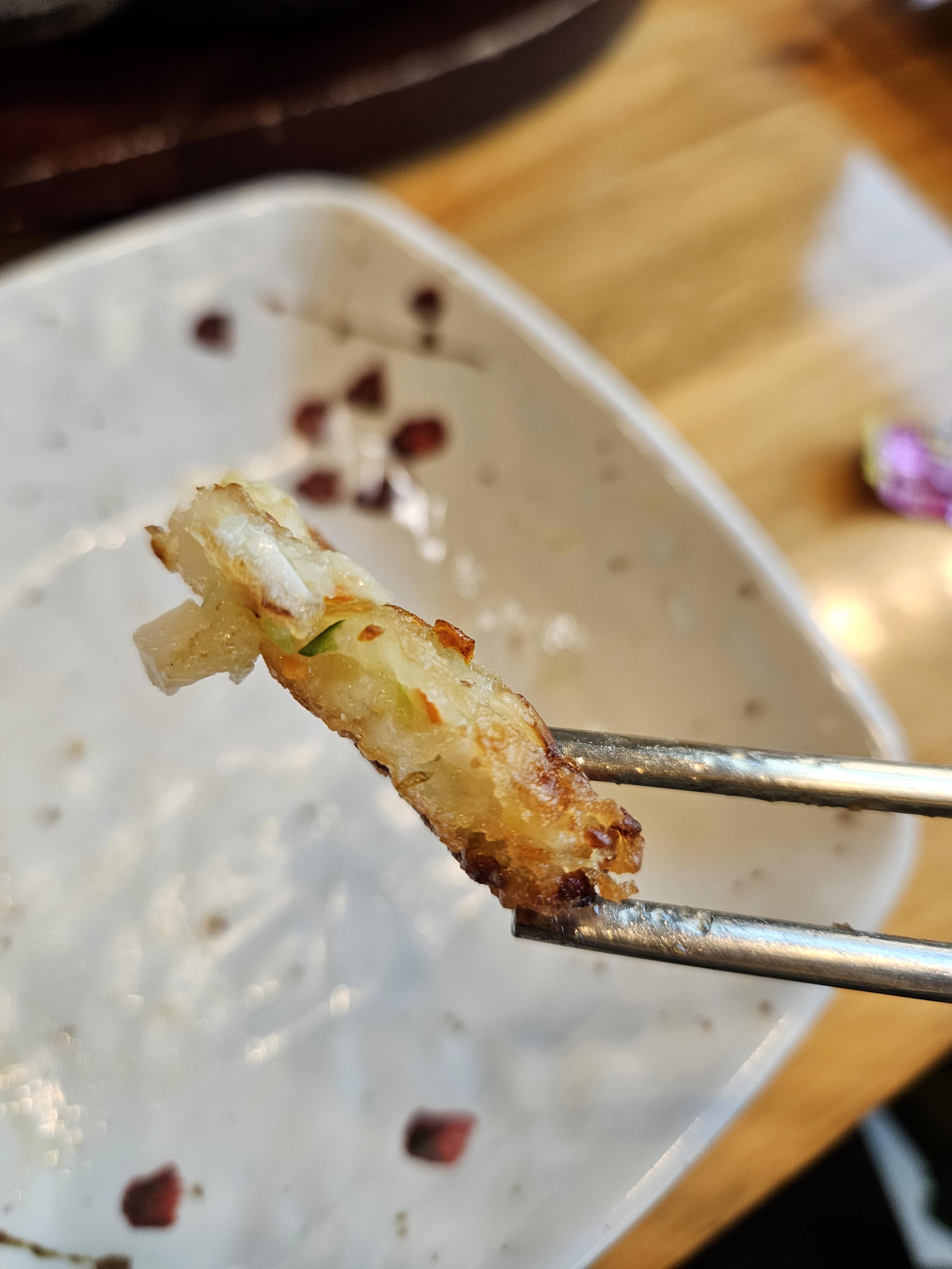 그리고 아들이 정말 좋아하는 반찬 중 하나인 야채 전도 바삭바삭하고 담백해서 진짜 맛있습니다. 식감이 좋아서 야채를 싫어하는 아이들도 잘 먹을만한 반찬중 하나입니다. 제가 먹어도 맛있는데 34개월 아들은 오죽하겠습니까