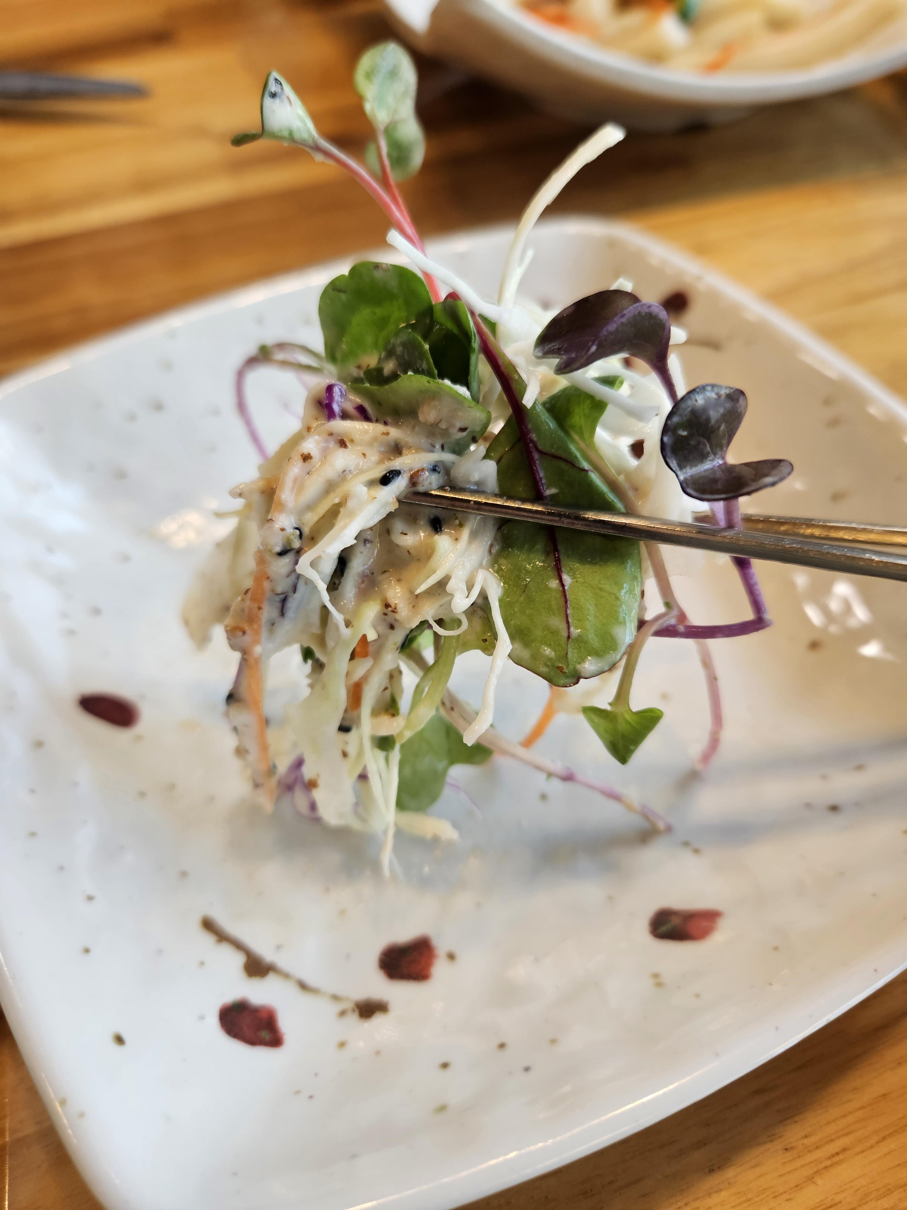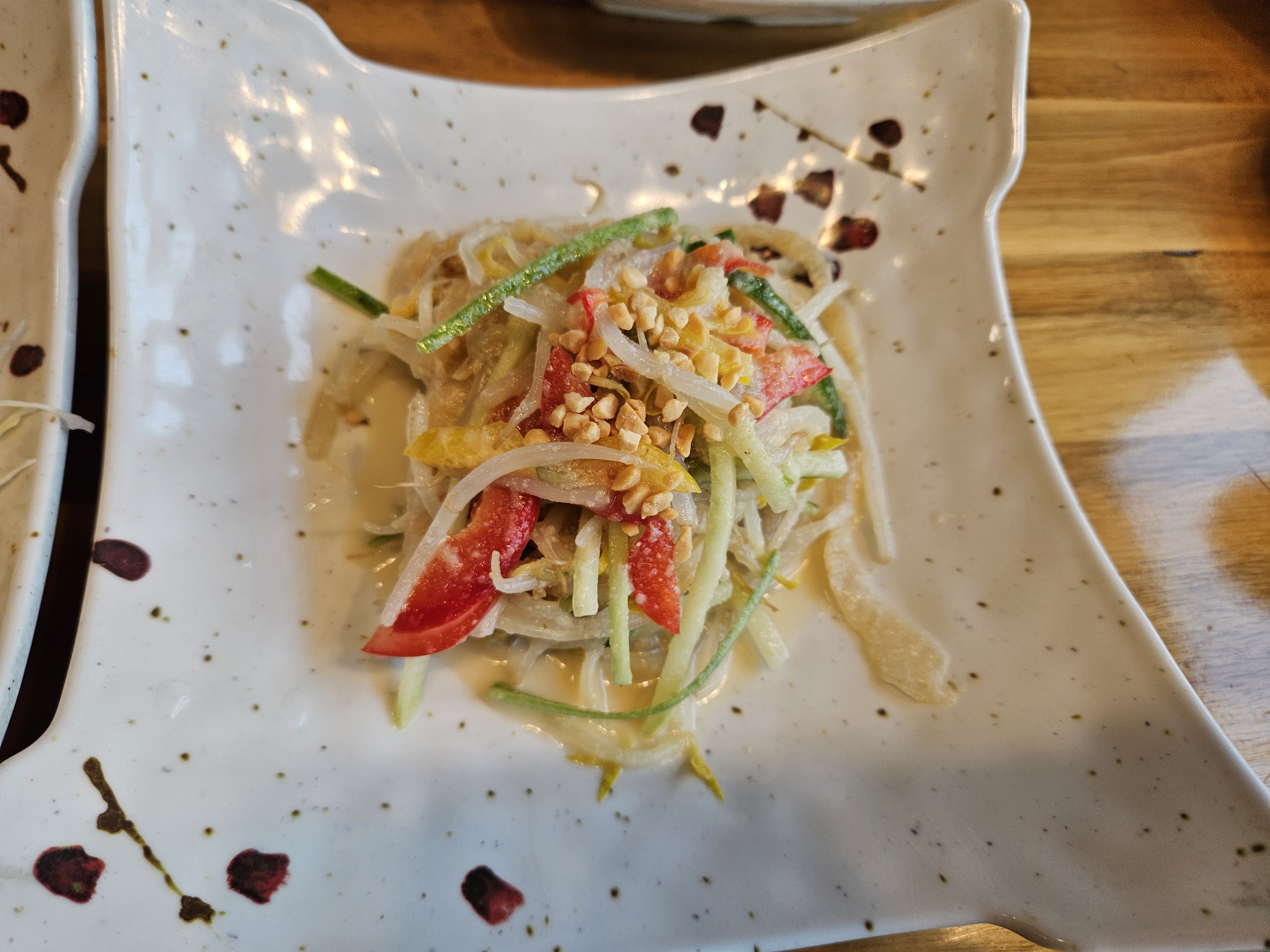 그리고 야채샐러드는 싱싱한 채소의 식감과 상큼한 드레싱이 어우러져서 술술 넘어가더라고요. 해파리냉채는 톡 쏘는 겨자맛이 시원하고 야채와 같이 씹히는 식감이 아주 좋았습니다.