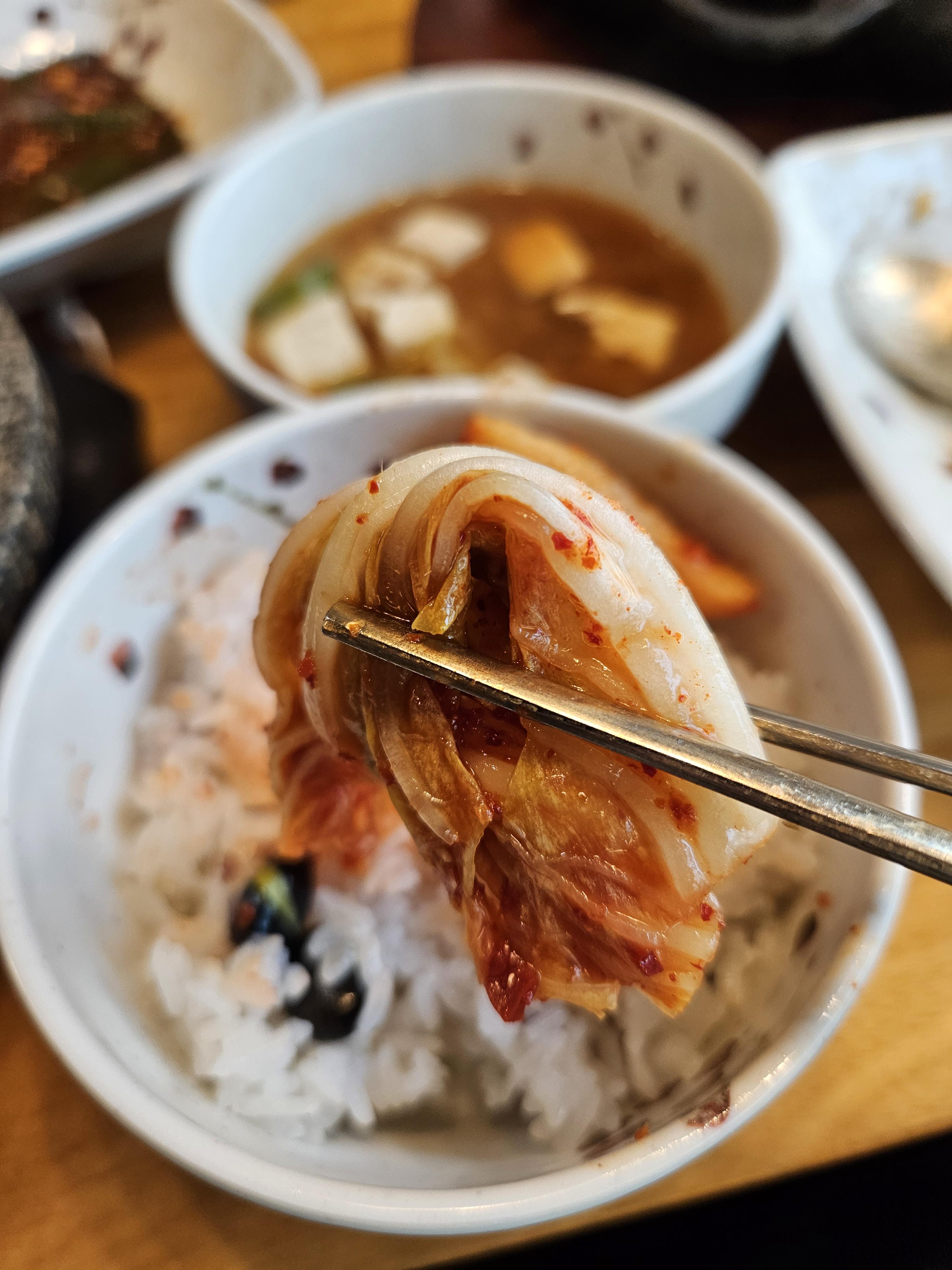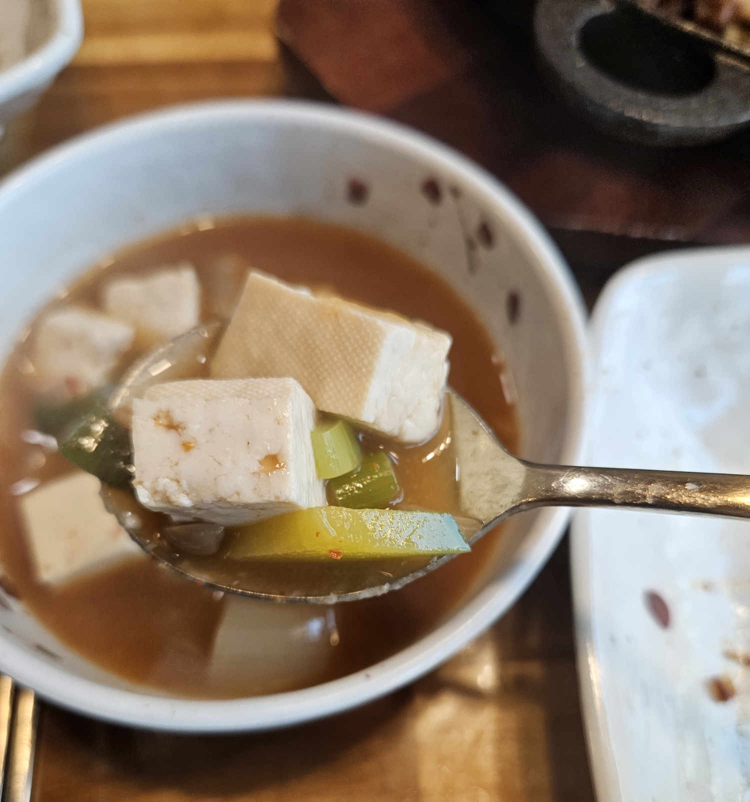 그리고 돌솥밥이랑 같이 나온 된장찌개 건더기도 많고 맛은 두말하면 잔소리 조금 얼큰하면서 맛도 좋습니다.