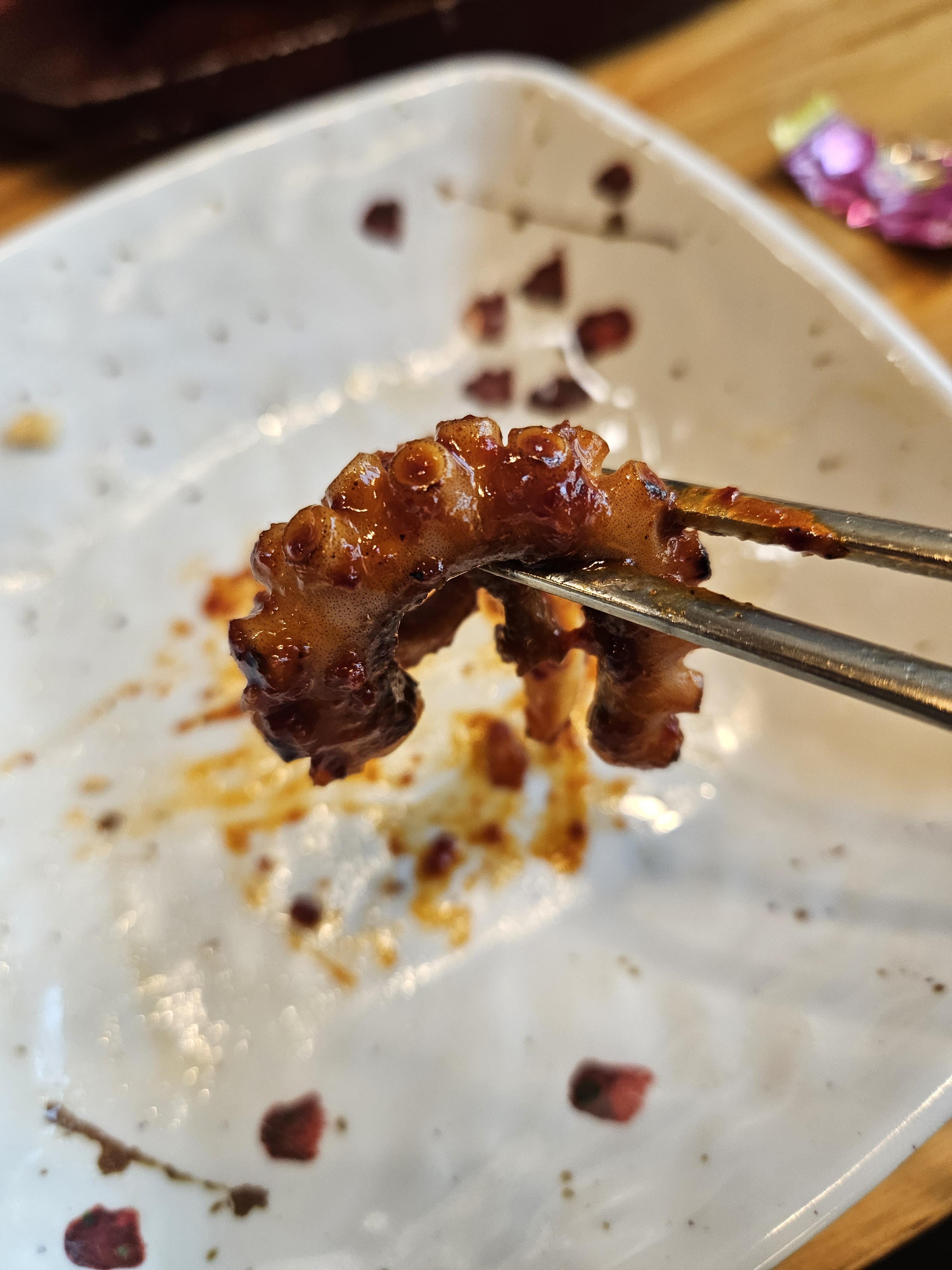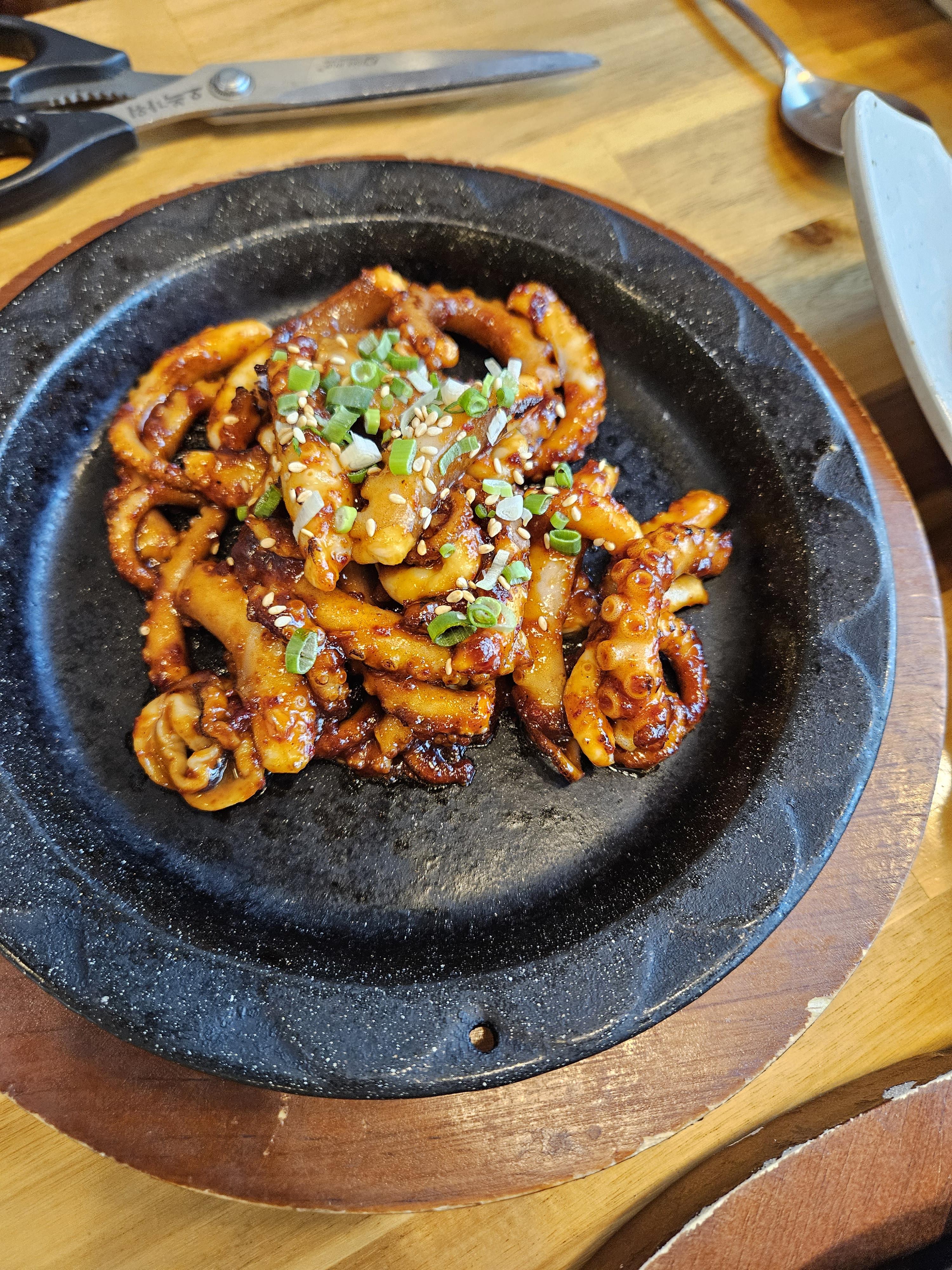 A정식에서 유일하게 매운 양념으로 나오는 낙지볶음 저는 매운 걸 좋아해서 맵기 정도는 1단계~5단계까지 있다고 가정했을 때 한 2단계 정도라고 말하고 싶은데요. 쫄깃쫄깃하고 남은 양념으로 저는 밥까지 비벼먹는답니다.