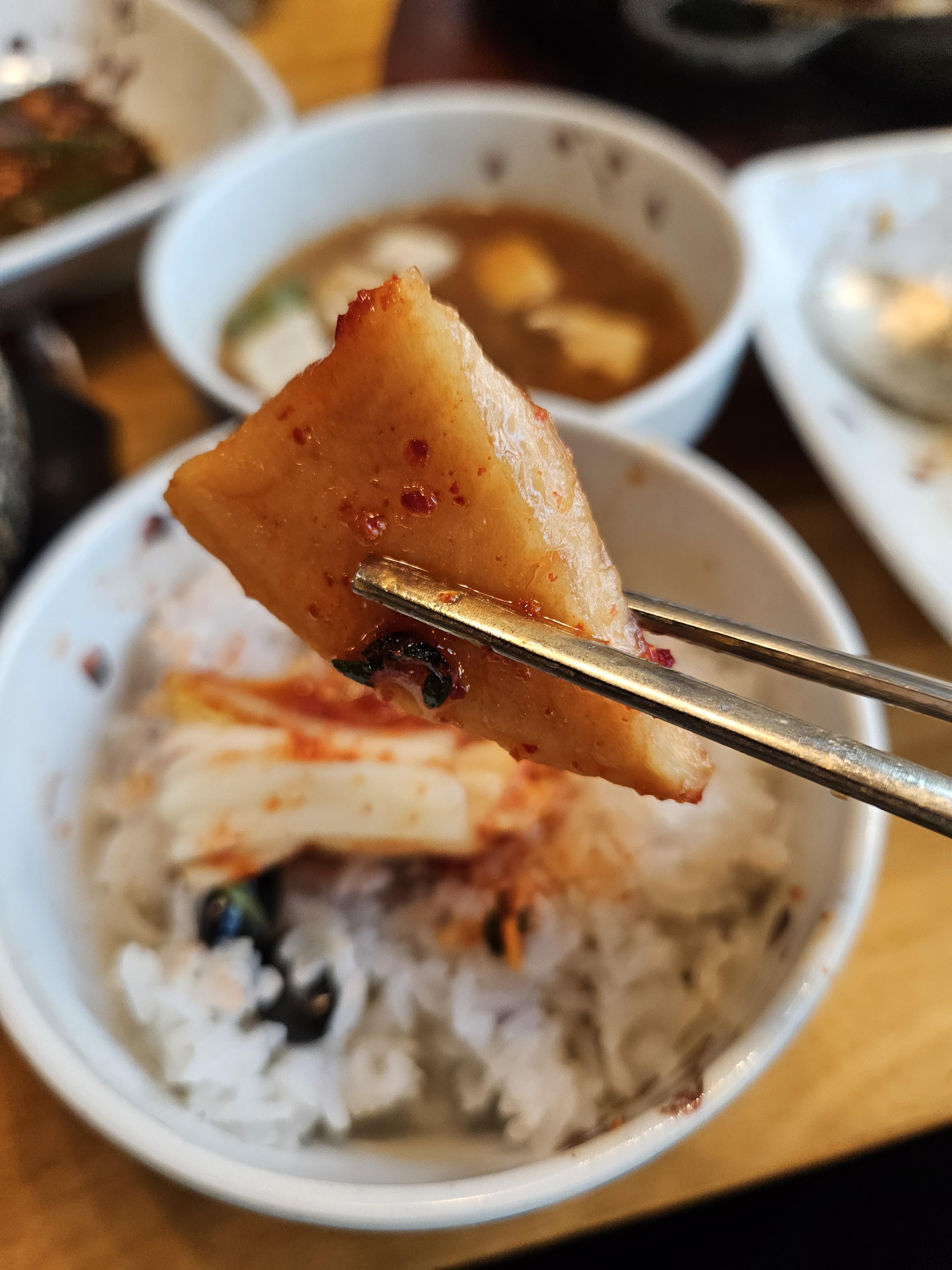 그리고 추가 반찬까지 나오면 A정식은 끝입니다. 메인 반찬들도 그렇지만 일반 반찬들도 전체적으로 짜지 않고 맛있습니다.