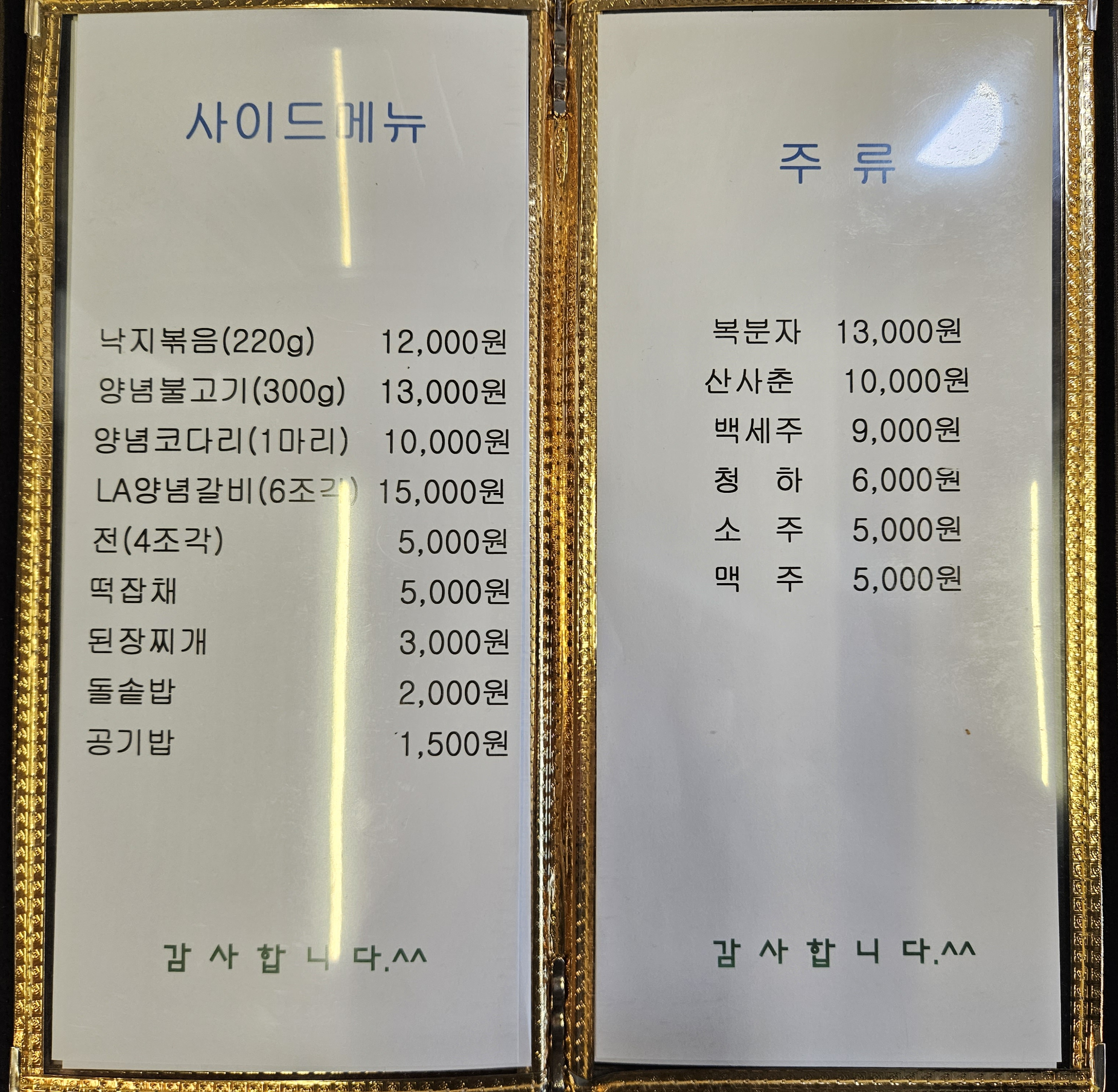 제가 계속 왜 짜지 않다는 걸 강요하냐면 보통 짠 음식을 많이 먹으면 물이 엄청 당기잖아요. 여기 음식들은 짜 보이는 음식들로 구성되어 있지만 전혀 짜지 않으면서 나오는 음식마다 다 맛있고 나중에 음식을 다 먹고 나면 물도 막 당기지 않아 저희 가족이 분기마다 한 번씩 꼭 방문하거든요. 정말 깔끔하게 외식을 하고 싶거나 생일 같은 기념일에 방문하면 정말 좋은 음식점이라고 생각해서 이렇게 소개드려보았습니다.