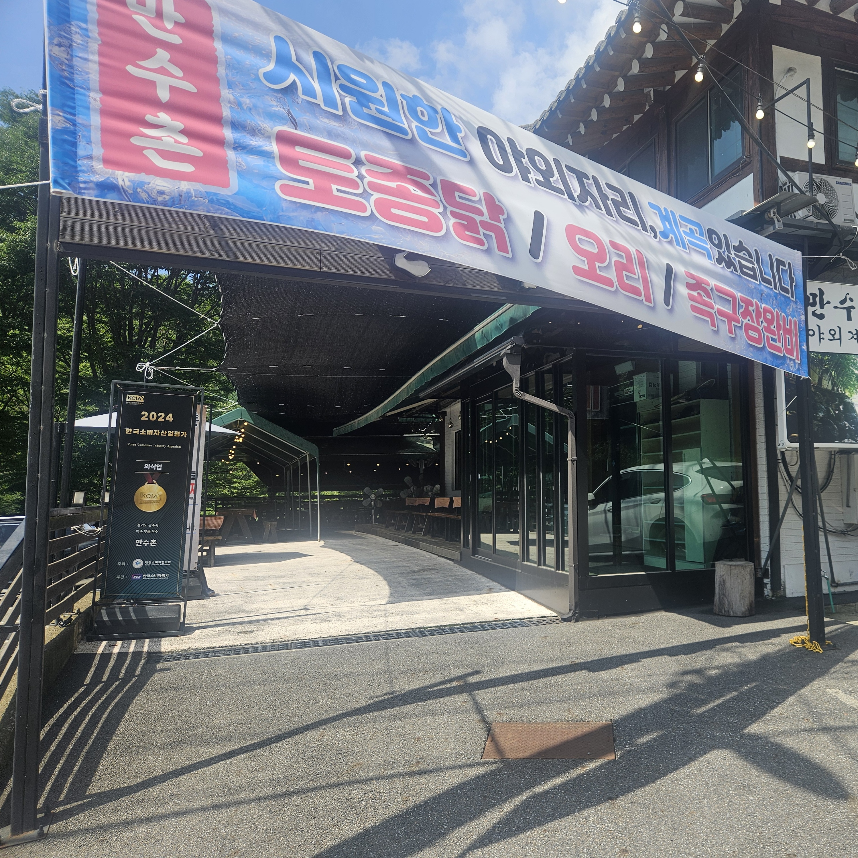 집에서 약 한 시간 정도 운전해서 도착한 남한산성 만수촌! 입구 쪽에도 주차장이 있고 공영주차장처럼 보이는 주차장도 옆에 따로 있더라고요.