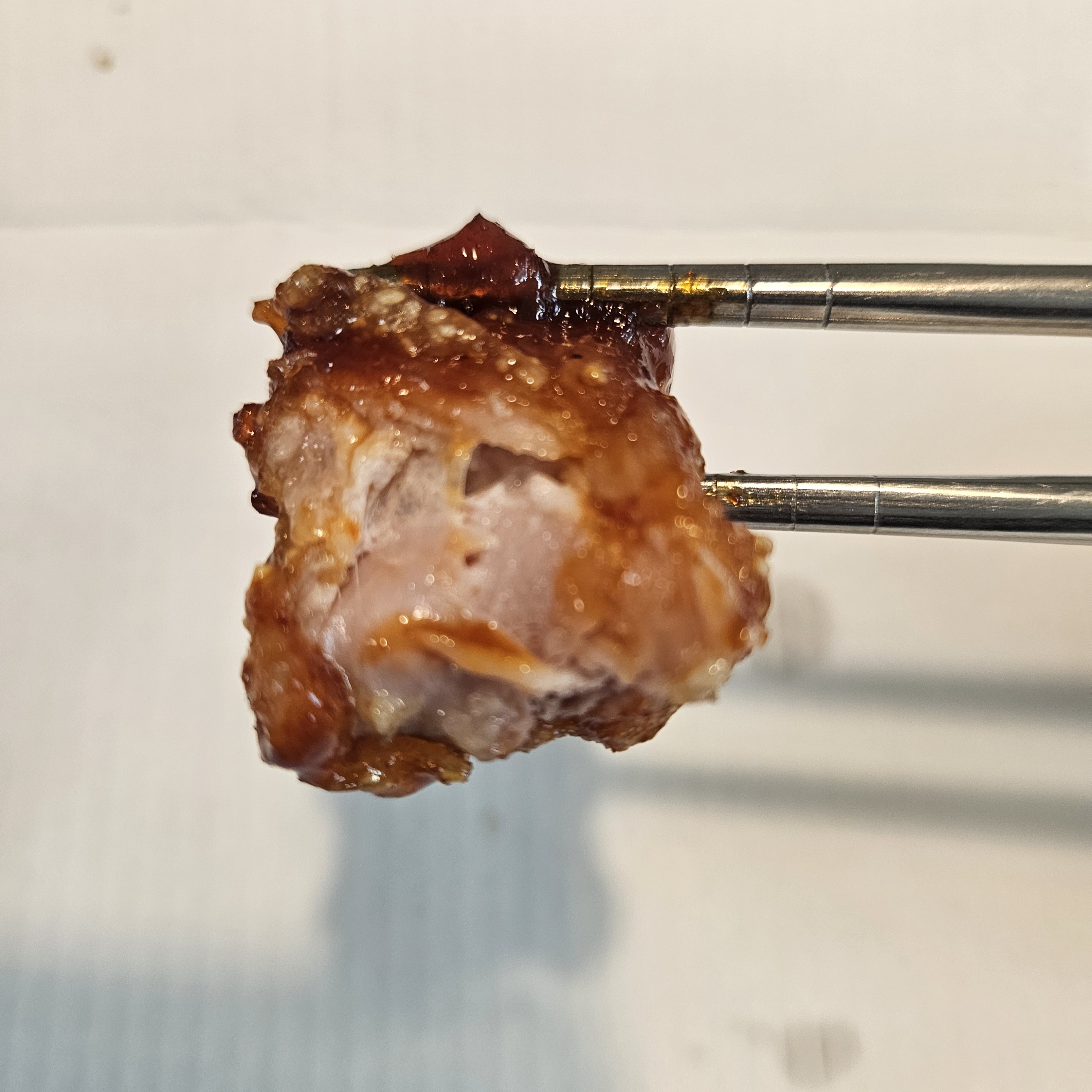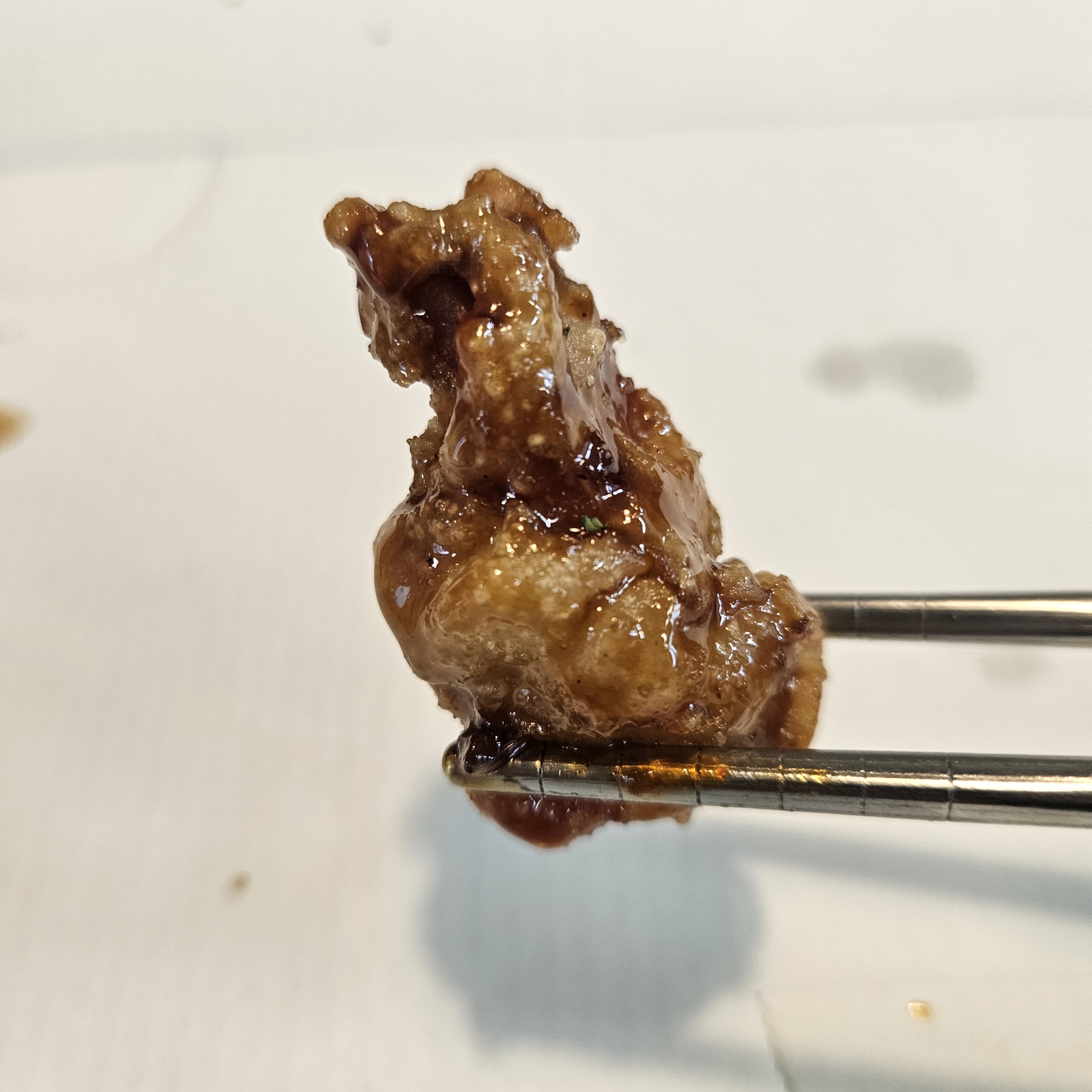 와이프가 당신은 매운 거 좋아하니 하나는 매운맛으로 시키라고 해서 주문한 스파이시 맛. 소스 자체가 엄청 빨갛고 매운 향이 확 올라오더라고요. 맛있는 매운맛이지만 불닭볶음면 소스보다는 조금 더 매웠고 아시는 분들이 있는지 모르겠지만 어린 시절 유행하던 소스 매운 단계를 고르던 닭꼬치 중 제일 매운맛 닭꼬치가 생각이 났답니다.
