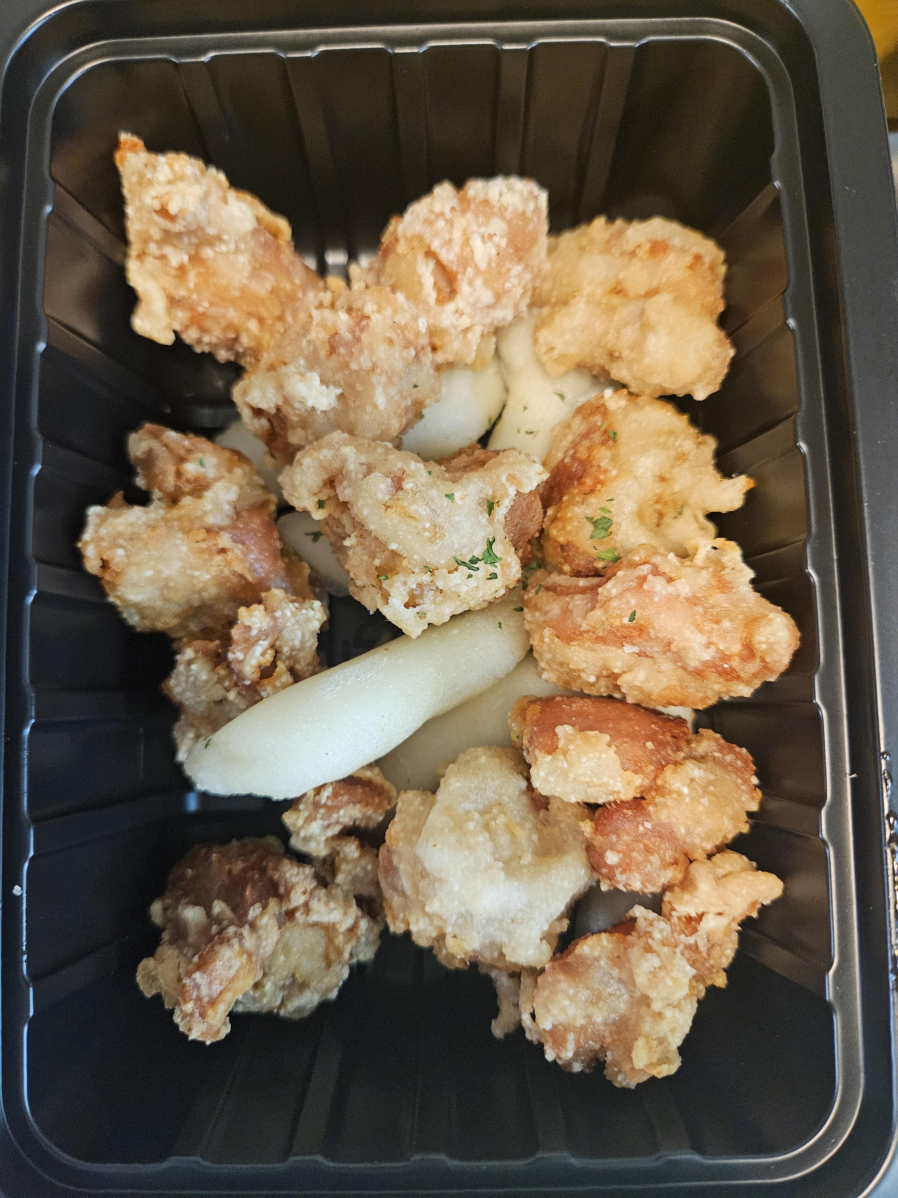 트리플 박스 양은 닭 한 마리 반 정도 된다고 쓰여있었던 걸로 기억하는데 떡이랑 같이 들어있어서 그런 건지 육안으론 제가 기대했던 양보단 많아 보이진 않더라고요.