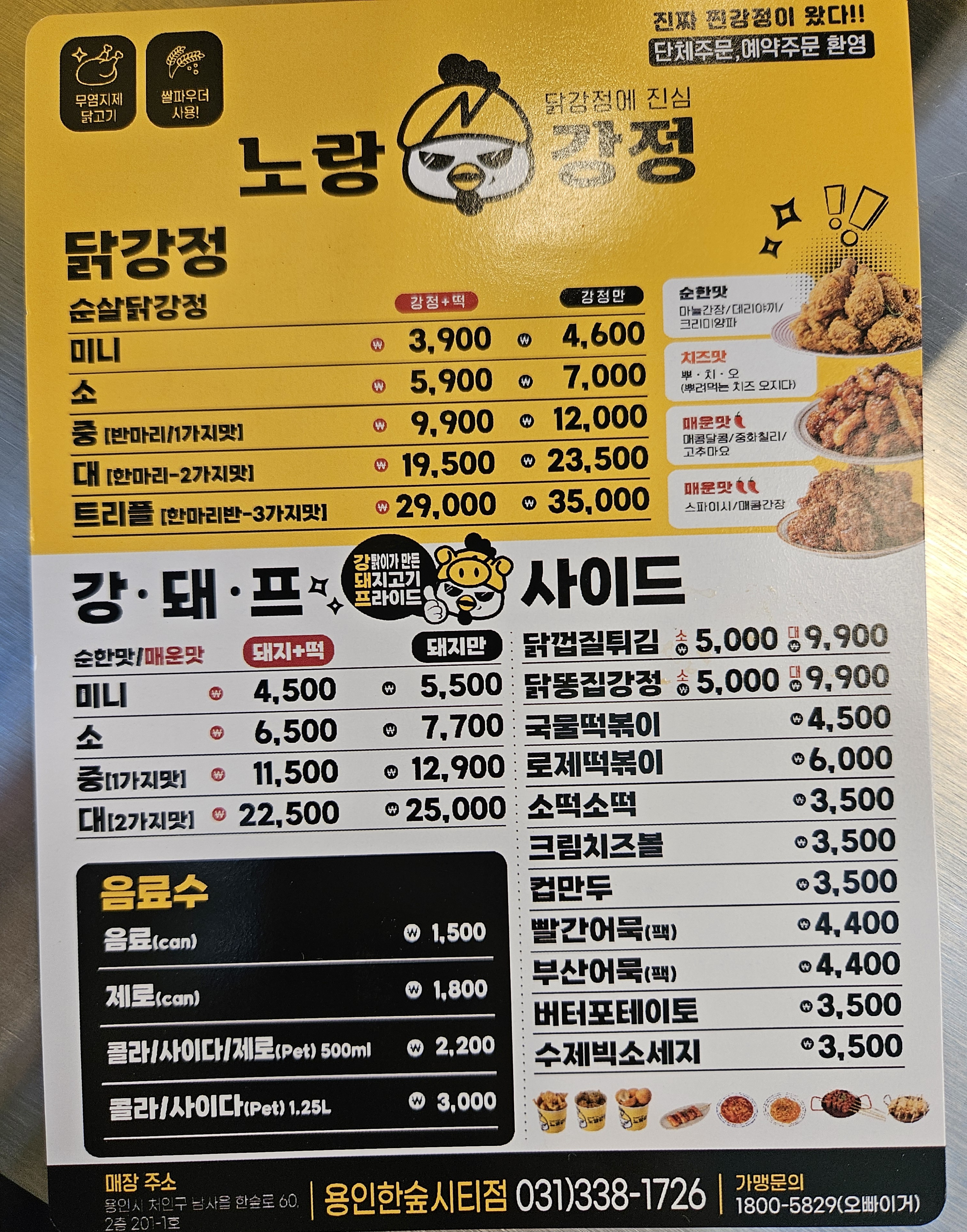 노랑강정 메뉴