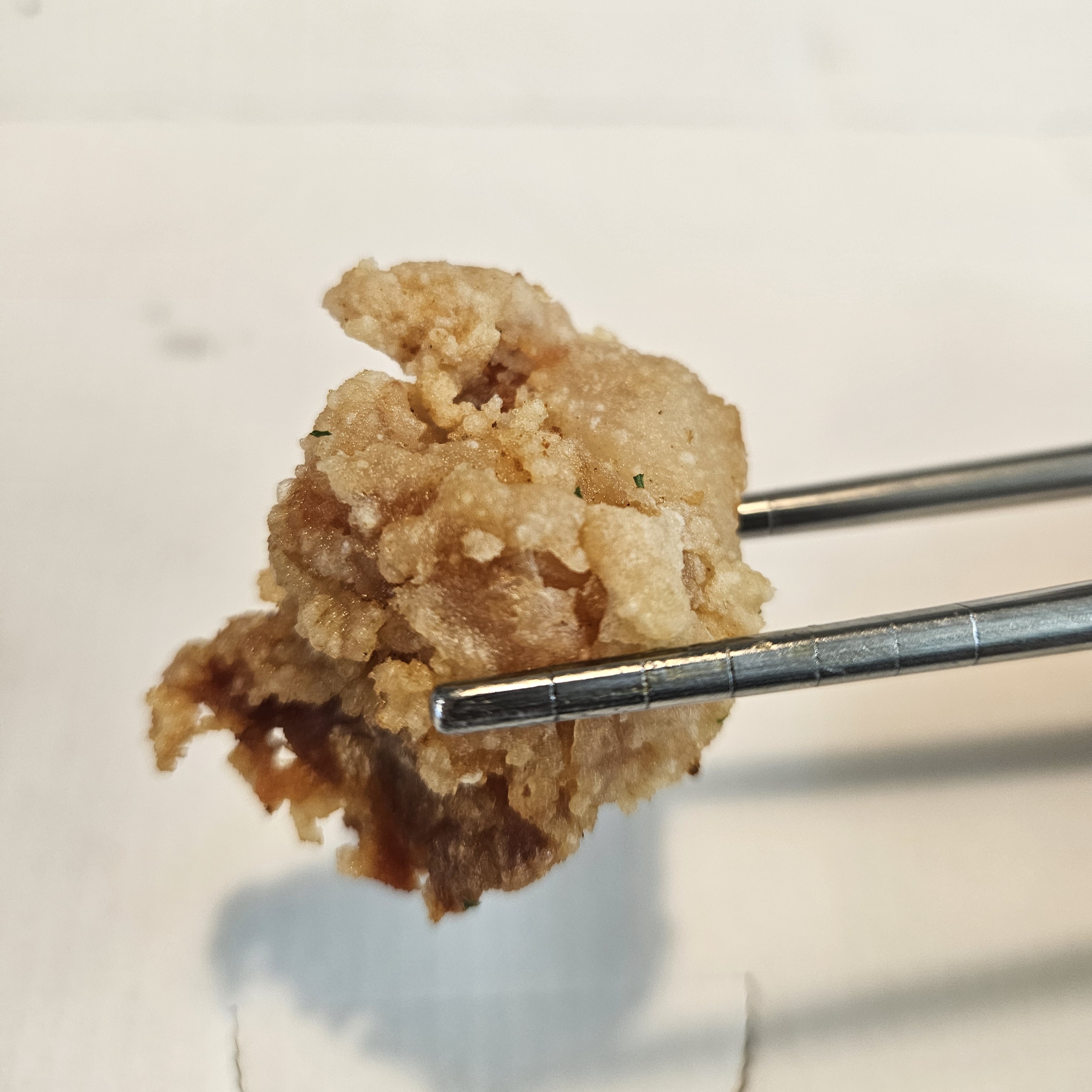 육안으로 양을 보고 조금 실망을 했지만 맛을 보았는데요. 우선 기본 닭강정부터 먹어보았답니다. 무염으로 만들었다고 해서 기대는 안 했는데 쌀가루로 만들어서 그런건지 식감이 바삭바삭거리면서 맛있더라고요. 진짜 무염으로 만든 게 맞나 싶을 정도로 간이 배어 있는 듯했고 진짜 무염 및 쌀가루로 만들었다면 조금이나마 건강하고 맛있게 먹을 수 있는 닭강정이라는 생각이 들었습니다.