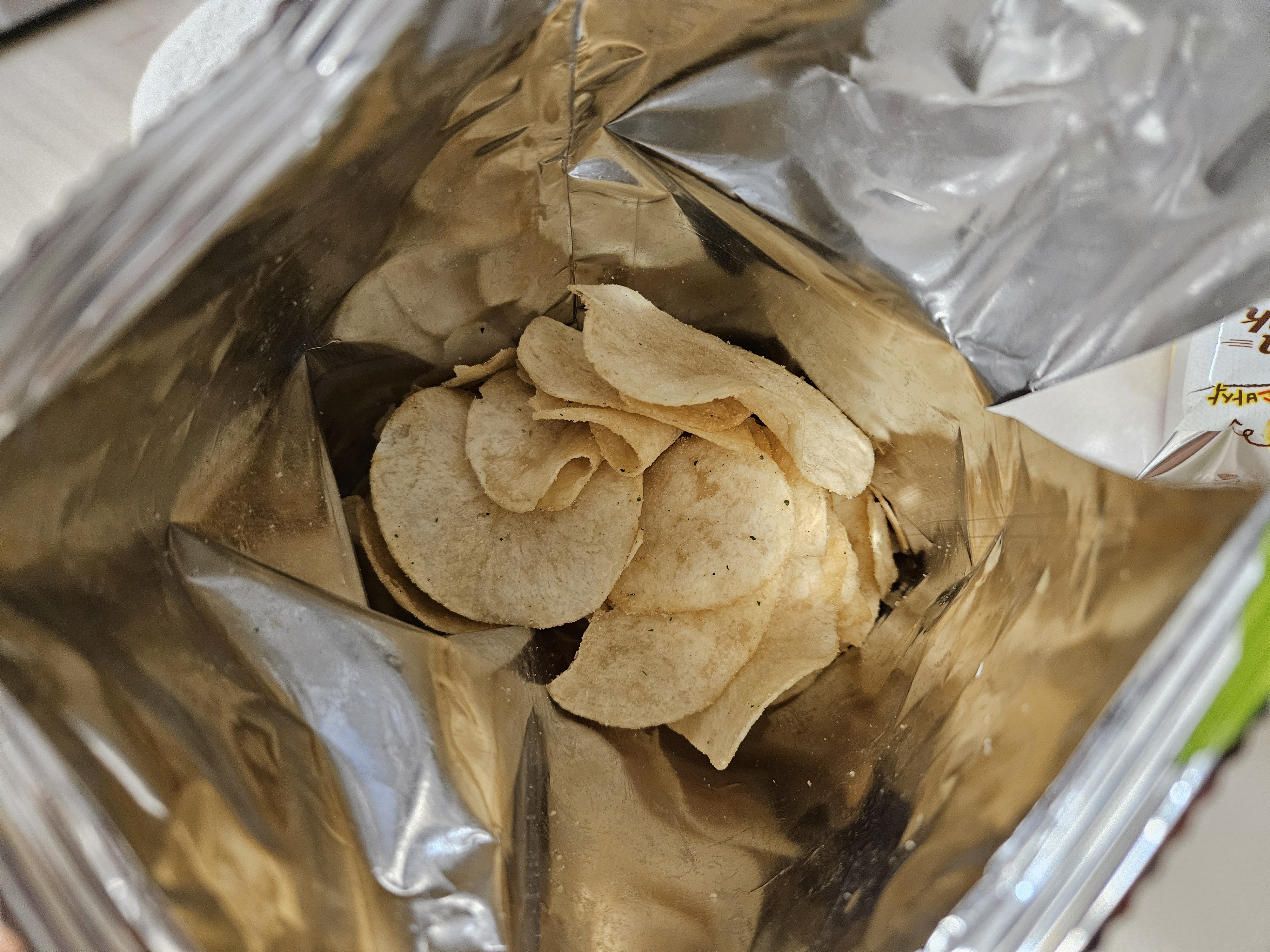 특히 포테토칩 특징인 얇고 바삭한 식감도 그대로 유지되어 더 좋았고. 한번 맛있다고 느껴진 순간 특유의 냄새조차 맛있게 느껴지면서 과자가 금방 없어지더라고요. 솔직히 먹태깡만큼은 아니었지만 먹을만했답니다.