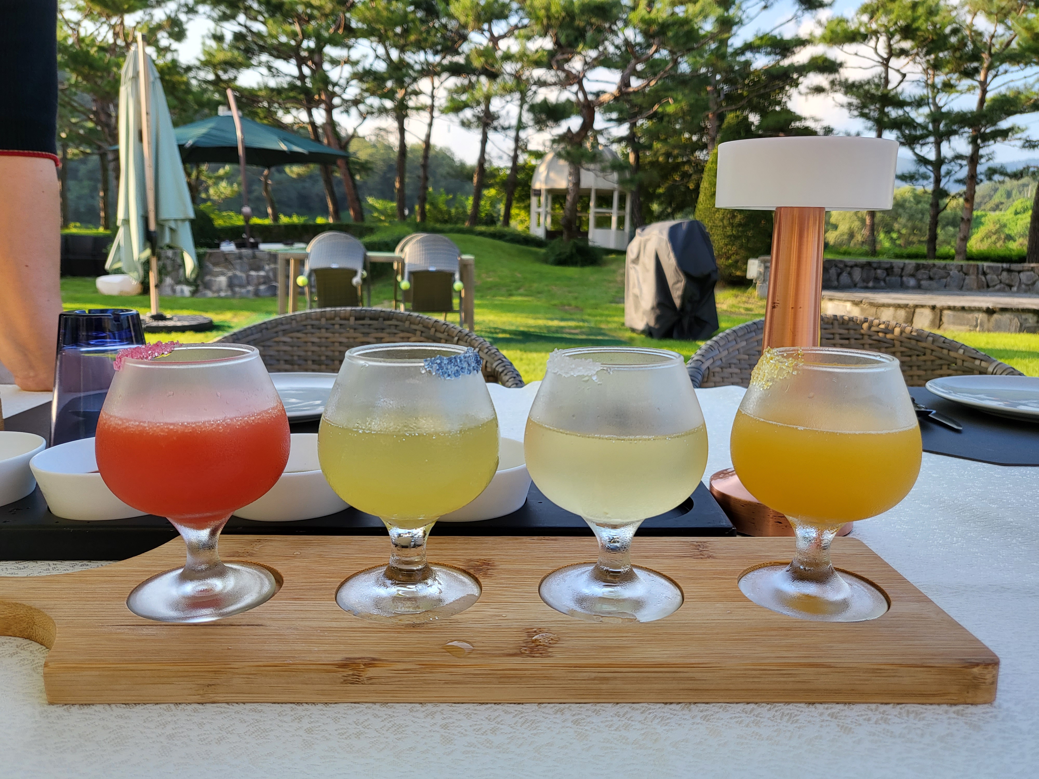 그리고 웰컴드링크로 샴페인 4잔과 고기 찍어먹을 4가지 종류의 소스까지