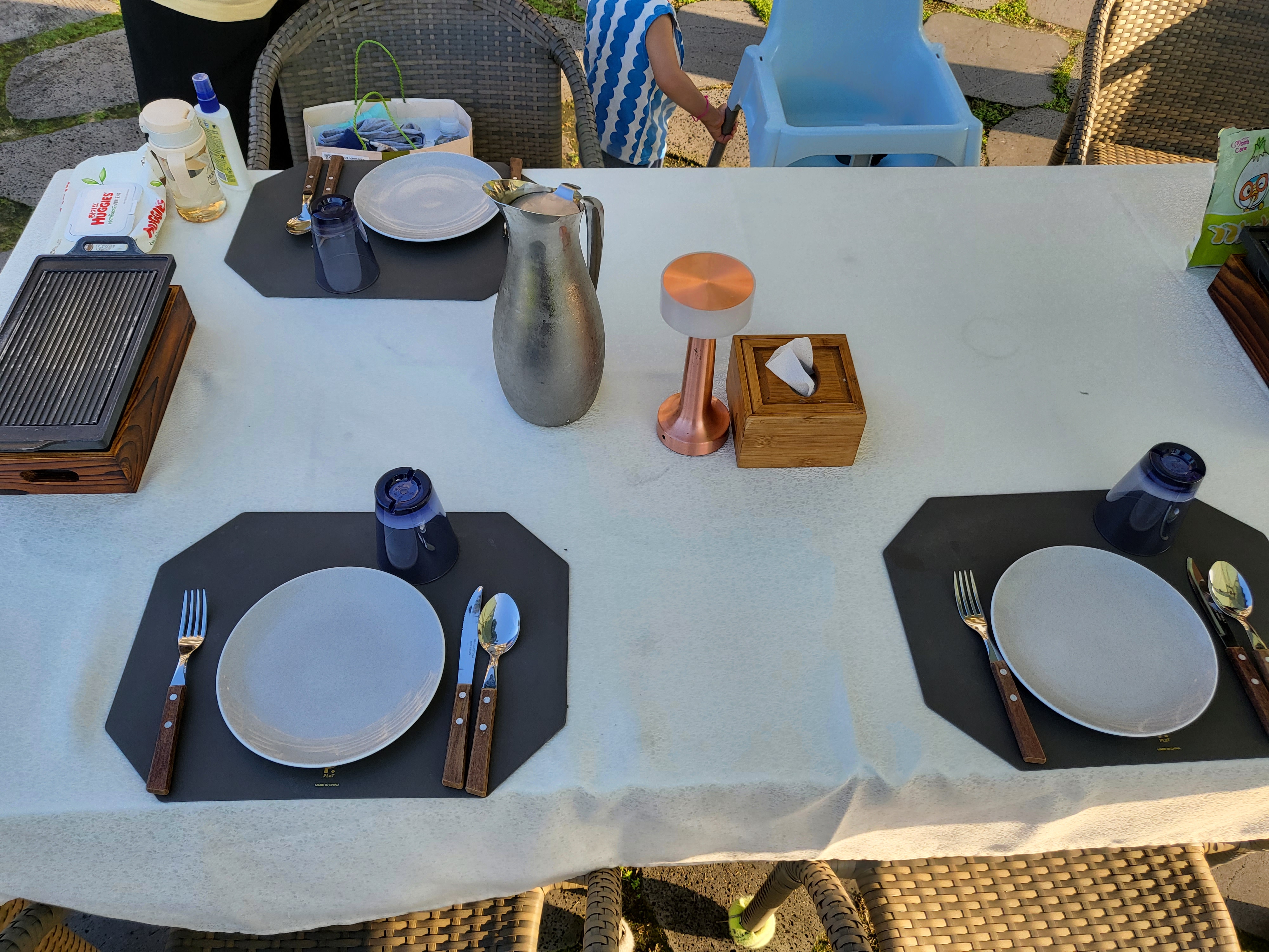 미리 전화해서 언제 입장하실 건지 여쭤본 이유가 매니저님들이 자리 세팅 및 음식을 바로 가져다 주기 위한 연락이었나 봅니다. 입장하자마자 바로 세팅되더라고요. 그리고 마지막으로 그릴 사용하는 방법도 진철 하게 안내해주었습니다.