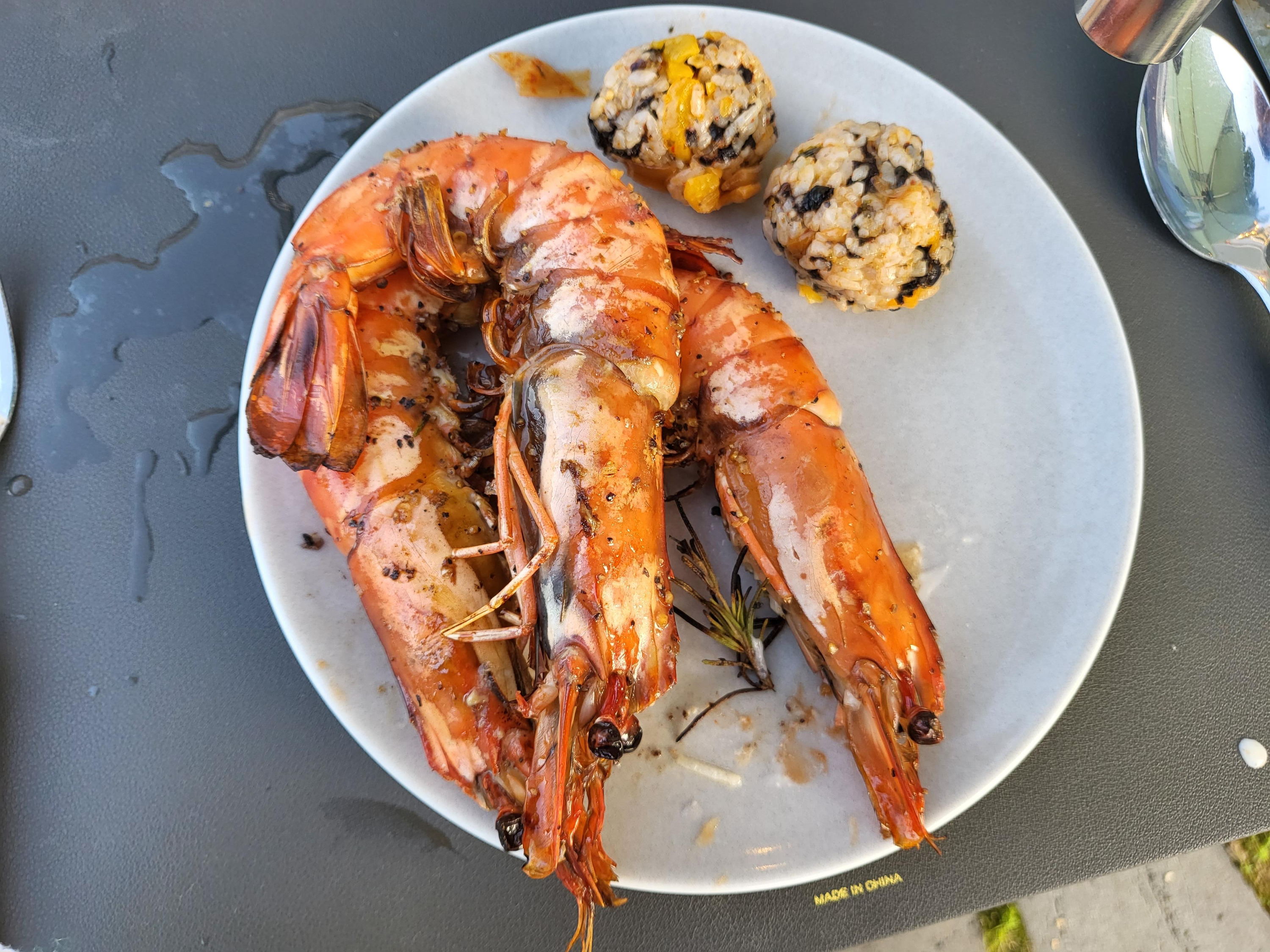 그리고 아들이 꼬치도 먹고 싶었는지 계속 손가락질하면서 저것도 먹고 싶다고 하길래 꼬치도 구워주고 마지막으로 왕새우도 구워 먹었습니다.