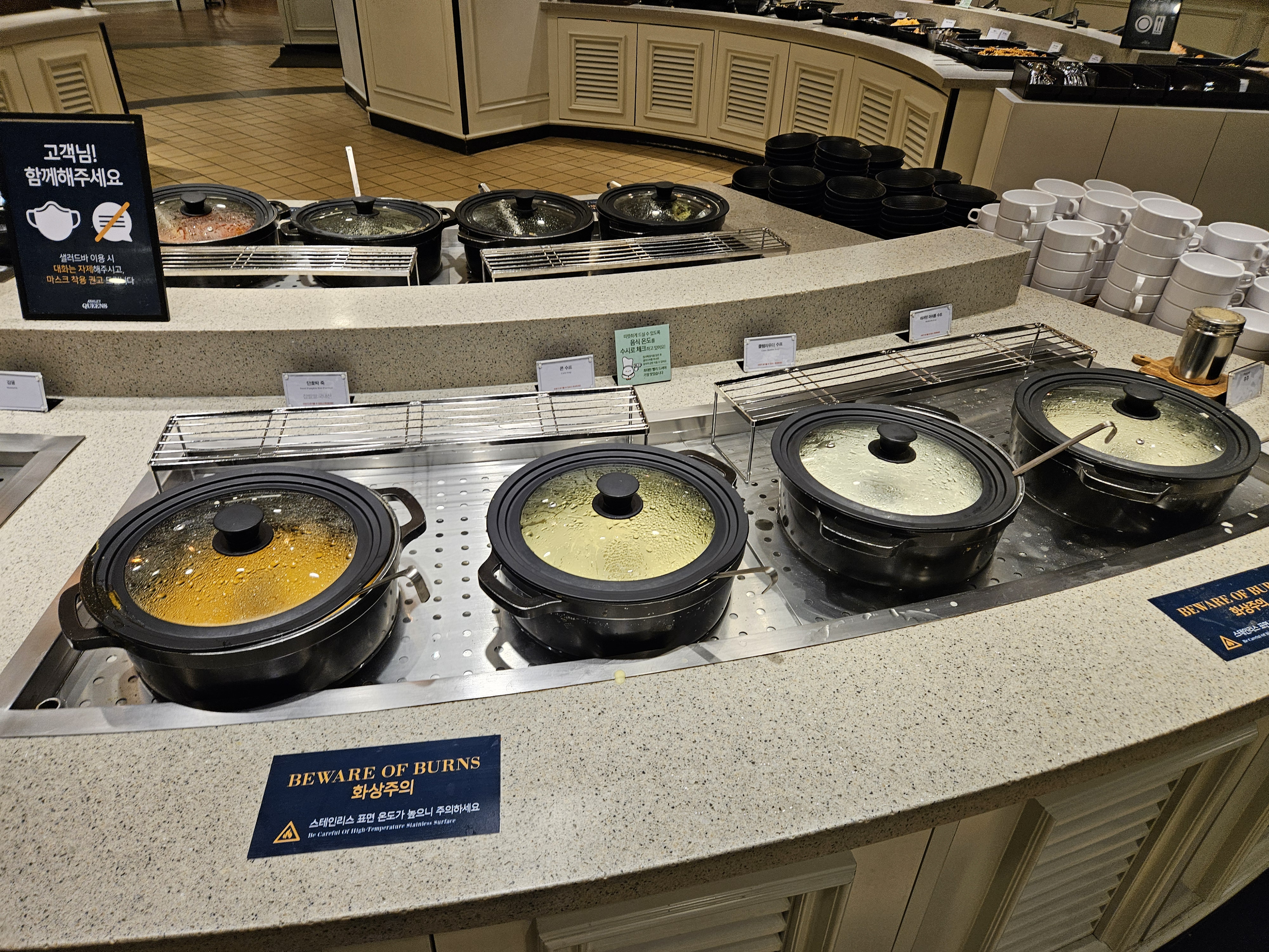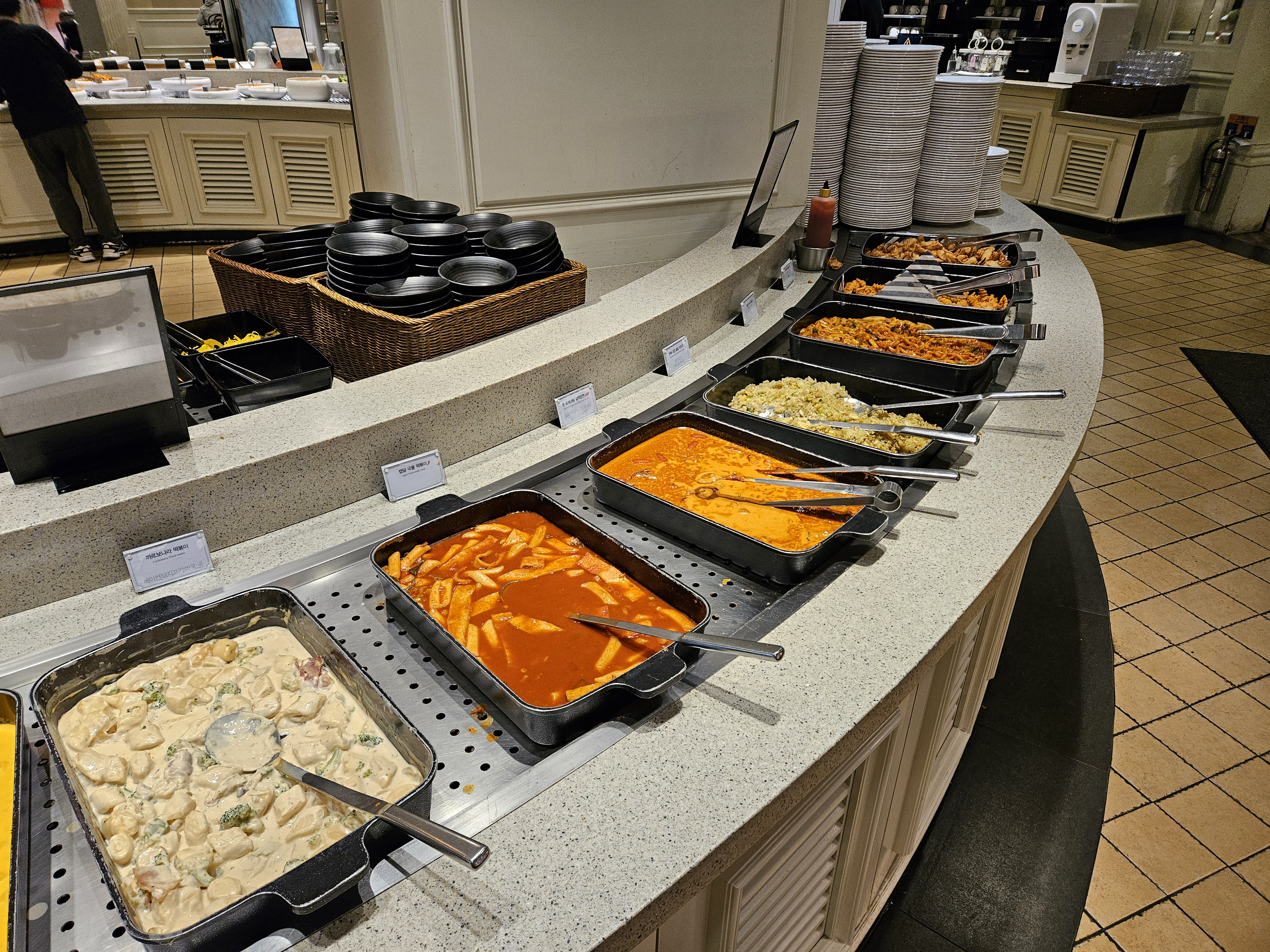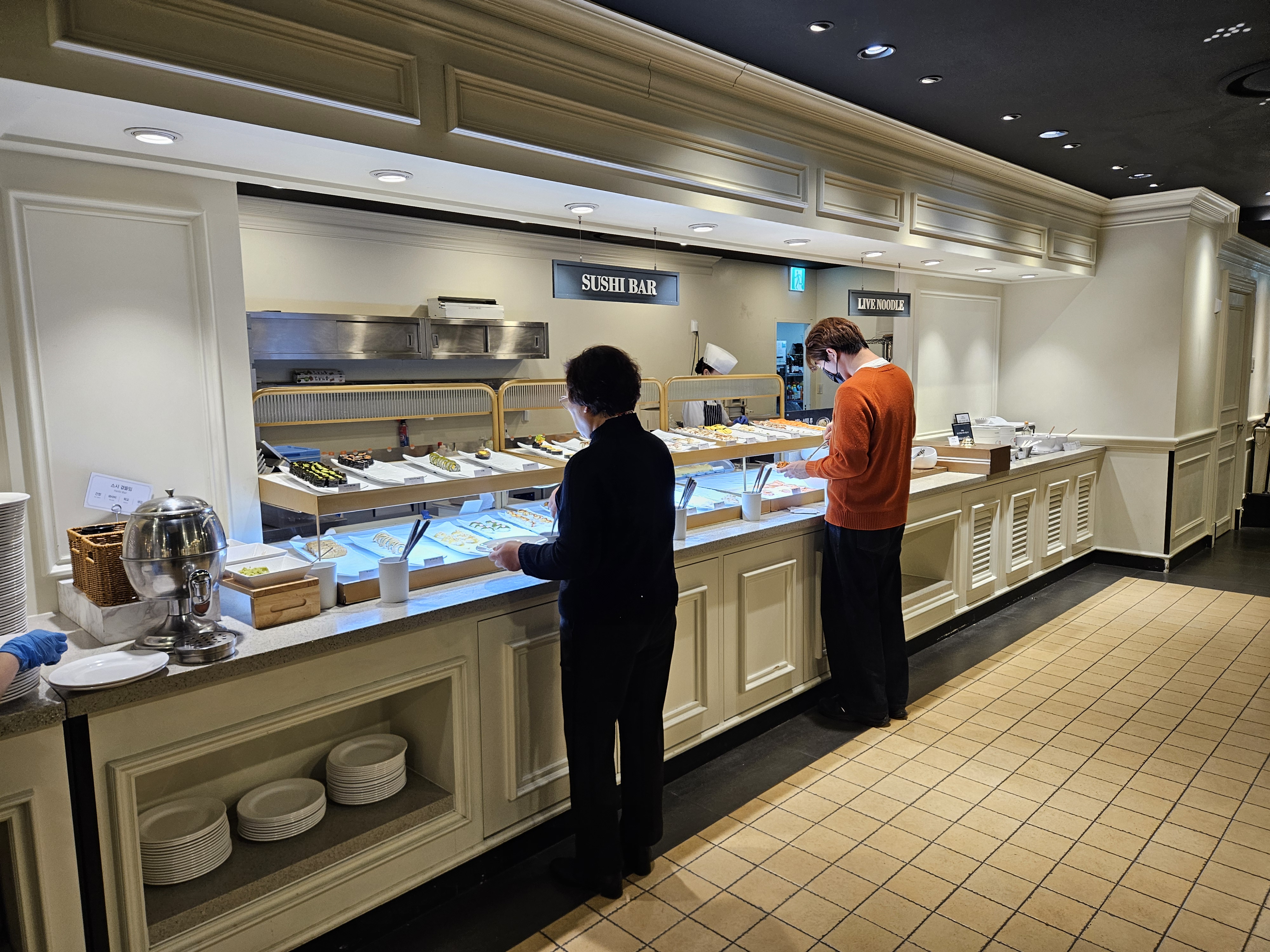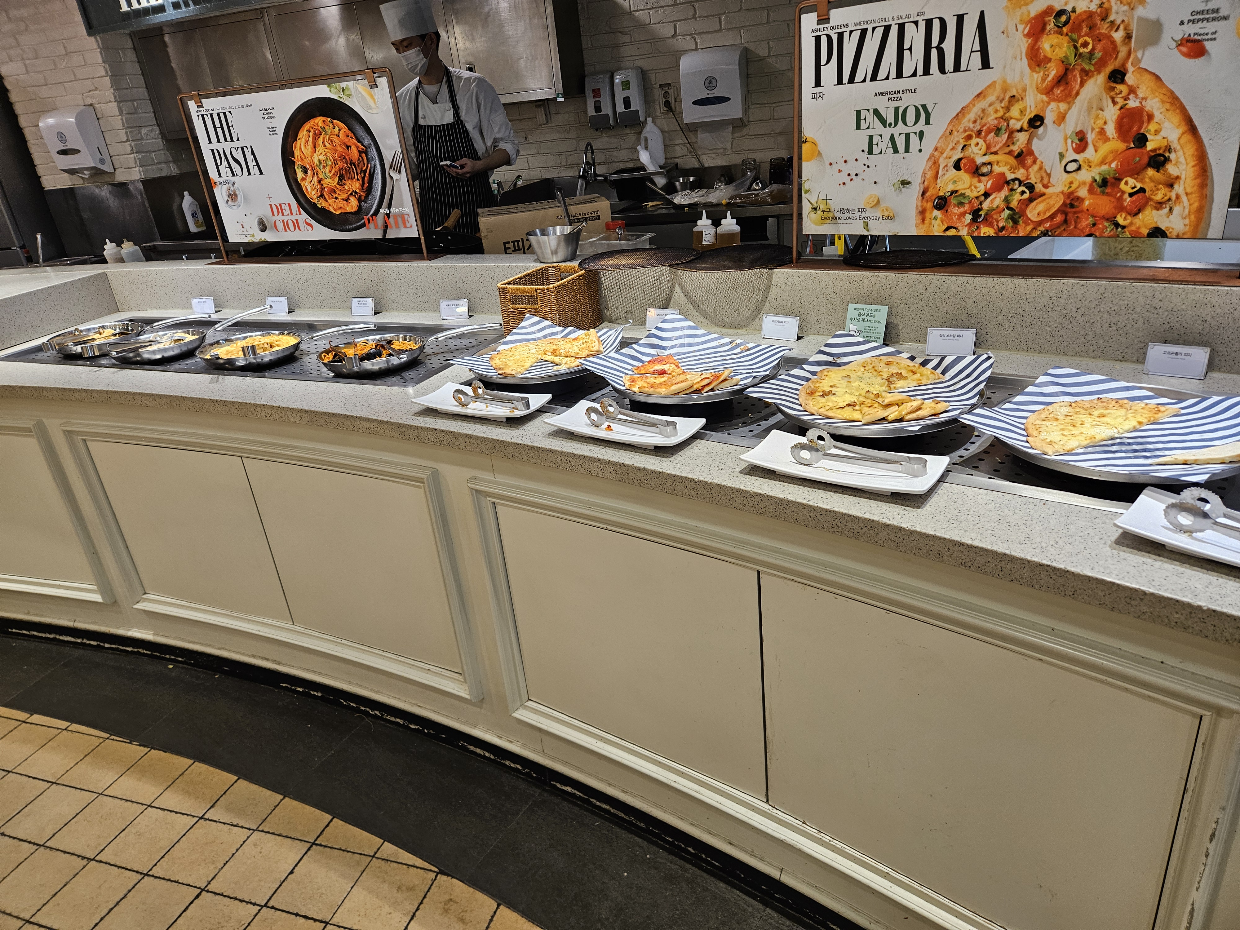 먹성이 좋은 저는 뷔페만 방문하면 어찌나 눈이 돌아가는지 와이프가 오자고 했지만 저도 조금 땡기지않았나 싶네요. 역시 다양한 메뉴들을 먹을 수 있다는 생각에 기분이 좋아지더라고요. 냅킨이랑 수저를 챙기고 본격적으로 쭉 둘러봤습니다.