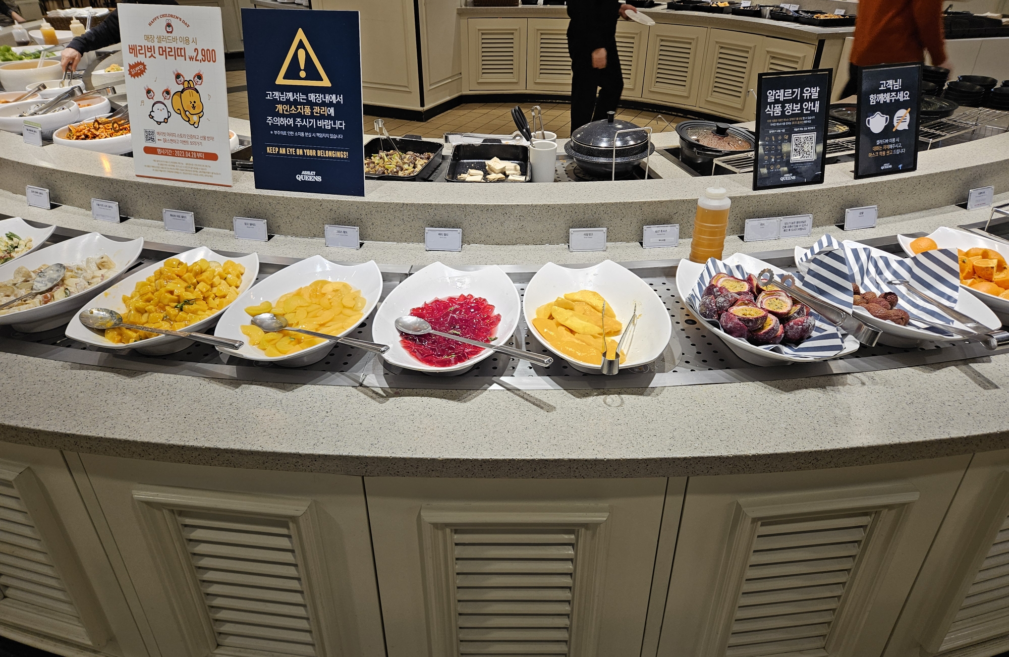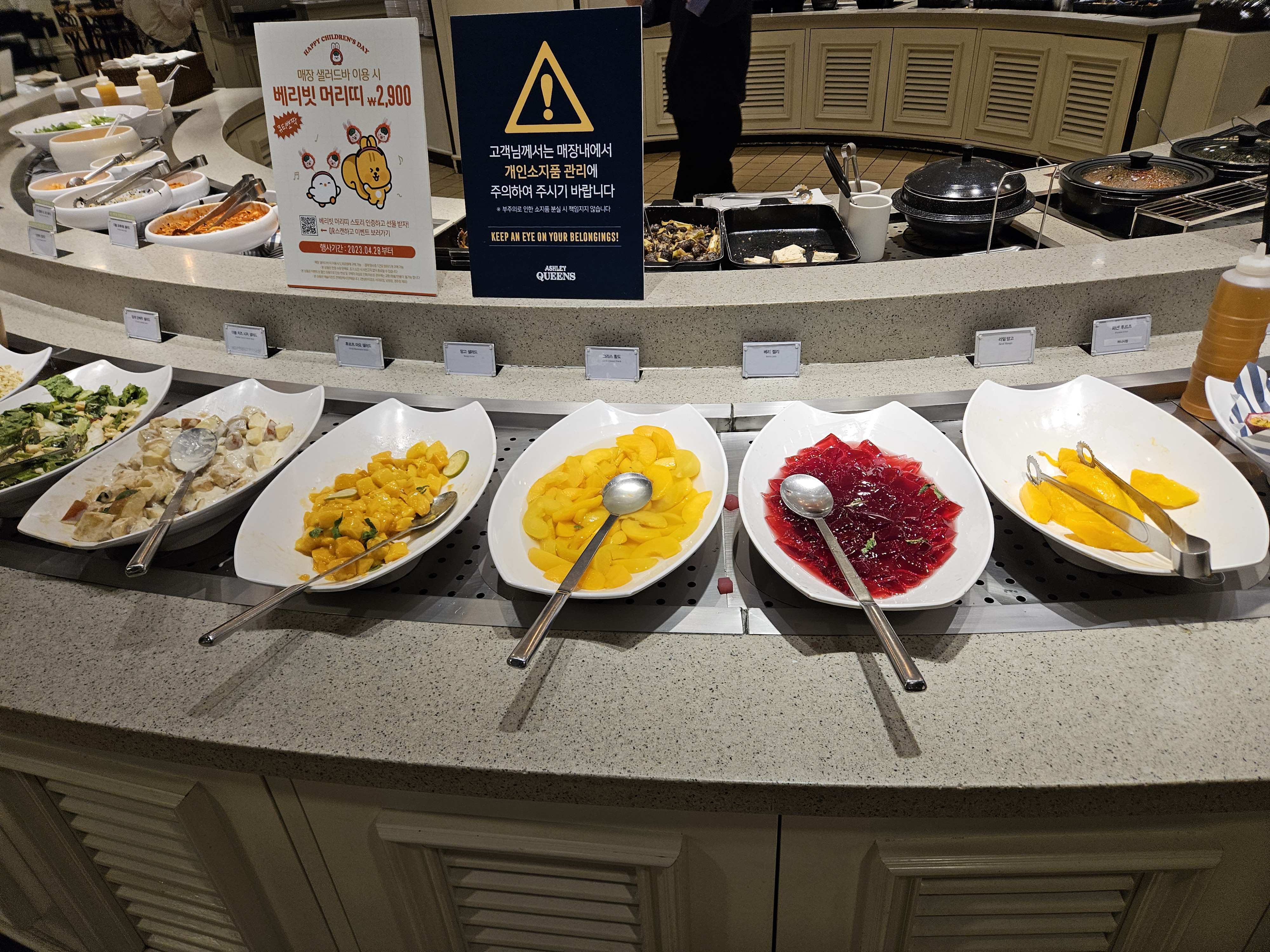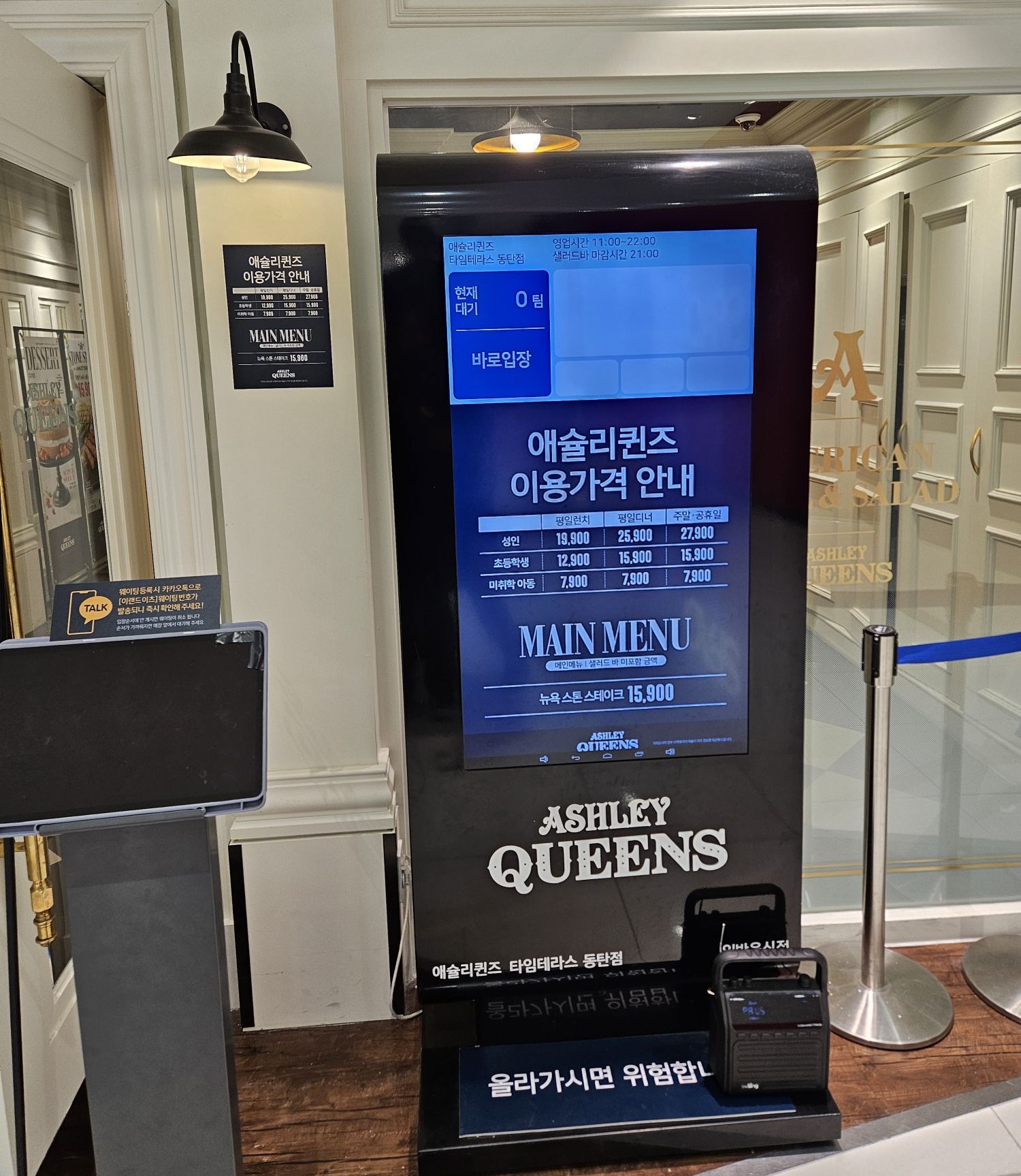 그렇게 애슐리퀸즈 타임테라스 동탄점에 오랜만에 방문했는데요. 평소 주말에 방문했을 때에는 입구 앞에 있는 웨이팅기계로 웨이팅을 하고 기다렸어야 했는데 평일이라서 그런지 웨이팅을 하지 않고도 들어갈 수 있었답니다.