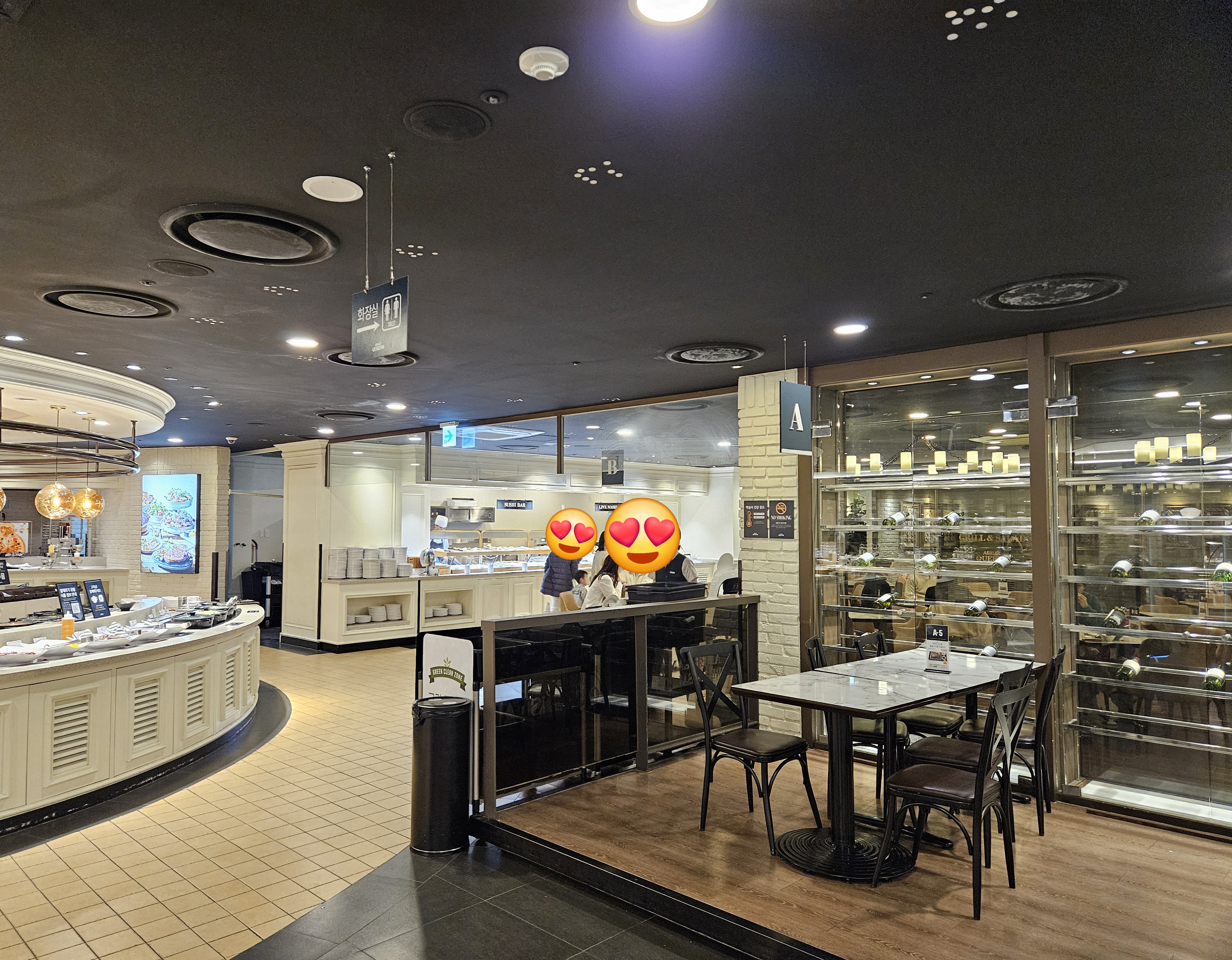 생긴 지 몇 년 안 돼서 그런지 아직도 내부가 깨끗하고 인테리어도 역시 방문한 애슐리 중 제일 좋더라고요. 그리고 각 테이블에는 A, B, C, D 영어 및 숫자가 적혀있는데요. 그렇게 자리를 찾아가 먹을 준비를 했답니다.