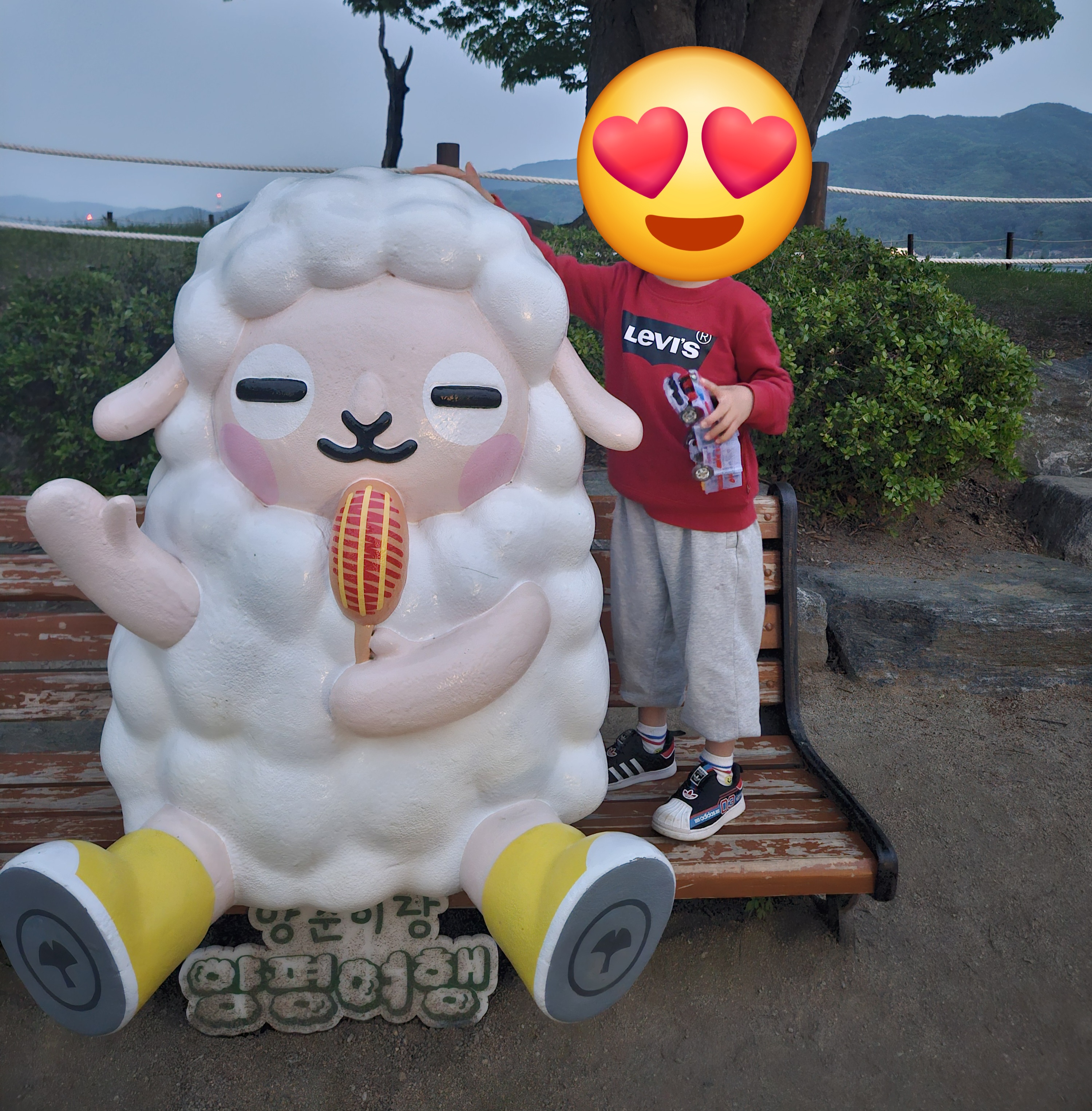 배가 너무 불러 두물머리길을 산책을 했는데요. 아들은 장난감 가지고 와서 재미있게 놀고 2년 전에는 없었던 걸로 기억하는 핫도그 들고 있는 양춘이랑 사진도 찍었답니다.