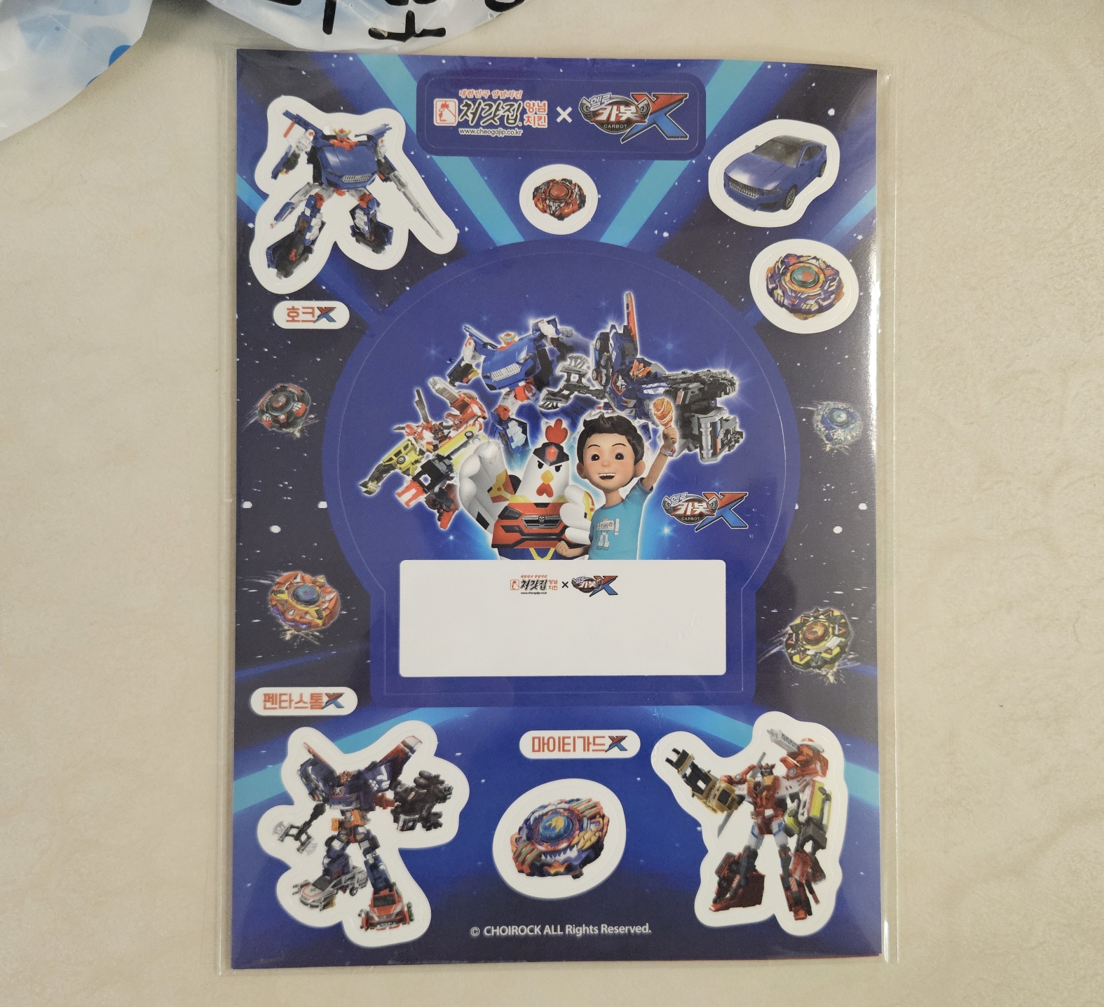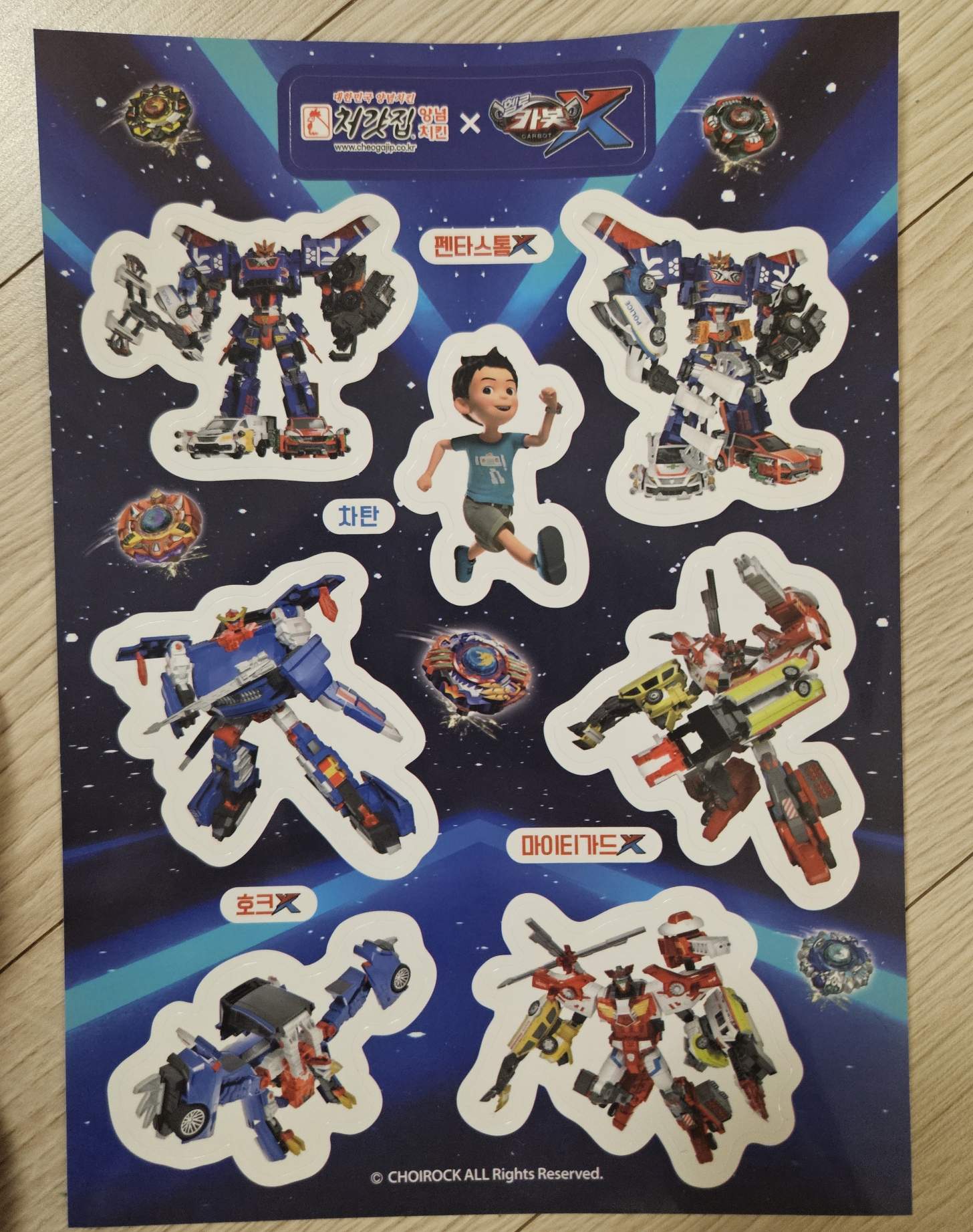 그렇게 마이티가드X, 호크X, 펜타스톰X 스티커를 받고 좋아하는 아들. 바로 개봉하자마자 스티커 붙이기 놀이를 하는데 어찌나 귀엽던지.