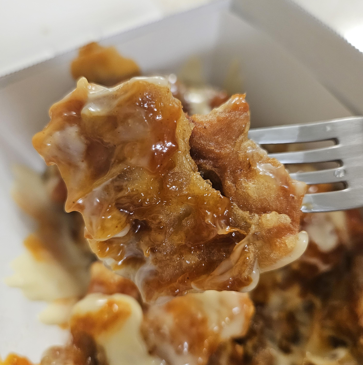 달콤한 양념소스에 마요네즈소스가 듬뿍 뿌려져 있더라고요. 한입 먹어보니 어찌나 달달하던지 엄청 맛있었는데요.