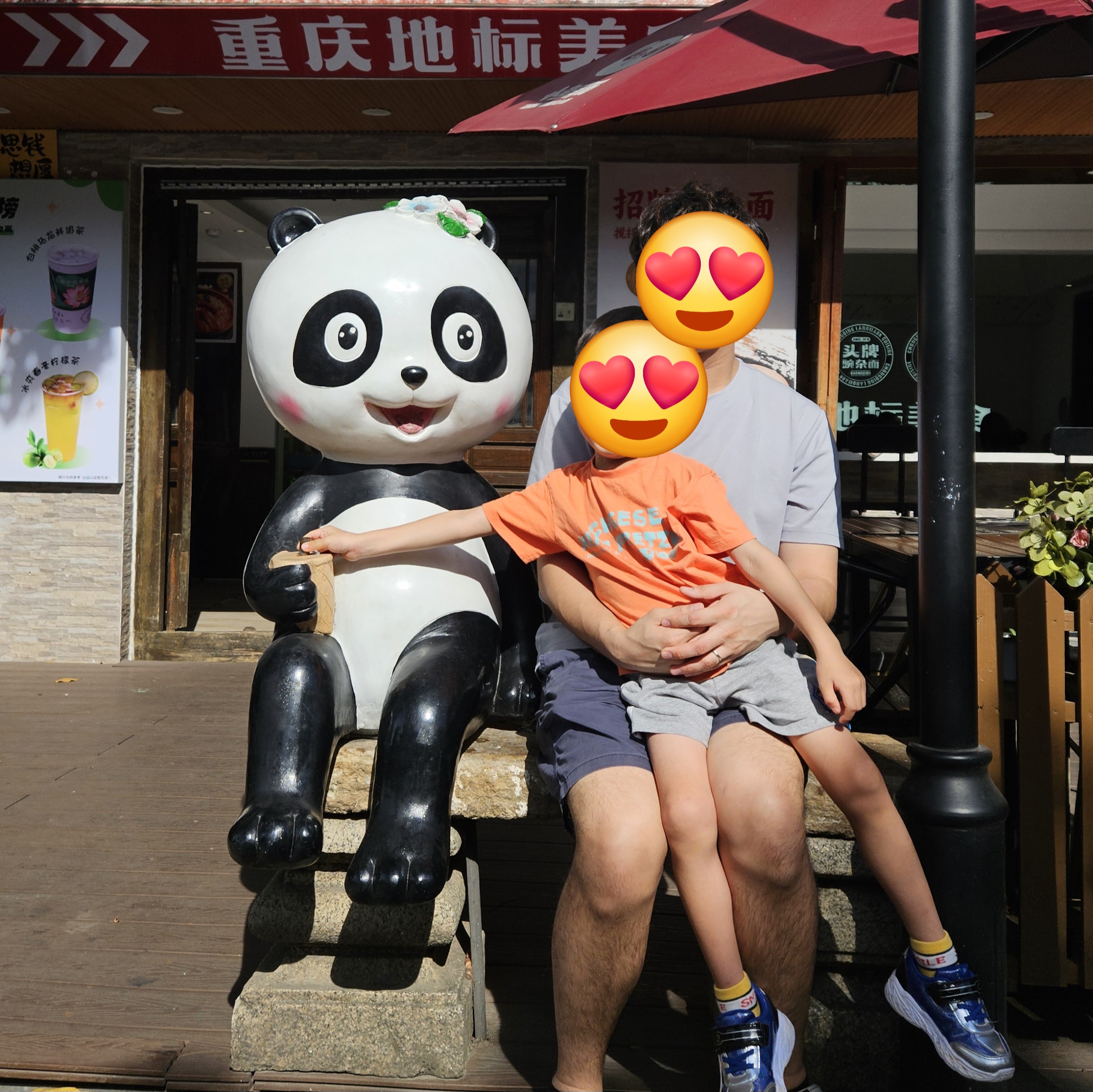 우리나라로 치면 약간 인사동 같은 느낌이 드는 전통마을이었습니다. 골목 중간중간 중국 사극에서 본 듯한 전통가옥들이 있었는데 포근하고 예쁜 분위기였습니다. 구경하다가 한 하게 앞에 팬더 동상이 놓인 걸 발견한 아들이 사진을 찍고 싶다고해 함게 사진 한장도 찍어보았답니다.
