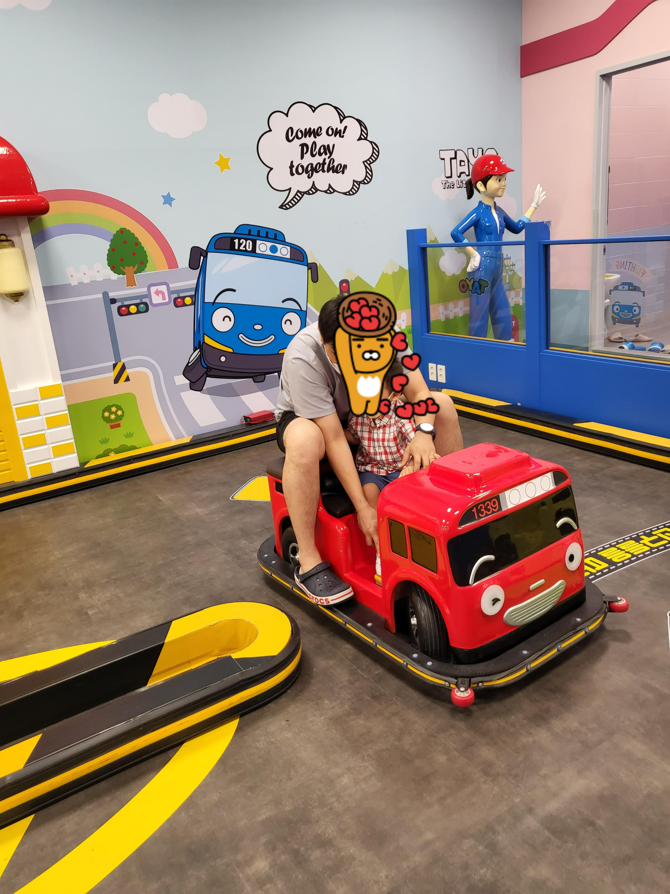 북수원점 타요키즈카페에도 전동미니자동차가 있는데요. 여기도 정각에 운영을 하고 약 30분정도는 충전을 해놓는것 같았습니다. 탈것을 좋아하는 아들을 위해 전동미니자동차도 같이 타주었는데 저도 재밌고 아들도 재미있어했답니다.