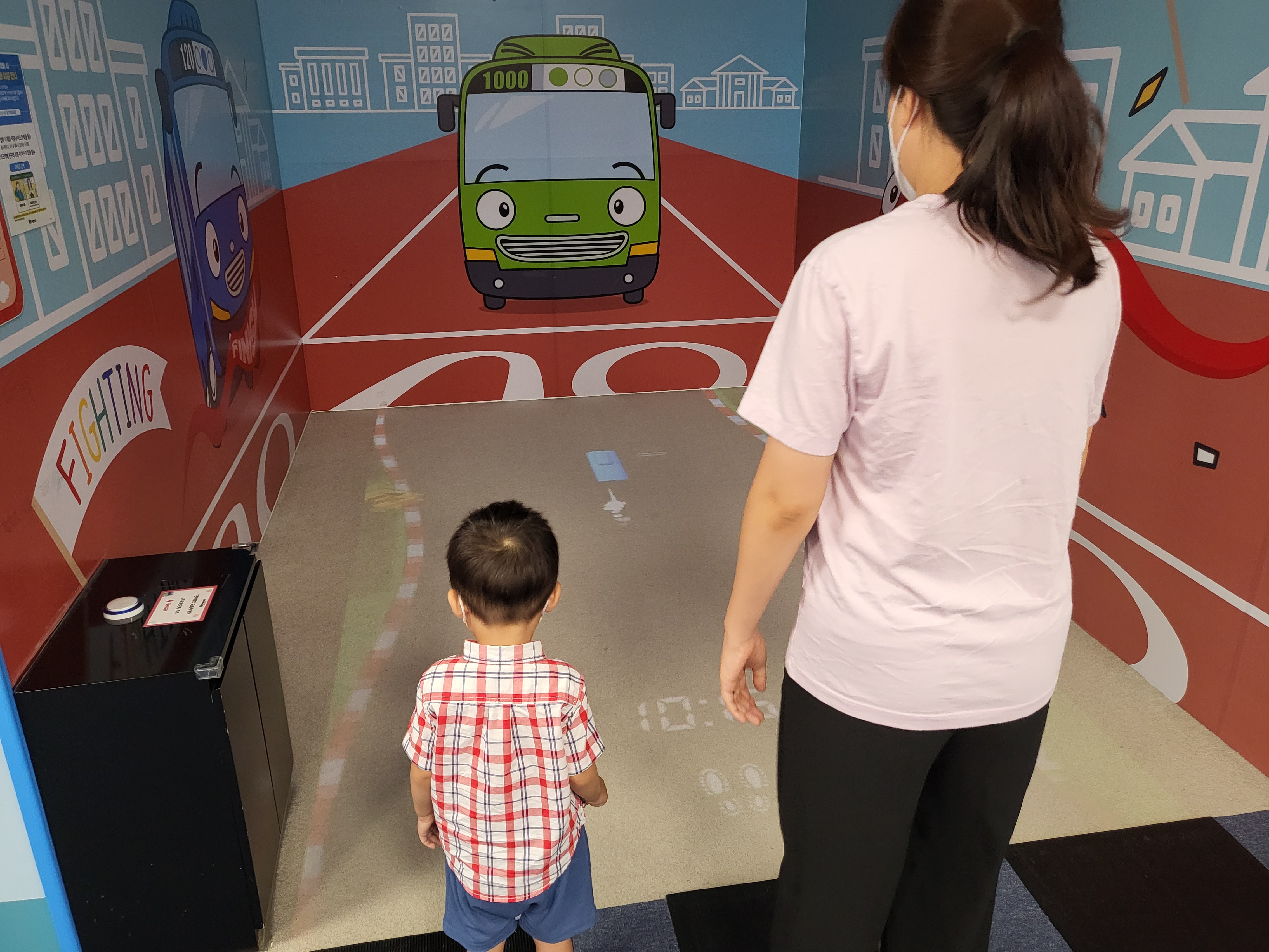 북수원 타요키즈카페에는 달려!! 라는 게임이 있었는데요. 다른 어린 아이들이 검정색 발판에서 막 달리니깐 스크린으로 타요친구들이 달리기시합을 하는데 재미있어 보이더라고요. 그래서 아들이랑 와이프 불러서 한번 해보았습니다. 짧지만 생각보다 재미있더라고요.