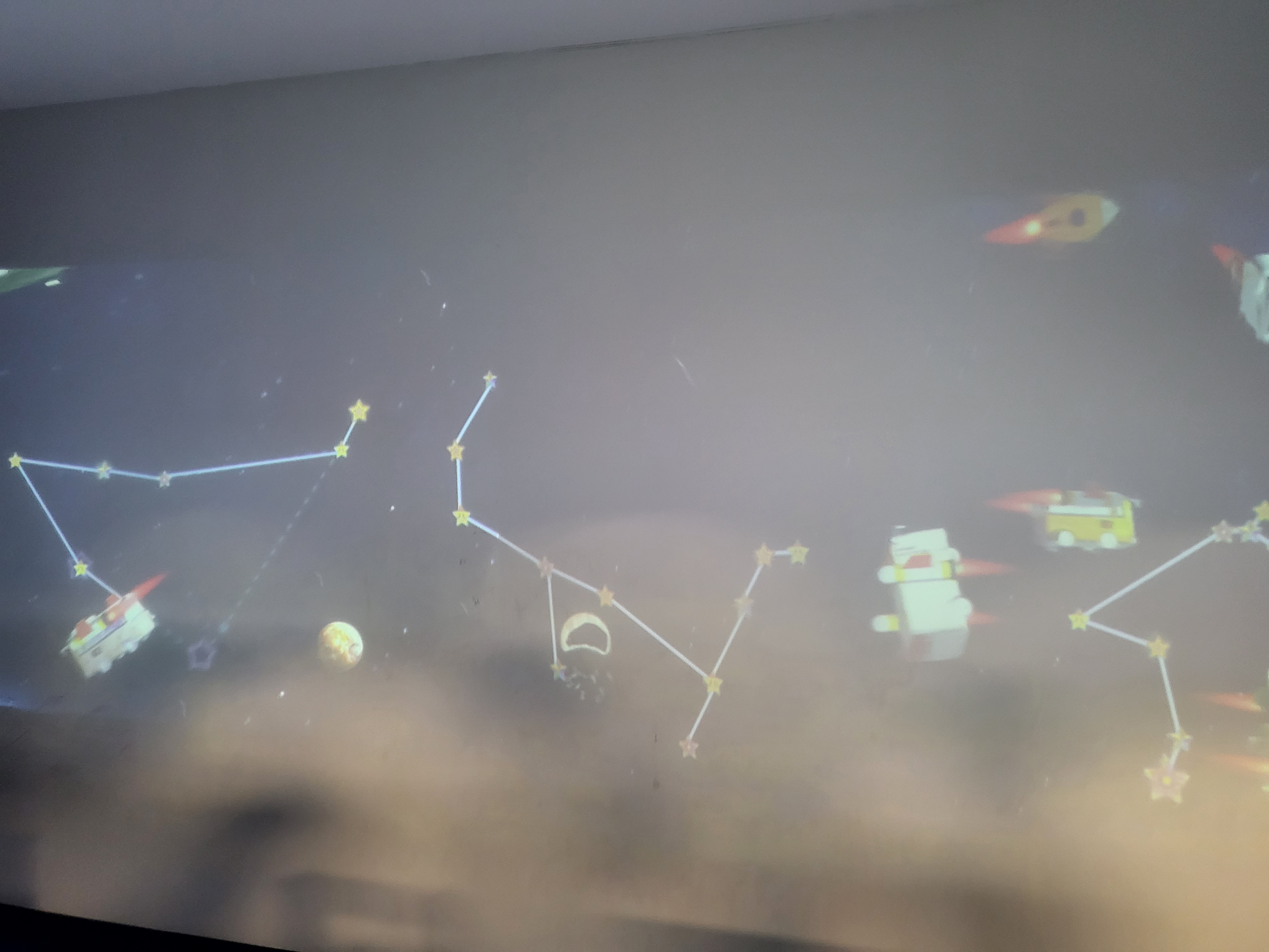 마지막으로 그림그리기가 있었는데요. 여기는 아이들이 그림을 스캔하면 스크린에 아이들이 그린 그림들이 생성되어 우주를 날아다니고 있었습니다. 그리고 당시 그림을 그리고 나서 카운터에 가져다 주면 젤리를 주는 이벤트도 참여했습니다. 저희집 아들이 젤리를 좋아하거든요.