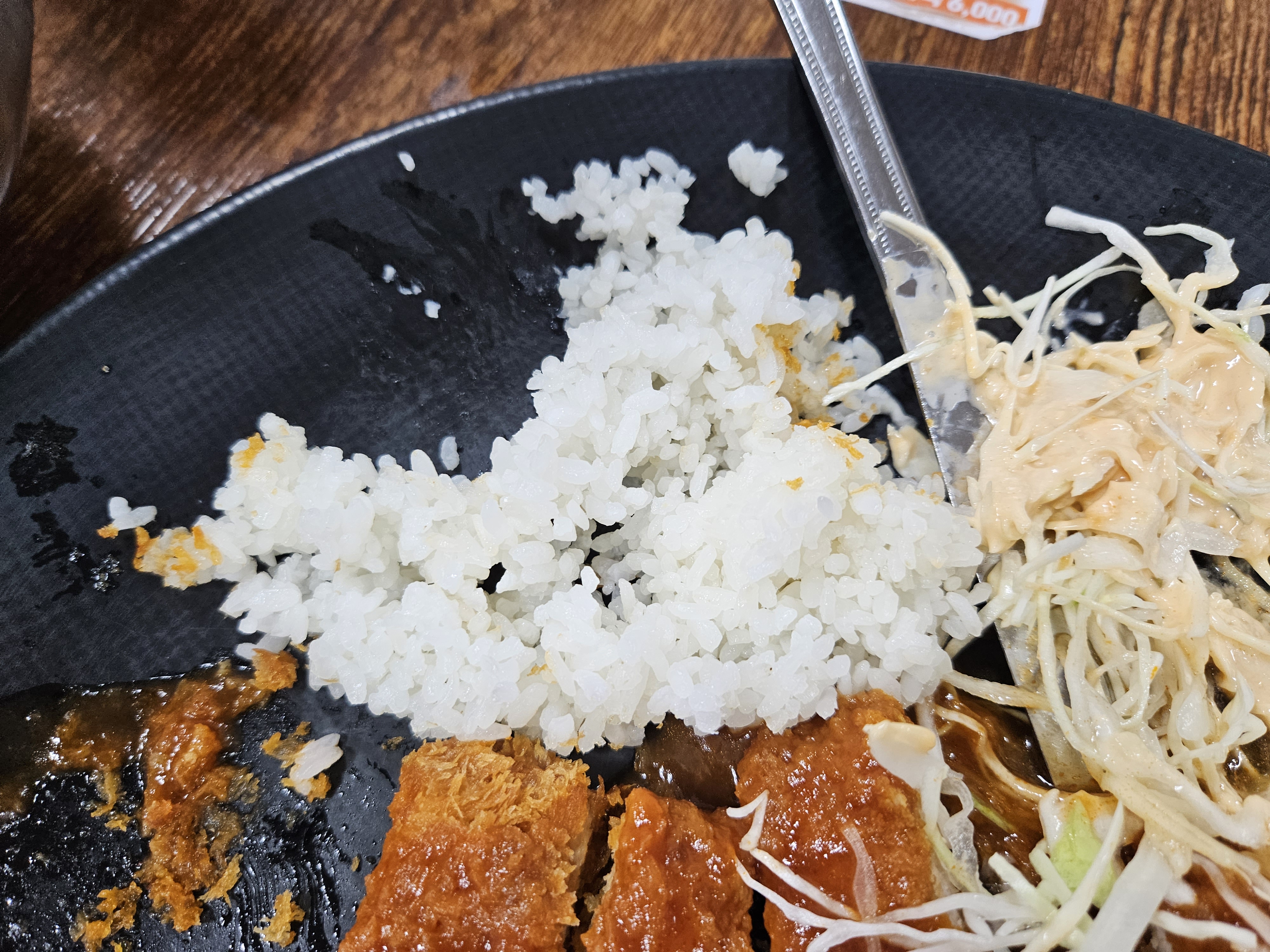 그리고 왕돈가스는 정말 그냥 무난했습니다. 소스를 뿌려 나와서 그런지 바삭한 느낌이 조금 덜했고 맛 또한 평범했습니다. 그리고 같이 나온 밥이 설익어서 조금 딱딱하더라고요. 그래서 결국 밥은 남겼답니다.