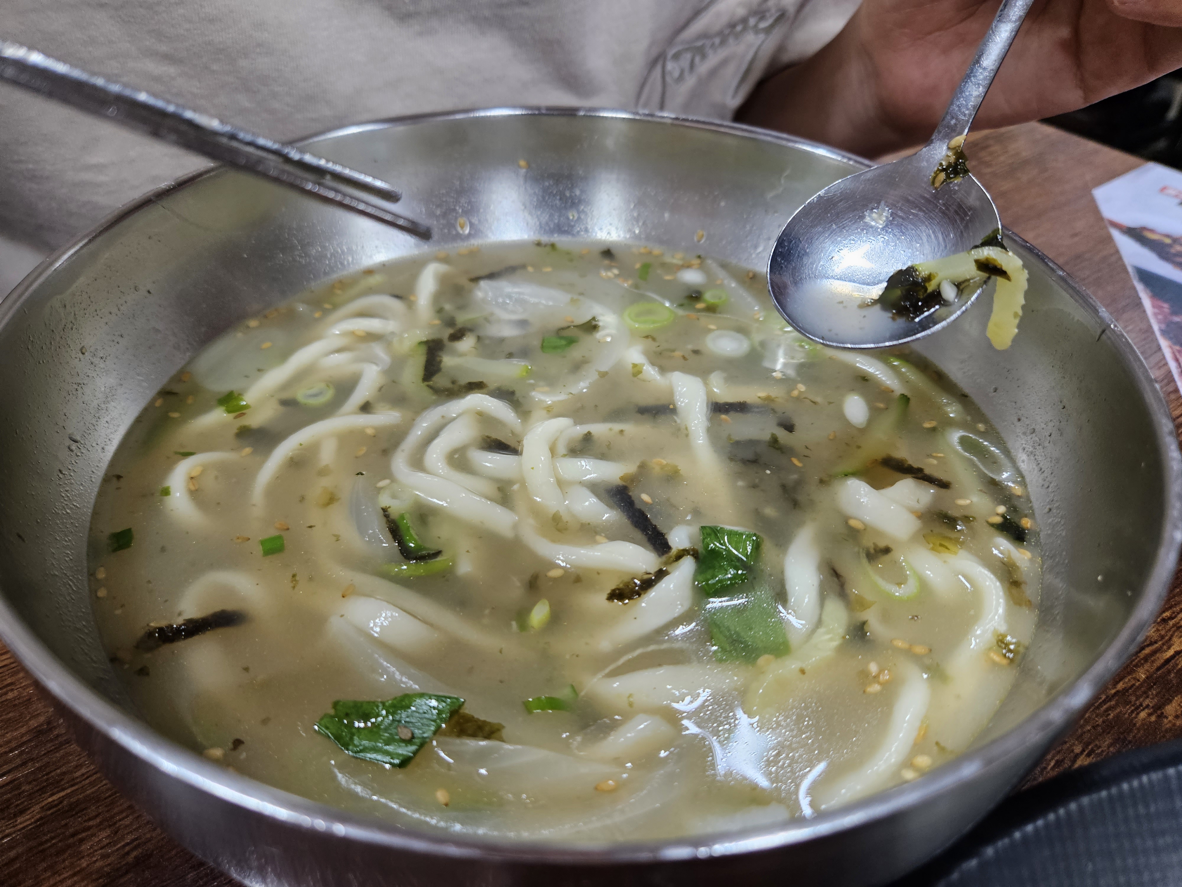 우선 와이프랑 아들이 먹으려고 주문한 칼국수부터 먹어보았는데요. 한입 먹어보니깐 맛있더라고요. 국물도 시원하고 면도 쫄깃한 게 가성비가 정말 좋았습니다. 36개월 아들도 맛있다면서 잘 먹었는데요. 테이블마다 사람들이 칼국수를 먹고 있는 이유가 있었더라고요.