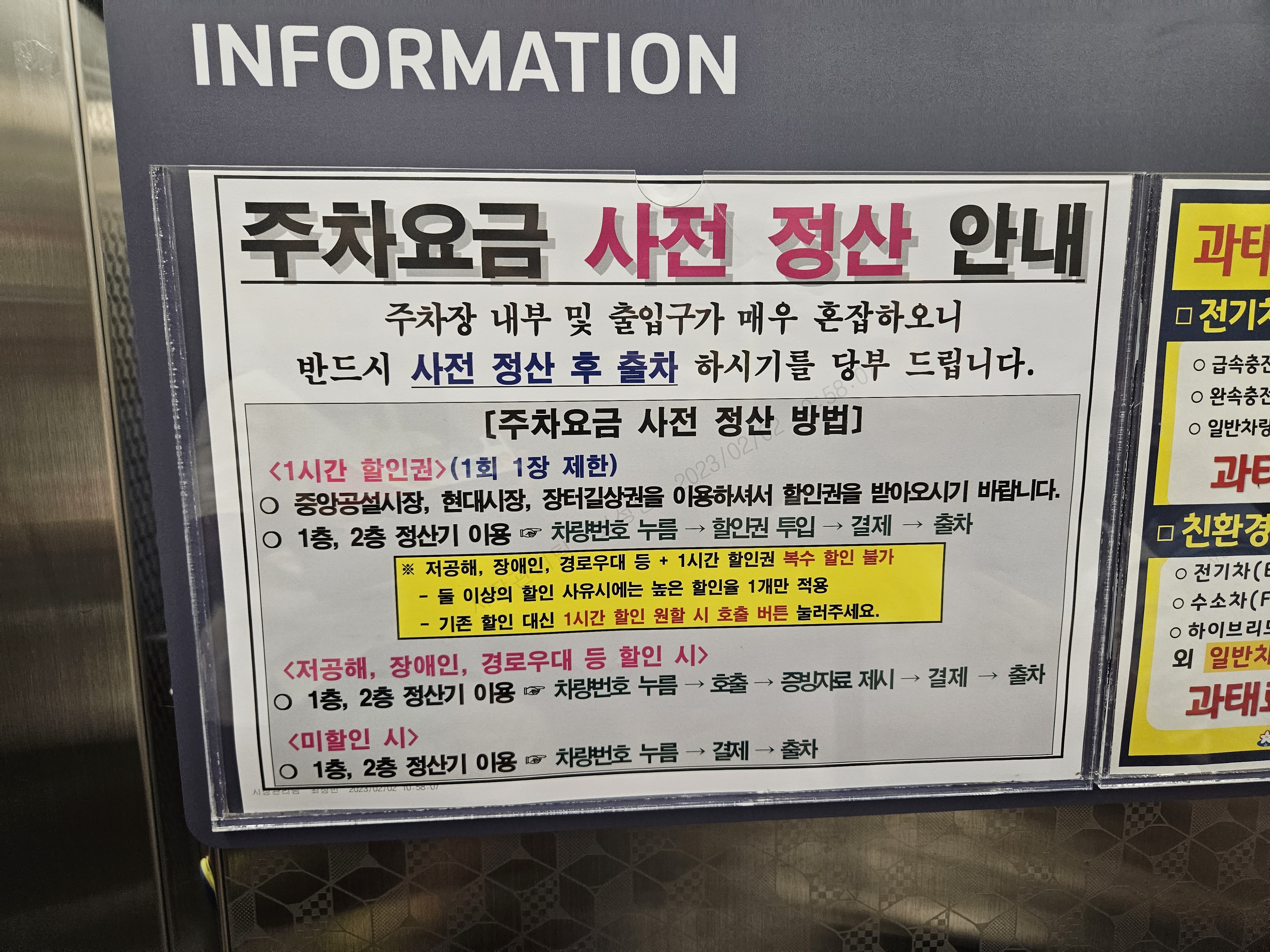 그래도 중앙공설시장, 현대시장, 장터길상권을 이용하면 주차 1시간 할인권을 주는 듯했는데요. 1시간 할인권을 주는 건 나쁘지 않은 것 같았습니다. 암튼 와이프랑 36개월 아들이 배고프다고 해서 공영 주차장 입구 바로 왼쪽에 있는 통로를 통해 시장 안으로 들어가 보았습니다.