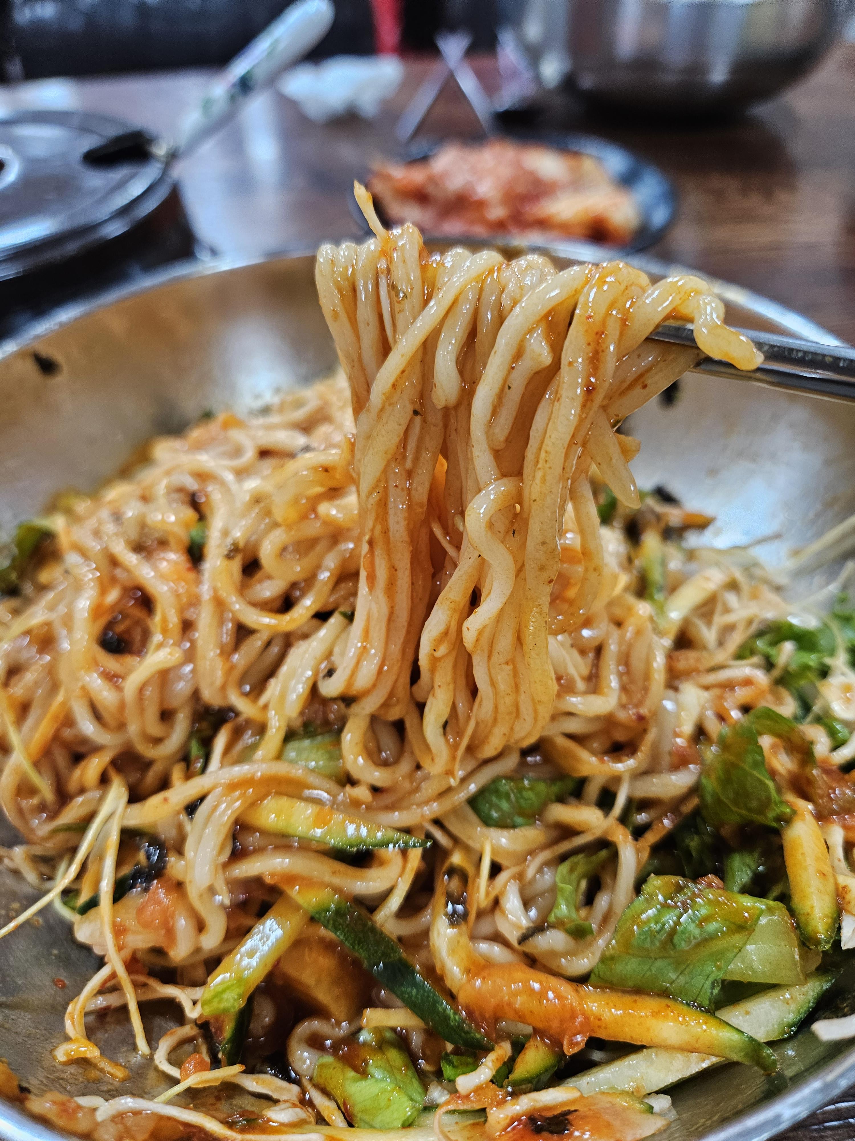 일단 비빔국수인 만큼 야채가 많이 들어가져 있어 좋았는데요. 하지만 비빔국수 소스는 제 입맛에는 그냥 평범했습니다. 그래도 면이 생각했던 것보다 살짝 두툼하면서 쫄깃한 게 야채랑 같이 먹으니 먹을만하더라고요.