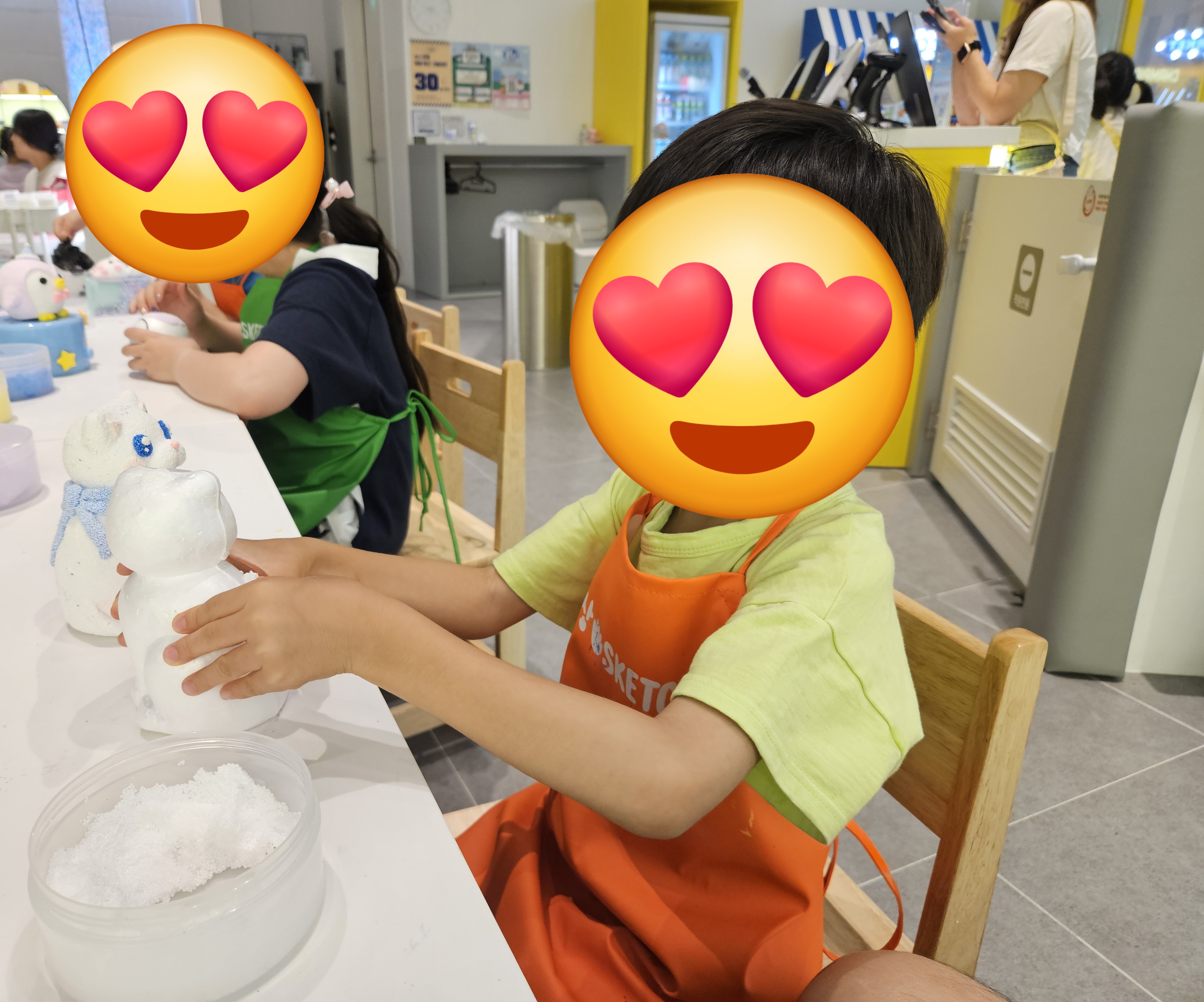 이용시간 약 20분 남기고 다른 것도 해보고 싶다고 하길래 추가 금액내고 슬라임 만들기도 해 보았는데요.