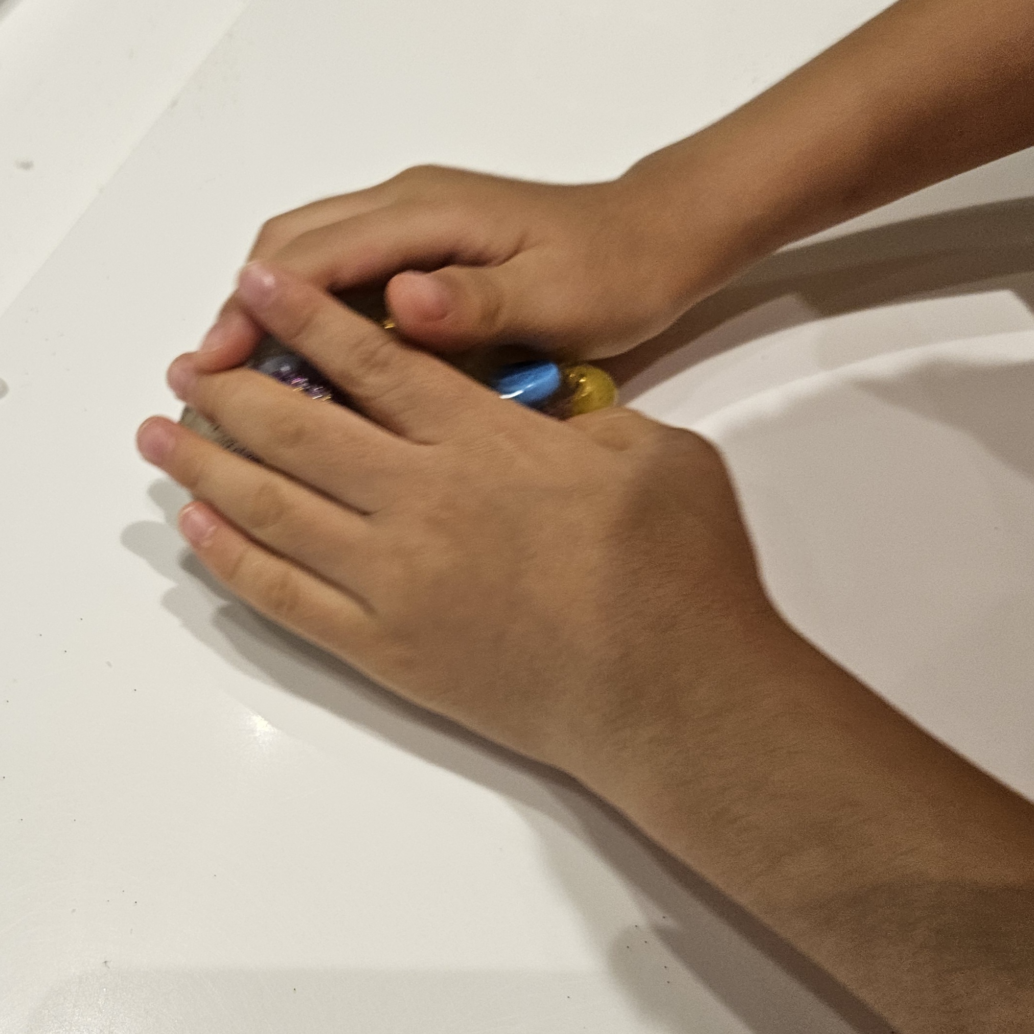 슬라임 만드는 재료를 마음껏 담아 슬라임에 넣어 조물조물하는데 앞전에 했던 것보다 재미있어하더라고요.