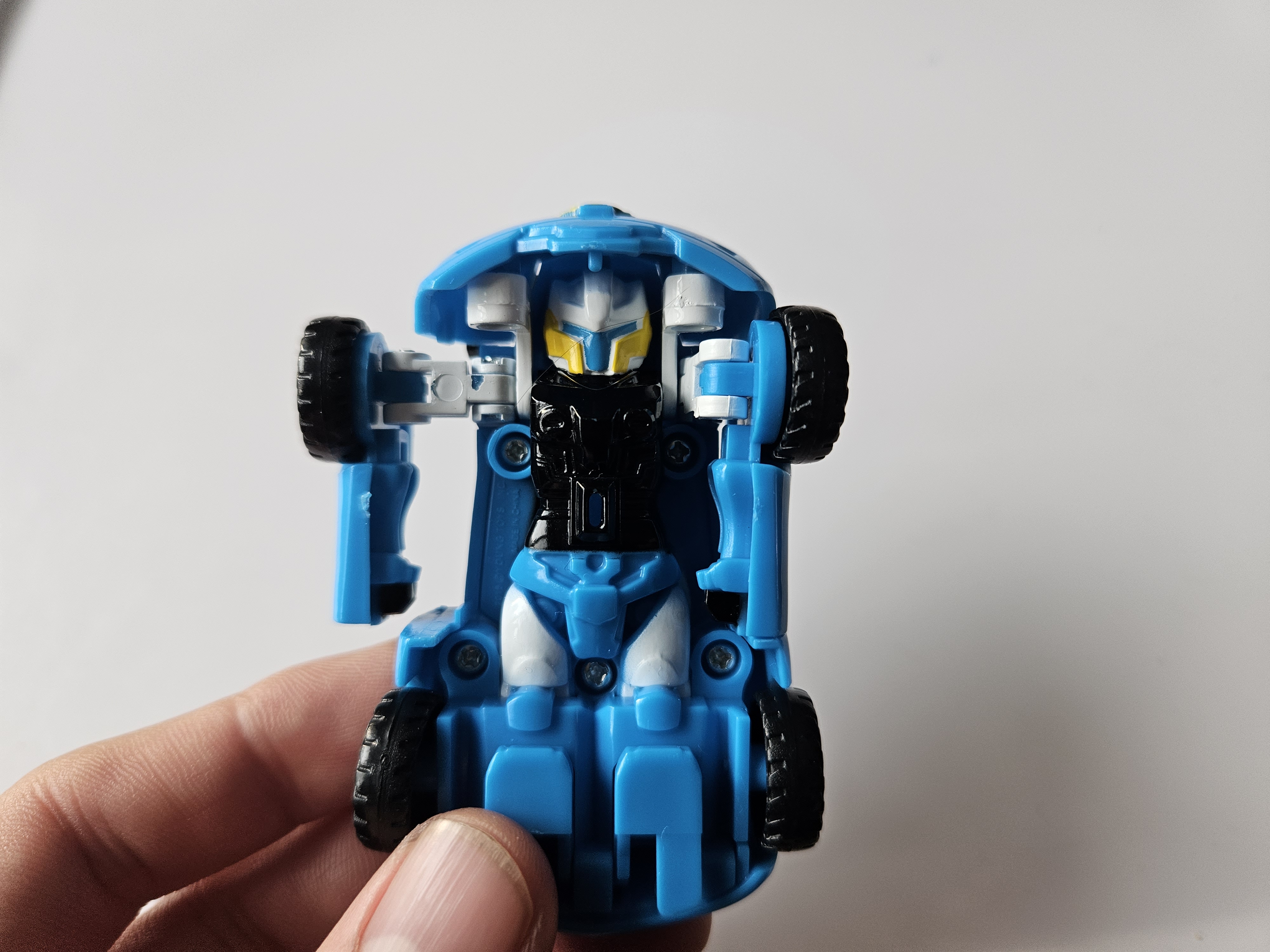 ▼자동차 보닛을 내려주면 조그마한 얼굴이 나오면서 상체는 변신 완료!