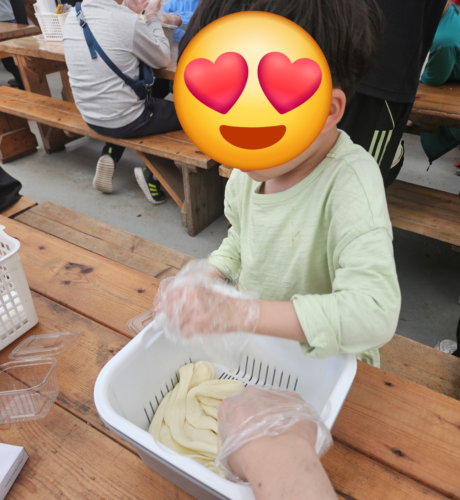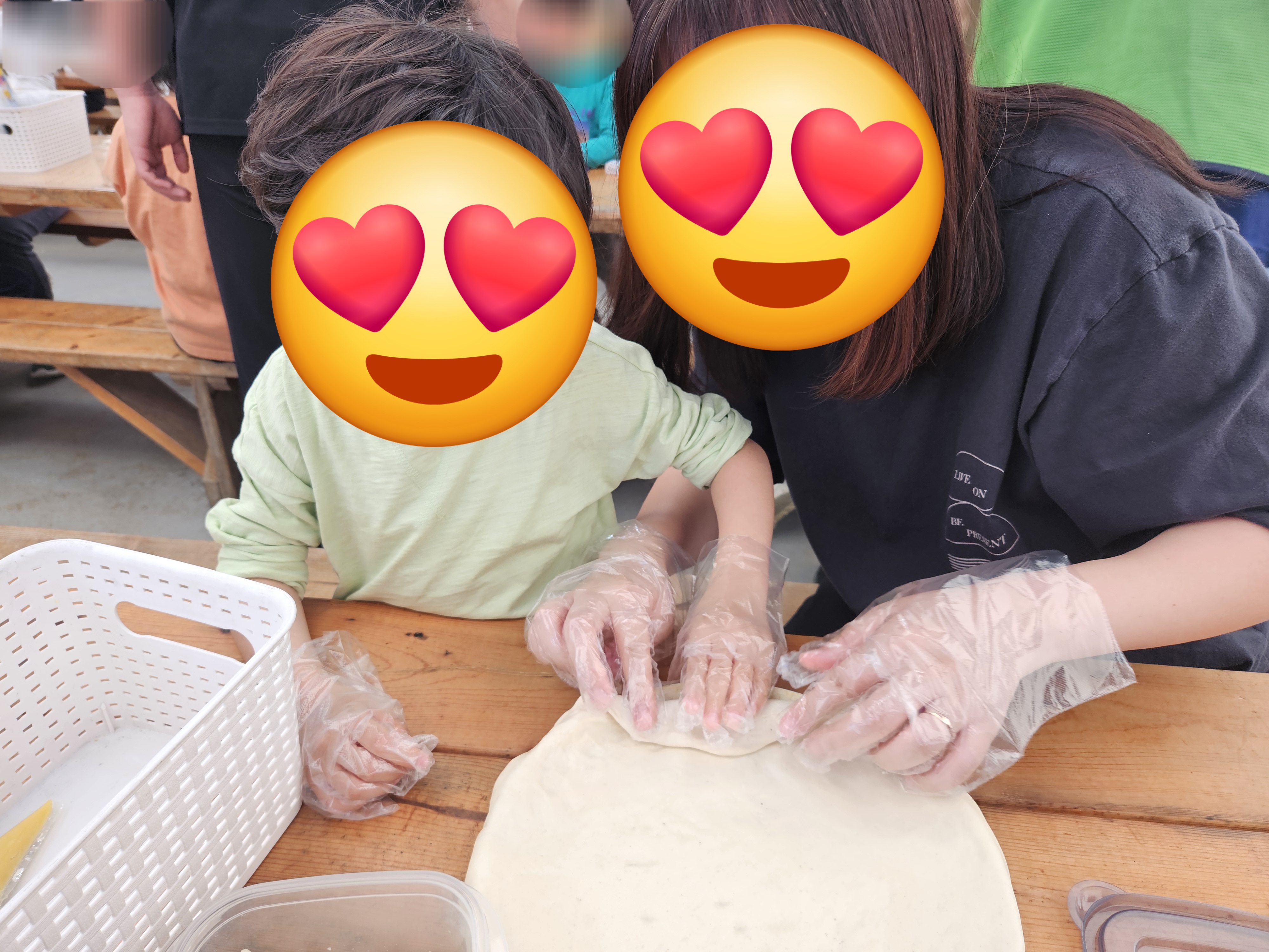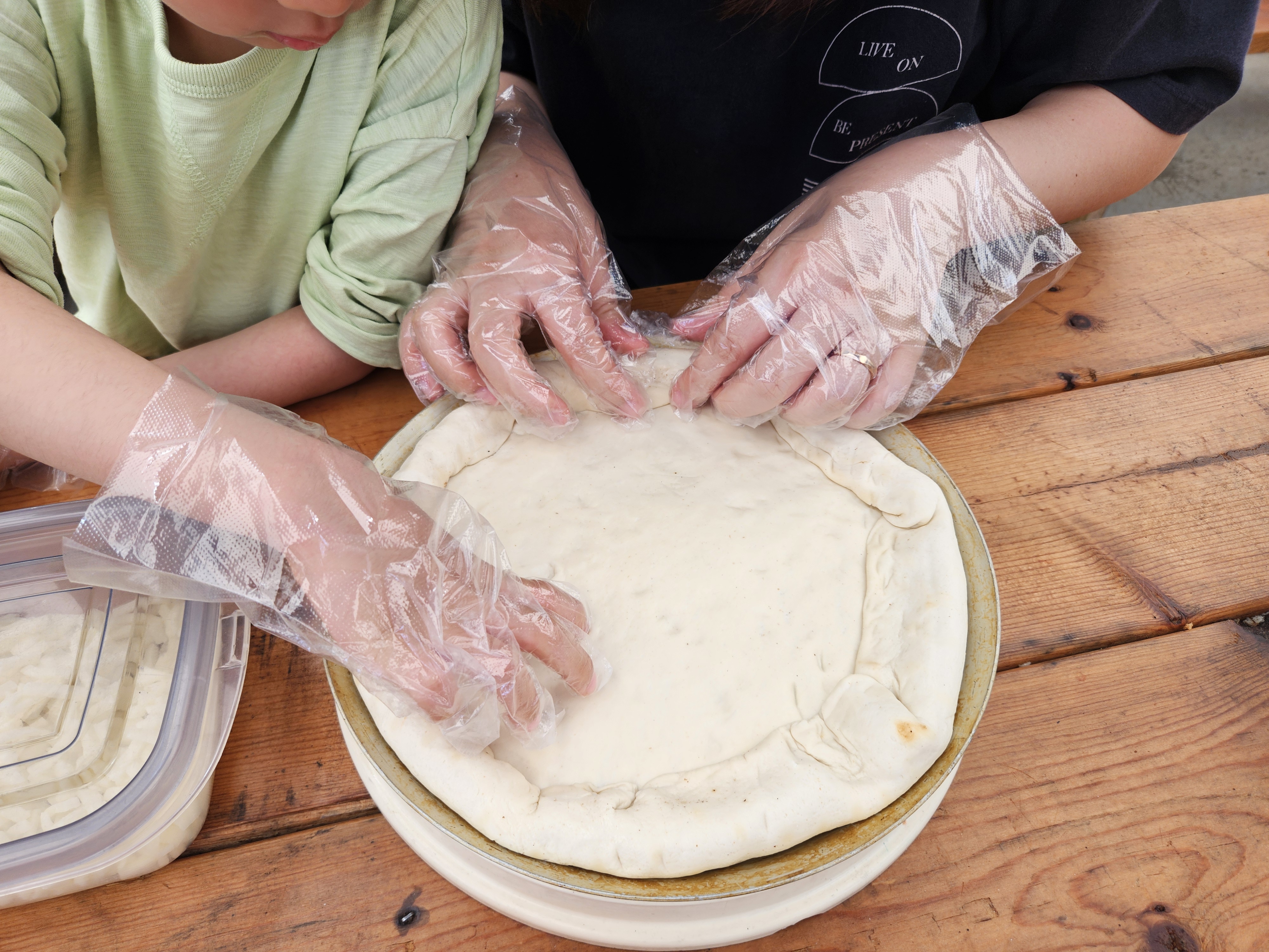 그렇게 드디어 선생님의 설명과 함께 피자 만들기 시작!! 우선 반죽되어 있는 도우를 쭉쭉 늘려주라고 하더라고요. 아들이 어찌나 즐거워하던지.