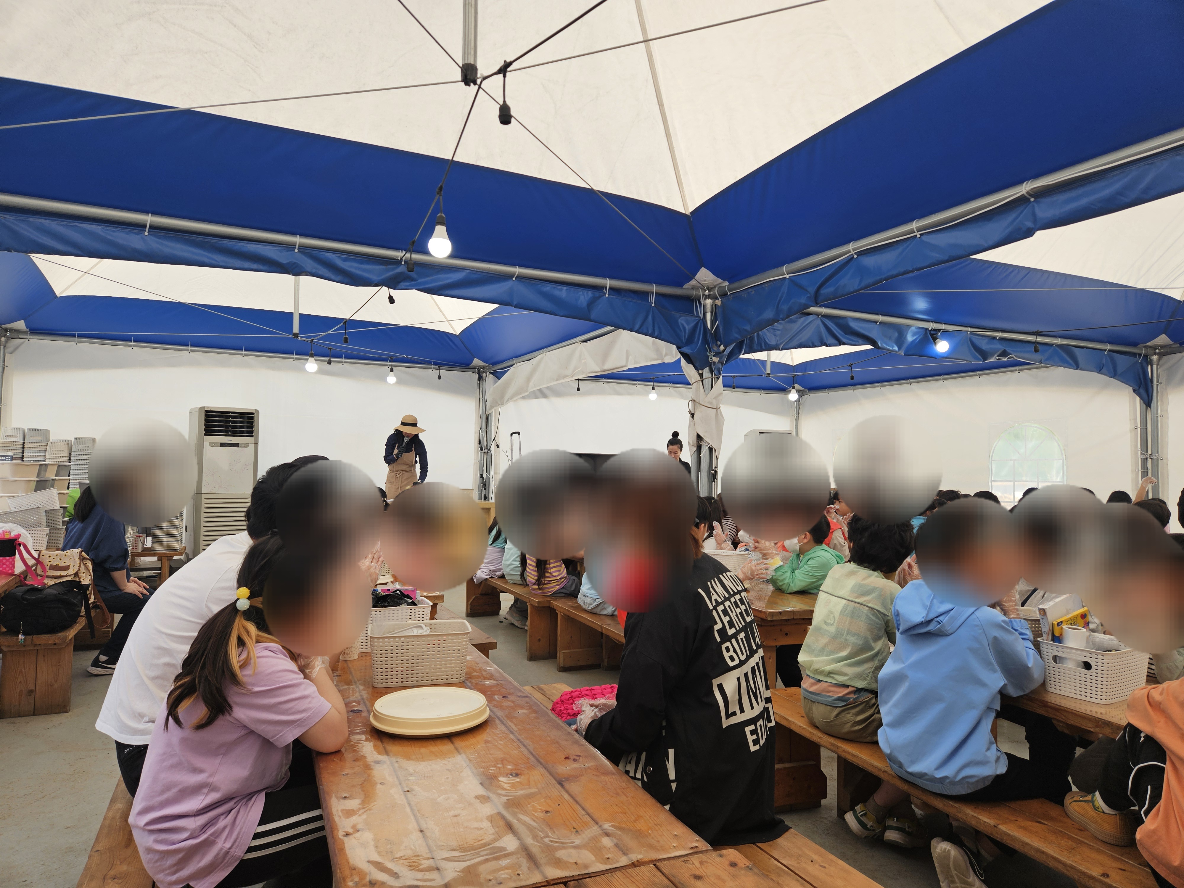 그렇게 입구 바로 옆에 천막 안으로 안내해 주셨고 안에서 피자 체험을 하는 듯했습니다.