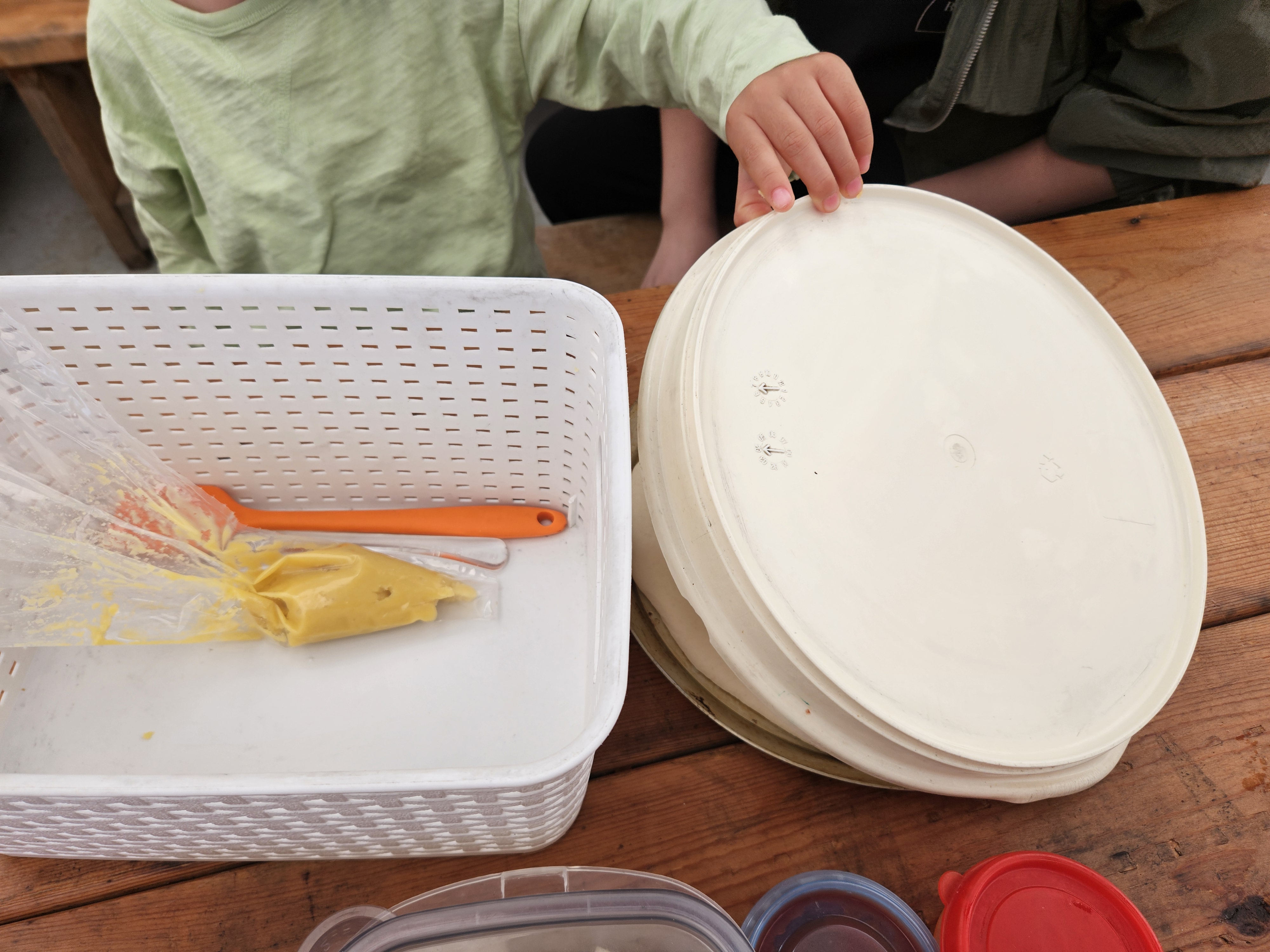 만 3세 아들은 그새 못 참고 막 만지작거리길래 사진 몇 장 찍어보았습니다. 바구니 안 재료는 미리 반죽되어 있는 도우, 치즈, 토마토소스, 양파, 피망, 고구마퓨레, 불고기가 들어있었습니다.
