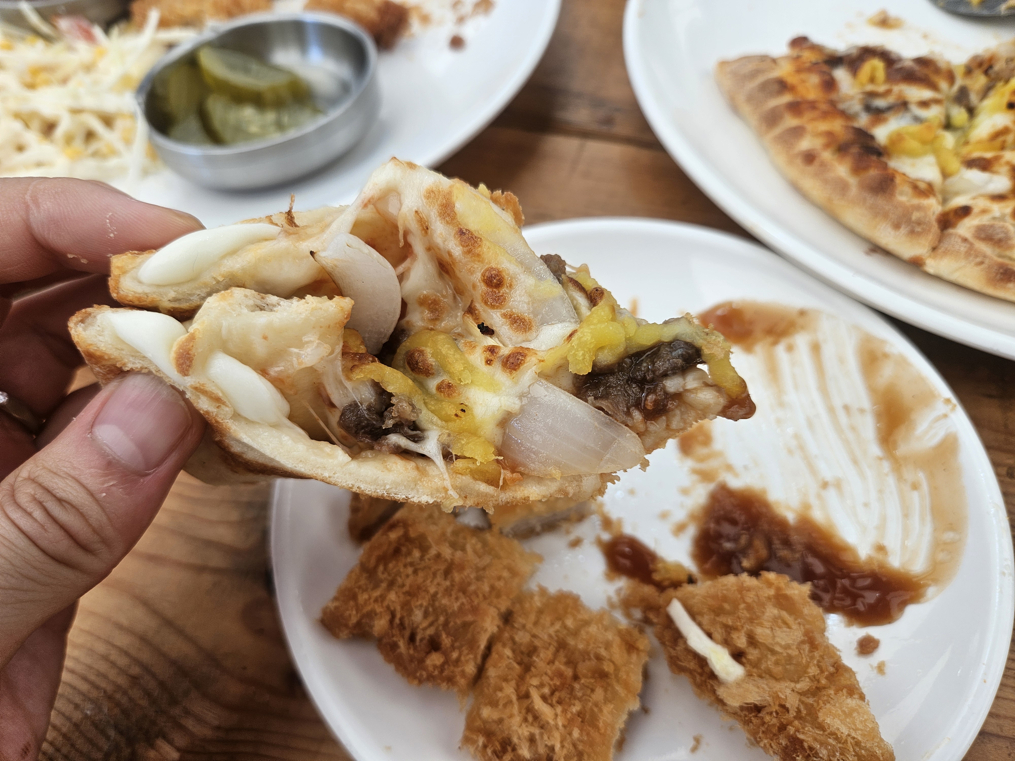 먹다 보니 나중에 치즈돈가스를 다시 주셨습니다. 일반 돈가스는 평범했는데 확실히 치즈가 들어가 있어서 더 고소하고 맛있긴 하더라고요.