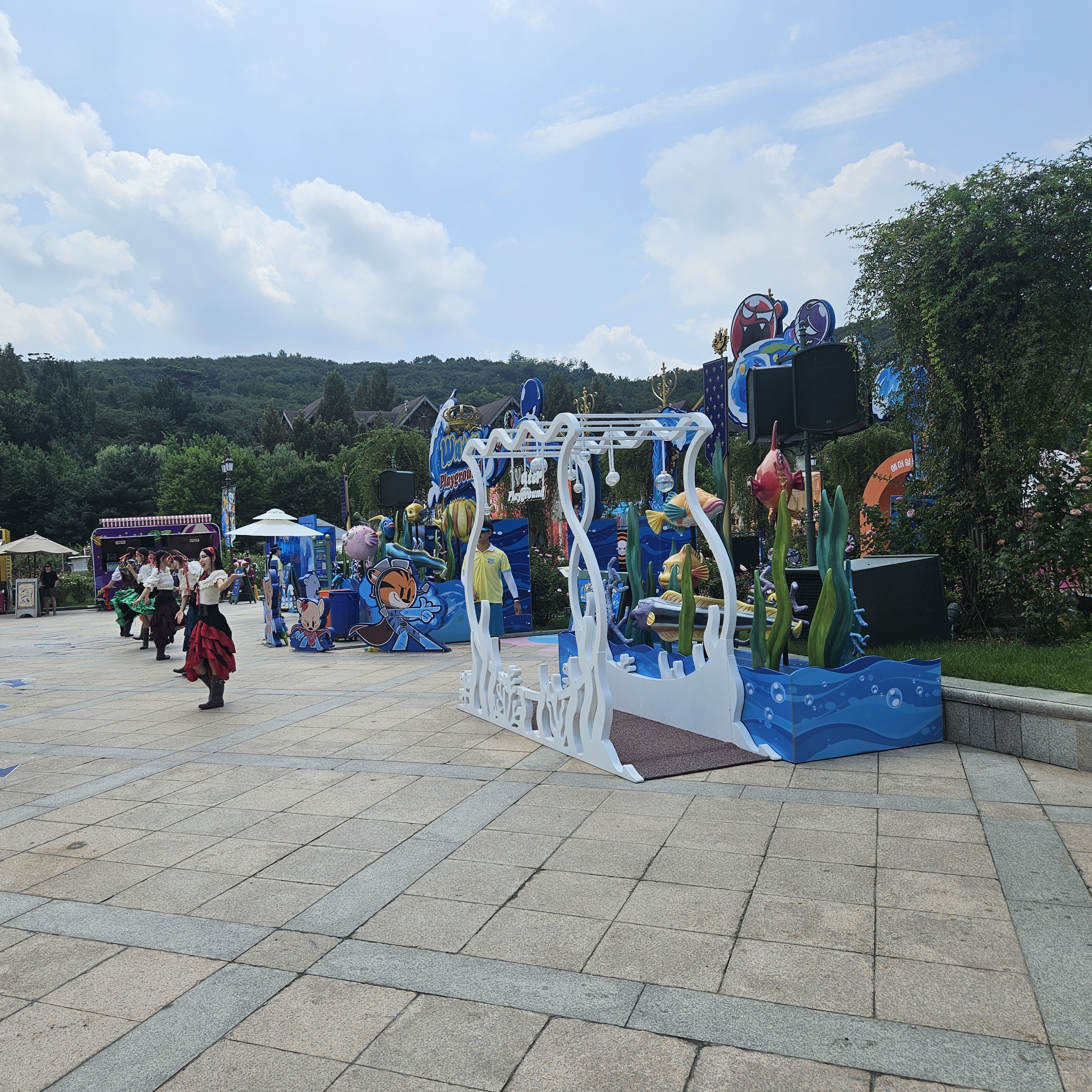 에버랜드에서 물놀이를 할 수 있다고 해서 만 4세 아들 데리고 방문해 보았는데요. 장미원 전체를 아들이 물놀이를 하면서 놀 수 있는 공간으로 꾸며놓았더라고요. 장미원 트레이닝센터 운영시간은 오후 12시 ~ 오후 7시까지 운영을 하고 있었고 워터 플레이 타임으로 40분경 약 10분간 직원분들 춤추는 공연도 진행하고 재미있어 보였답니다.