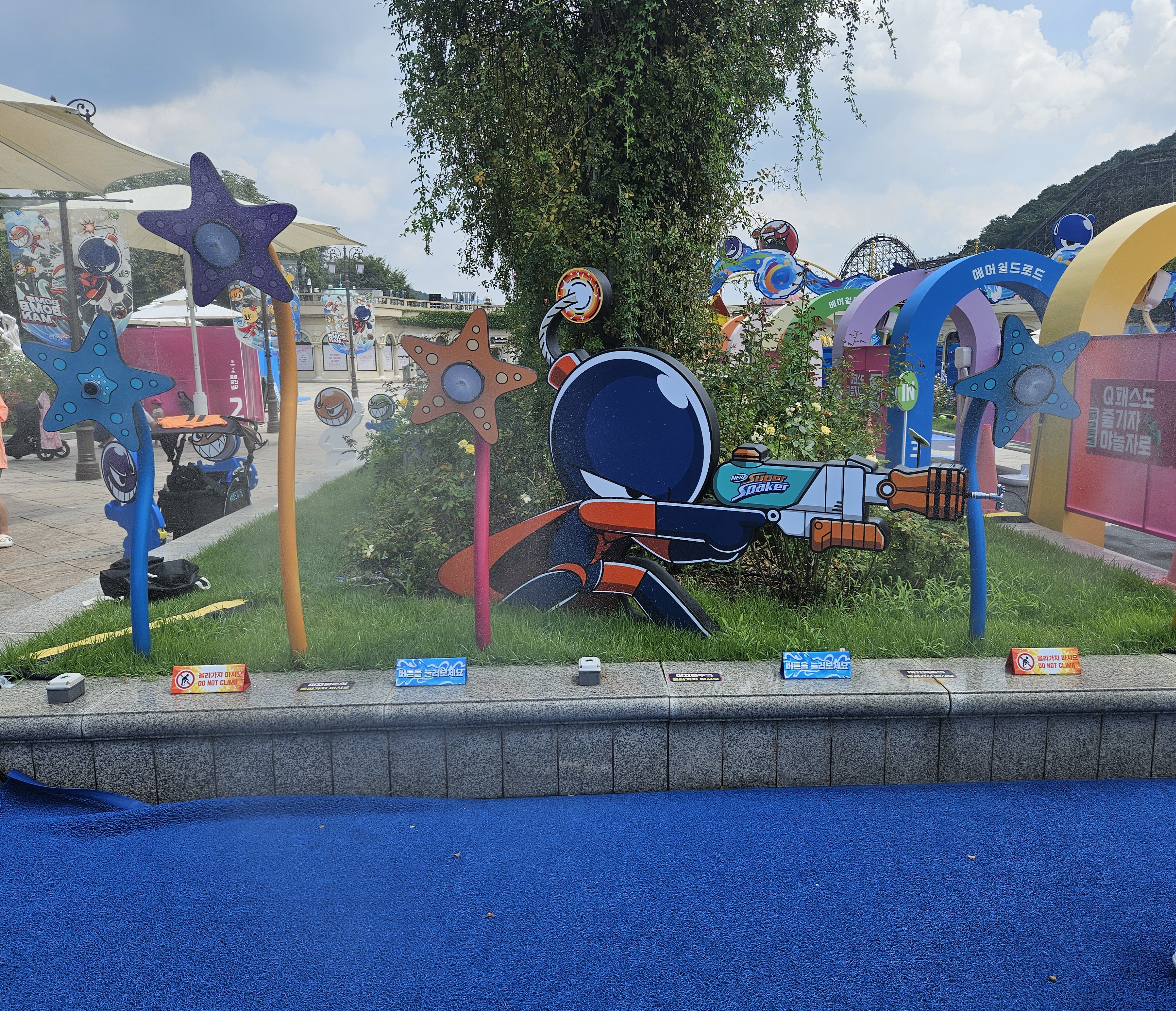 그리고 근처에는 물을 보충하는 곳도 있고 작은 과녁 맞추기 등등 다양한 놀이 공간도 있어서 신나게 놀았는데요. 그 외 다 놀고 난 뒤에는 머리 말리는 공간도 있어 생각보다 잘 꾸몄다는 생각이 들었답니다.